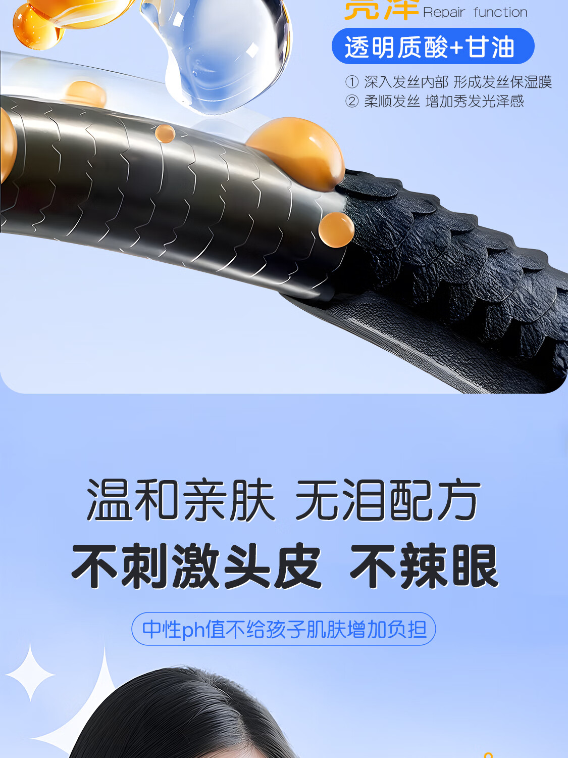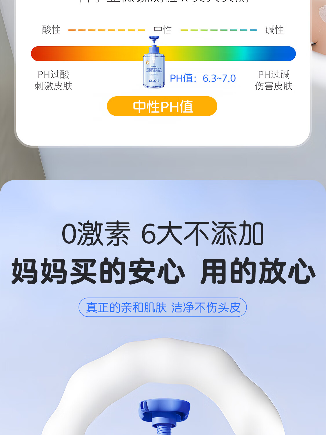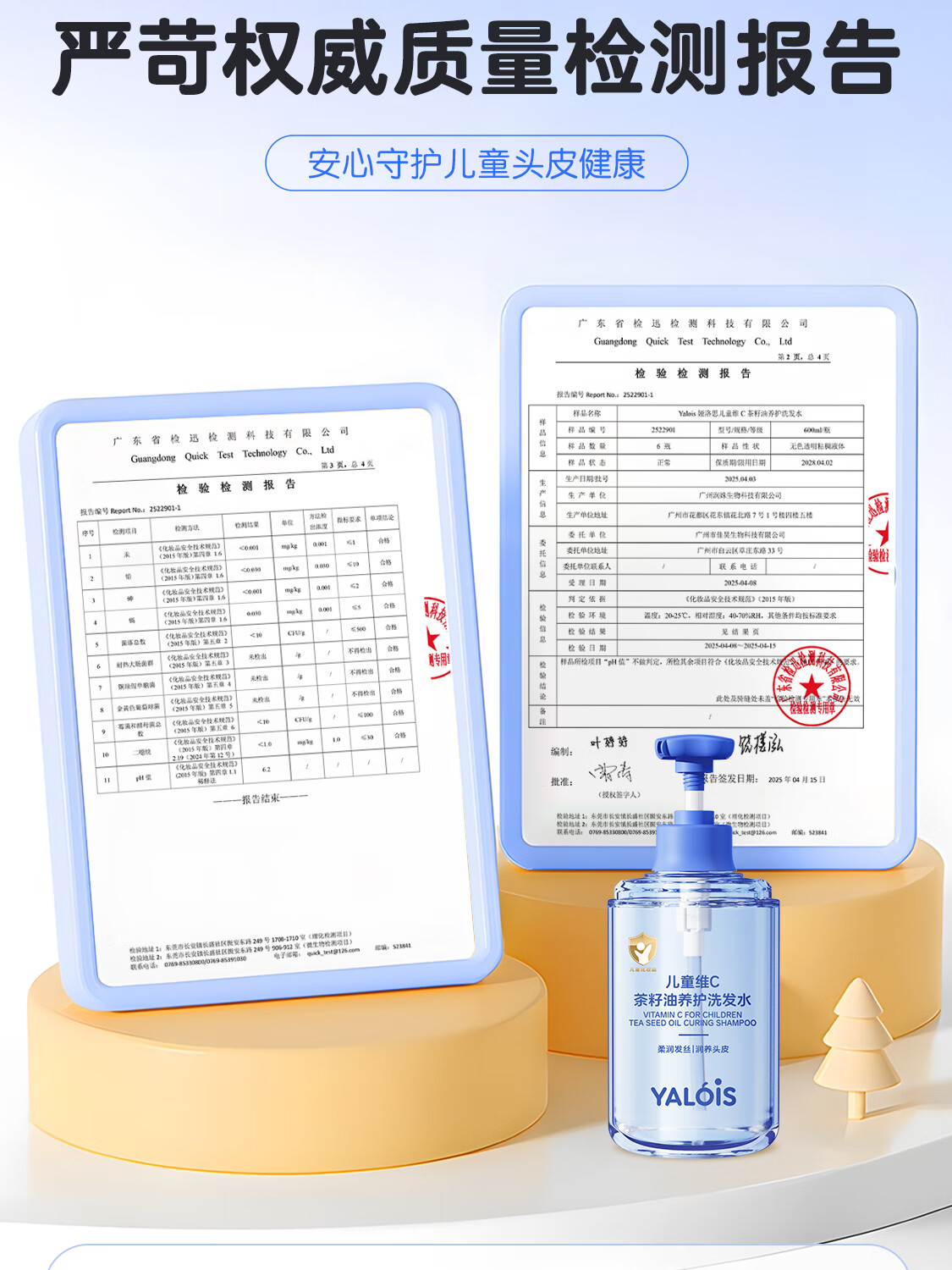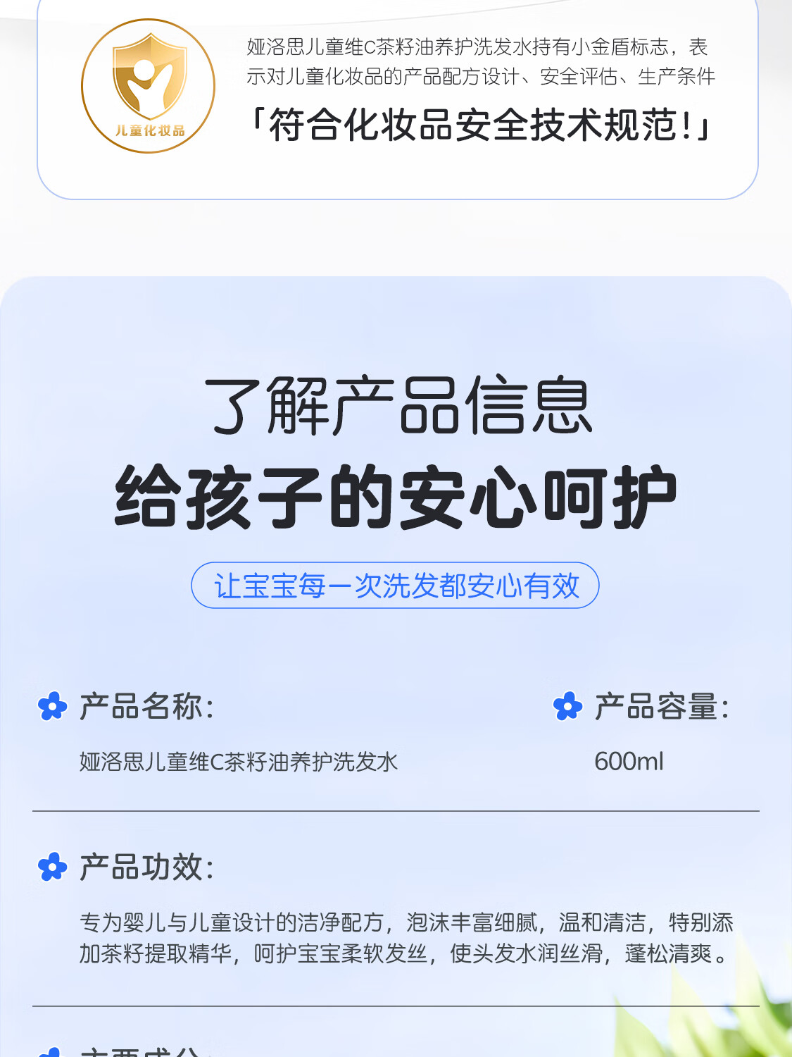YALOIS儿童维C茶籽油洗发水婴童洗护婴幼儿大童青少年3-12岁通用600ml
