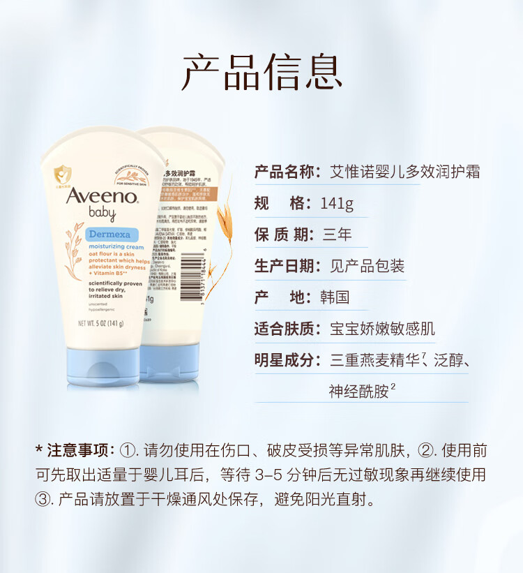 艾惟诺(Aveeno)艾维诺儿童面霜 秋冬多效护理润肤乳霜舒缓干痒红修护霜新年礼物