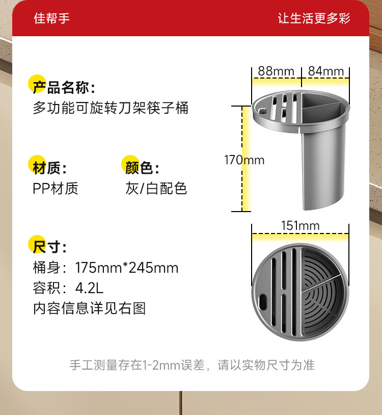 佳帮手刀架筷子笼全新升级厨房刀具置物架可旋转沥水多功能一体收纳