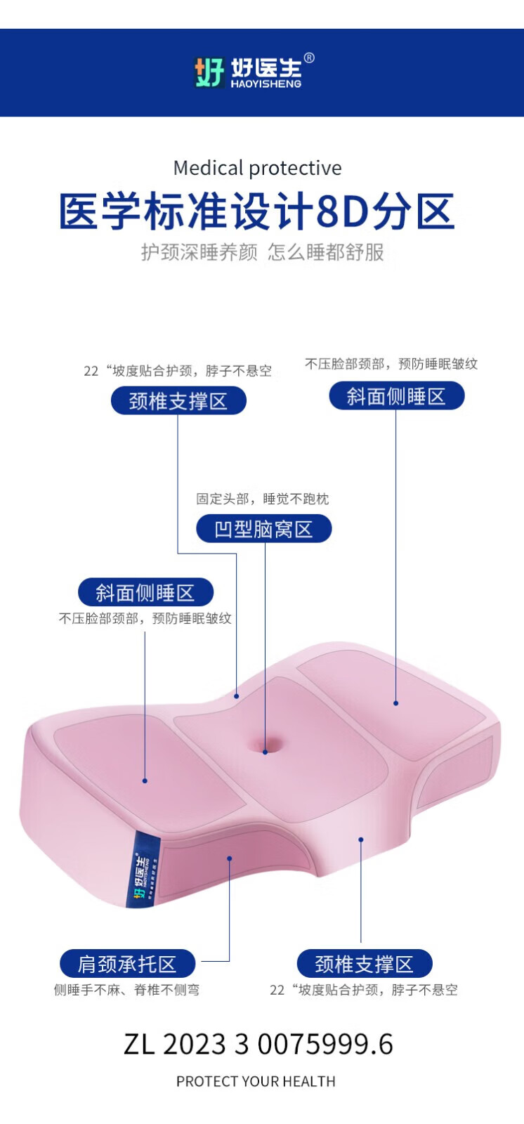 好医生(HAOYISHENG)枕头颈椎枕成人睡觉专用颈椎病医用级护深度睡眠枕送礼双11礼物 【第九代】午夜灰【双模双高】 默认 【玻尿酸+竹炭】【护颈+深睡】