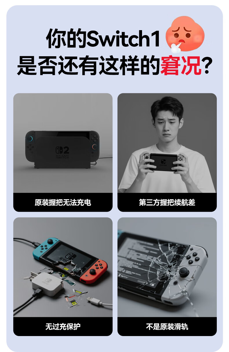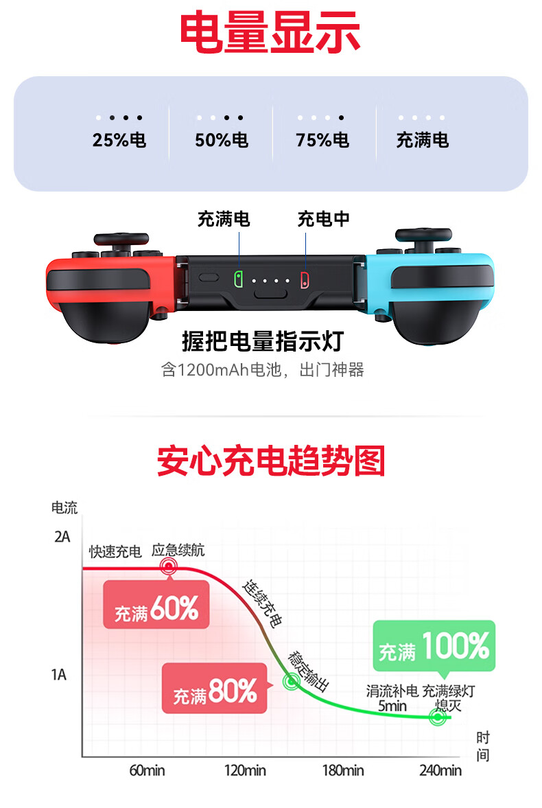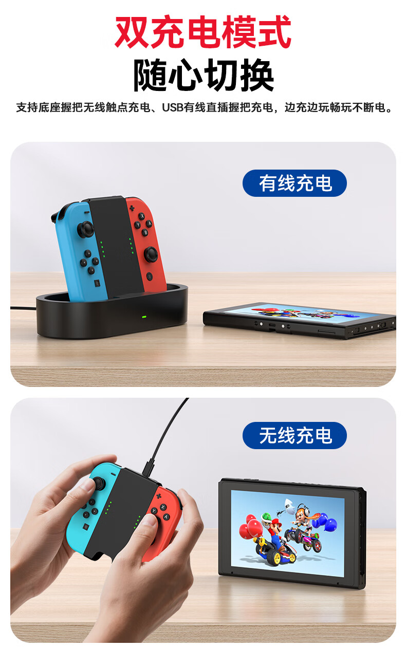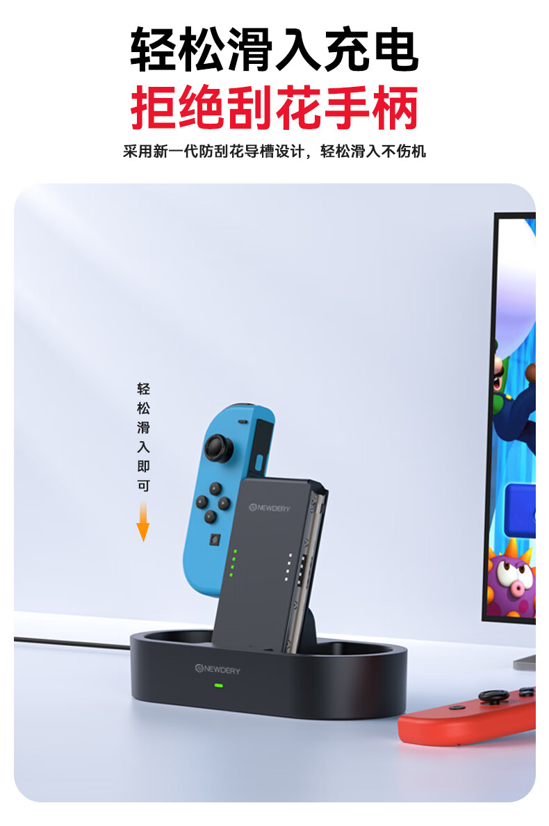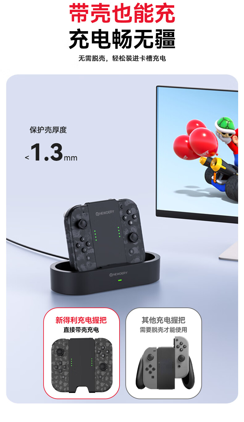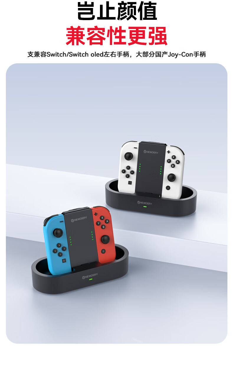新得利Switch手柄充电握把分体JoyCon充电底座NS左右手柄手把支架Oled配件 Switch手柄握把丨充电底座