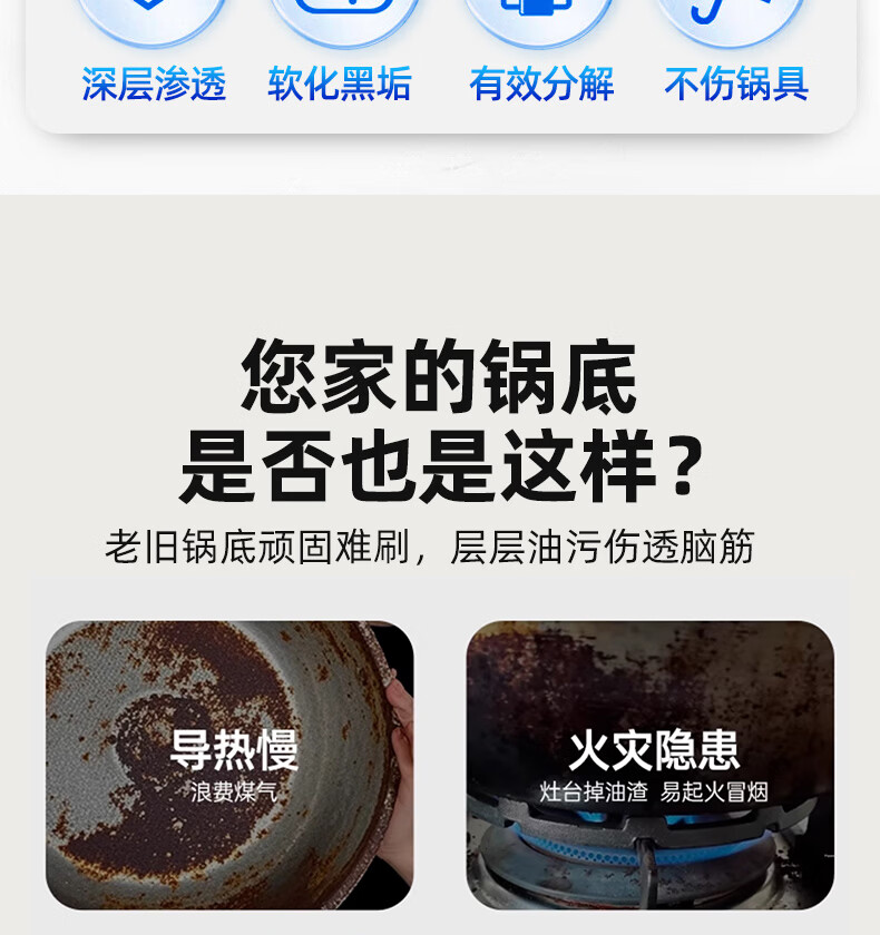 泰克斯乐(Texlabs)雅彩洁锅底除黑海藻泥黑垢清洁剂不锈钢清洗神器厨房重油污强力膏 2瓶