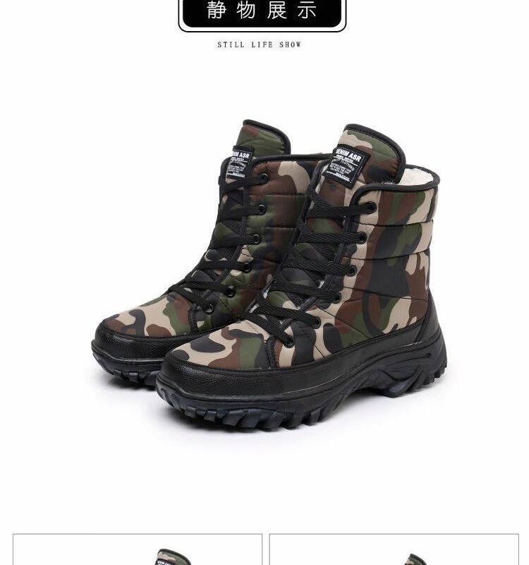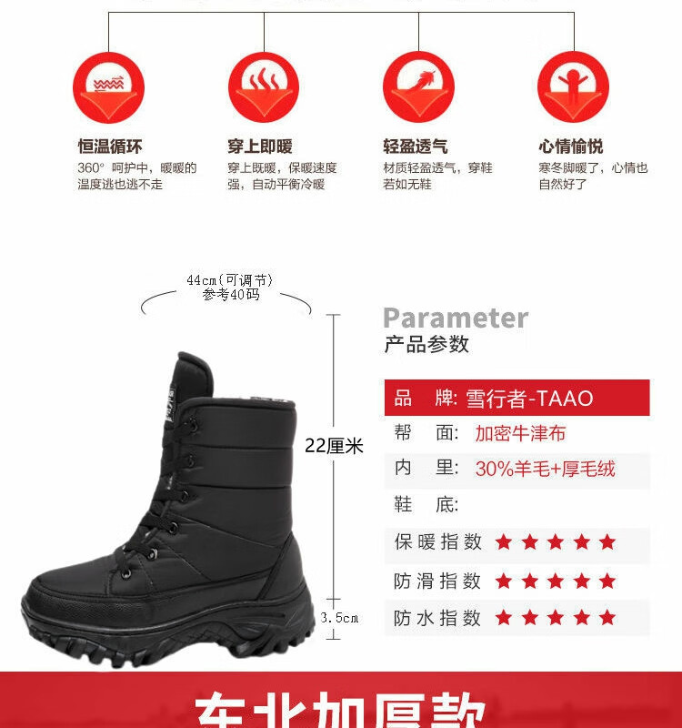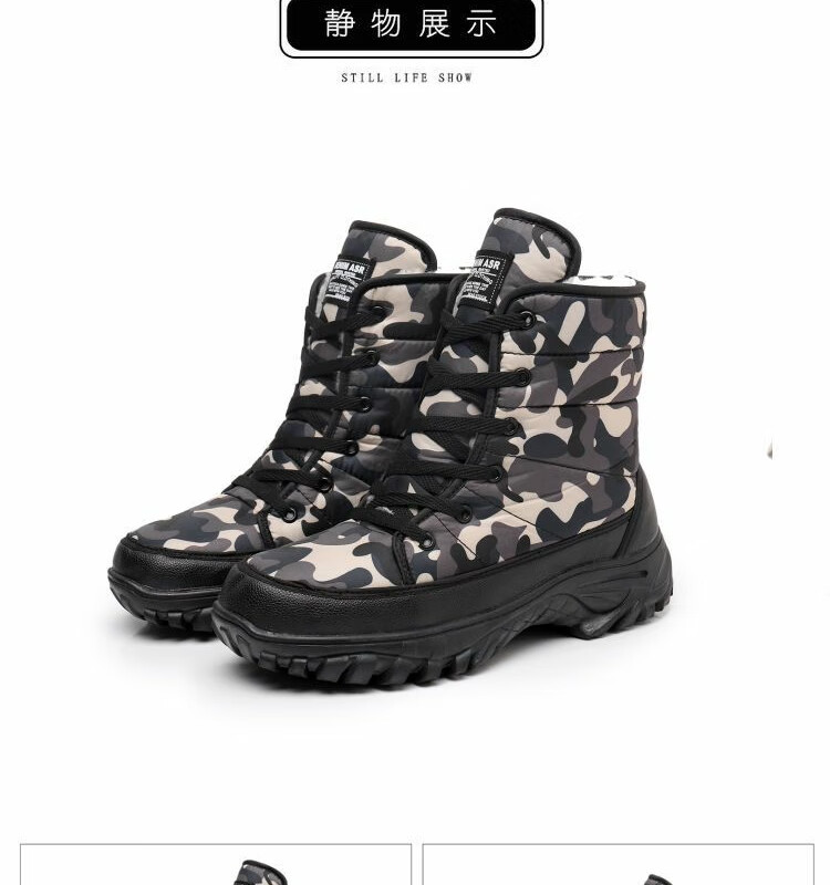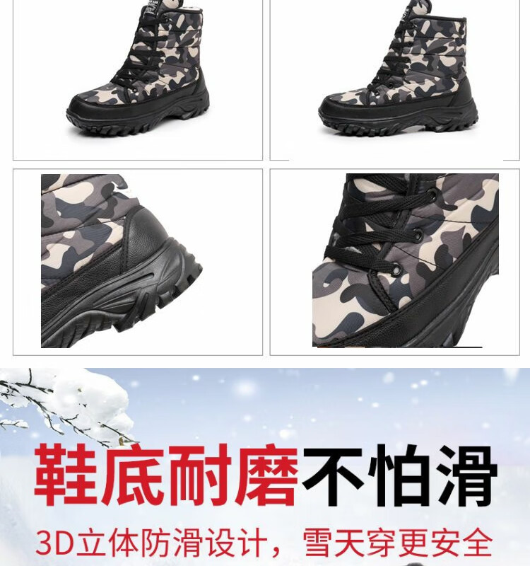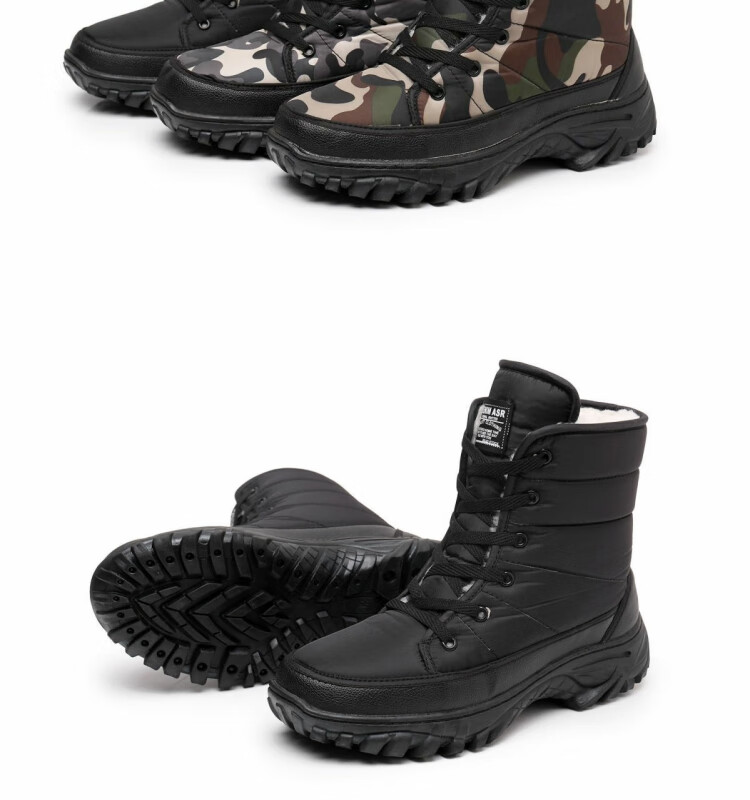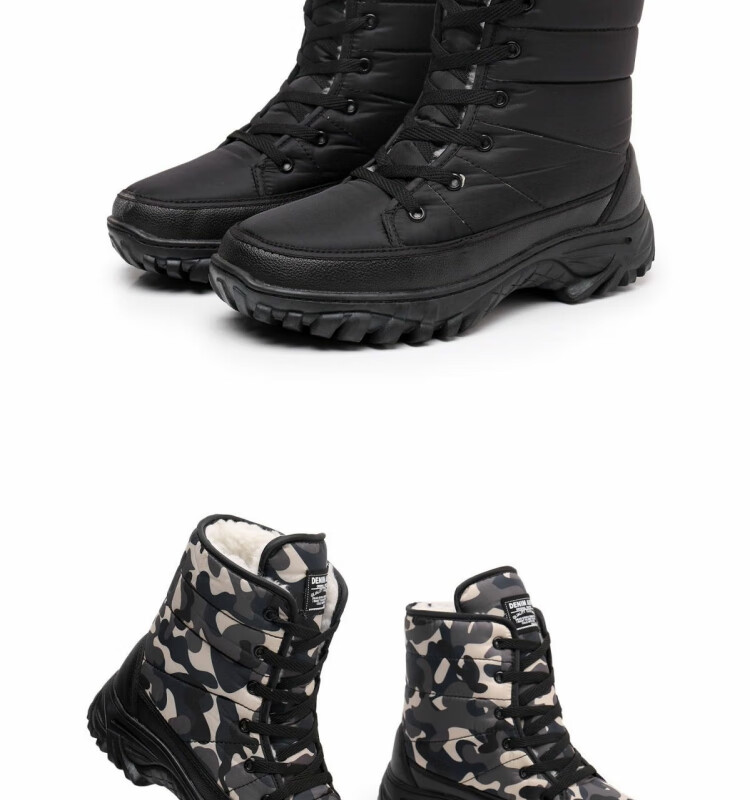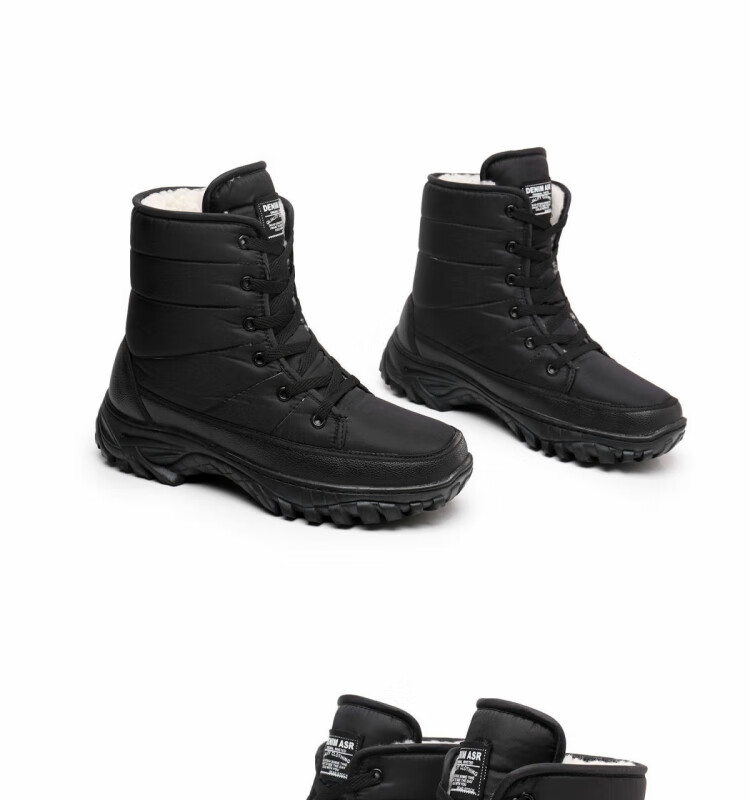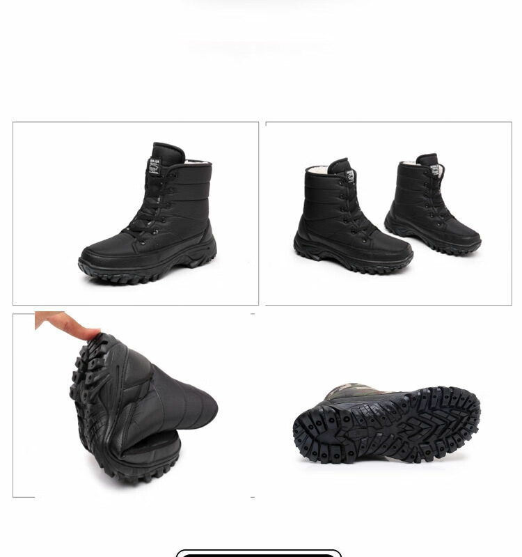雪行者东北大棉鞋男士冬季保暖加绒加厚户外运动男靴厚底防滑耐磨雪地靴 黑色/288棉鞋拍大一码 41