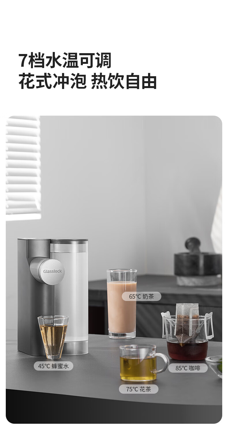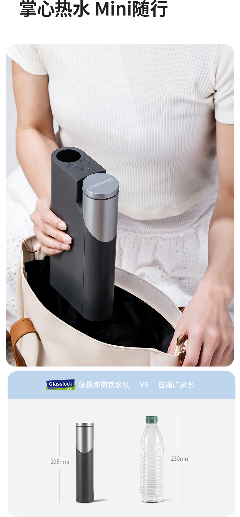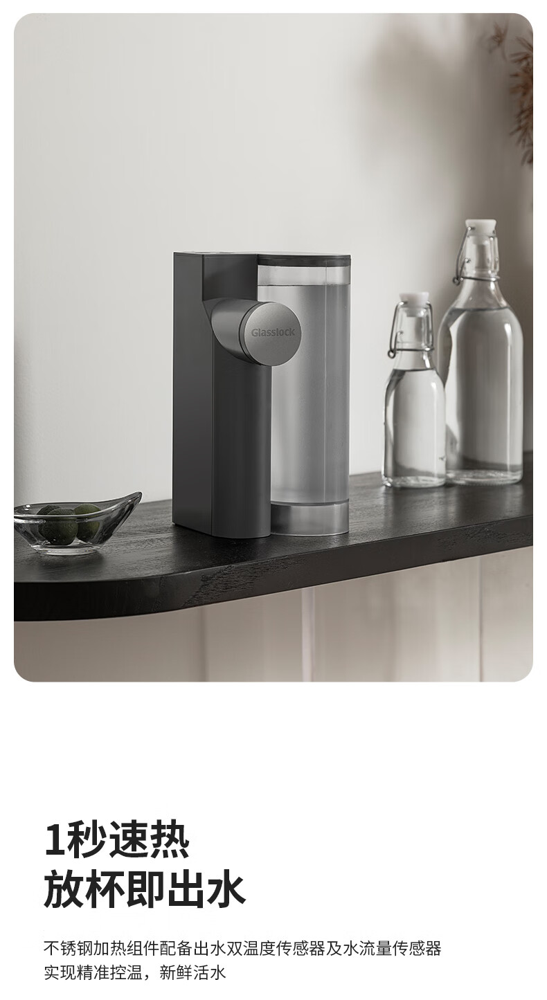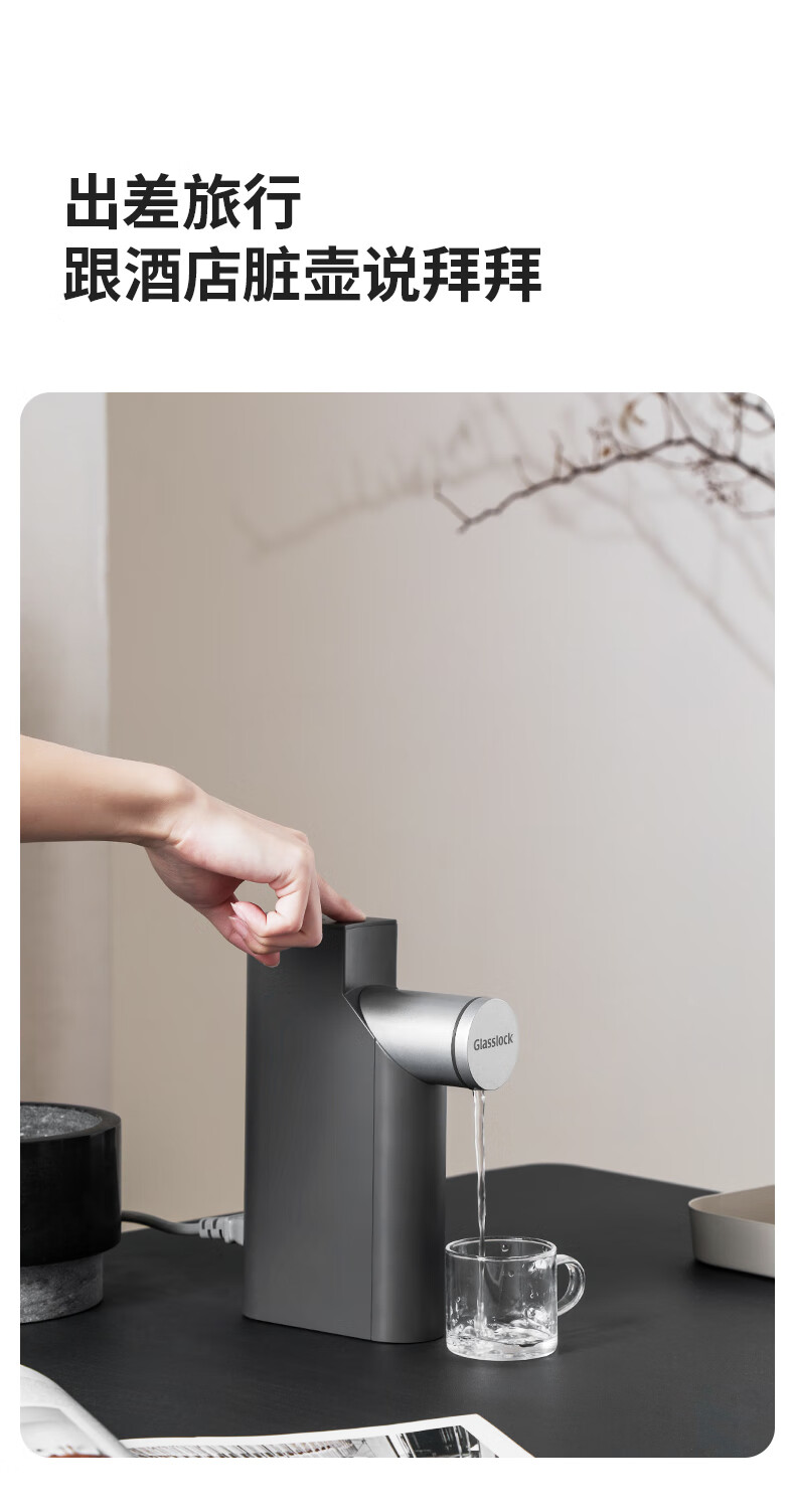 GLASSLOCK即热式饮水机便携台式小型迷你可折叠收纳矿泉水加热器 0.3L 雅黑-多档即热饮水机