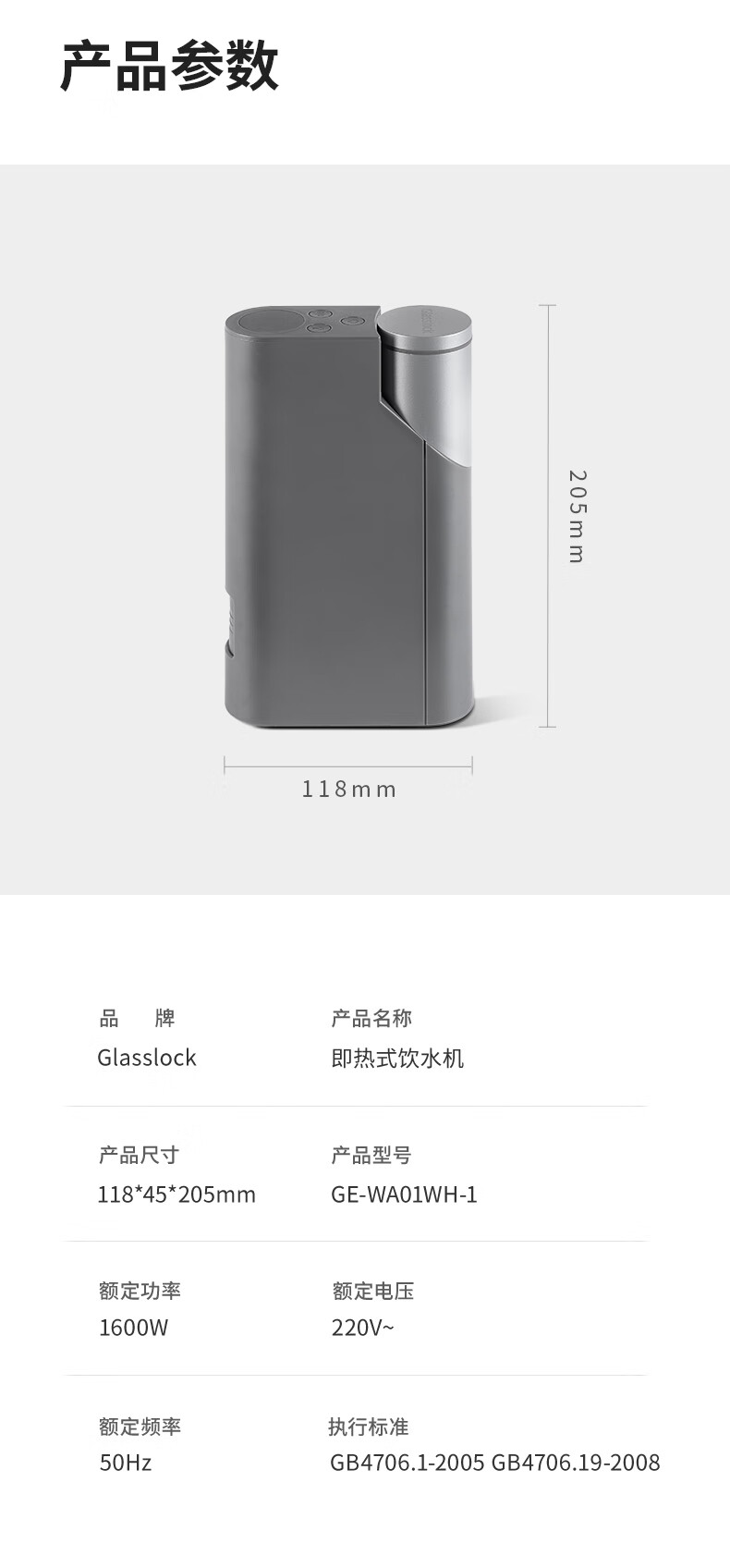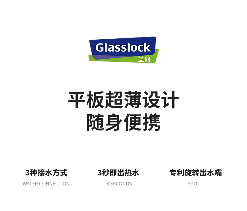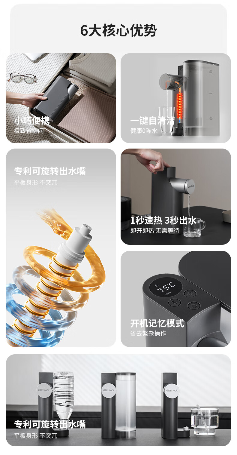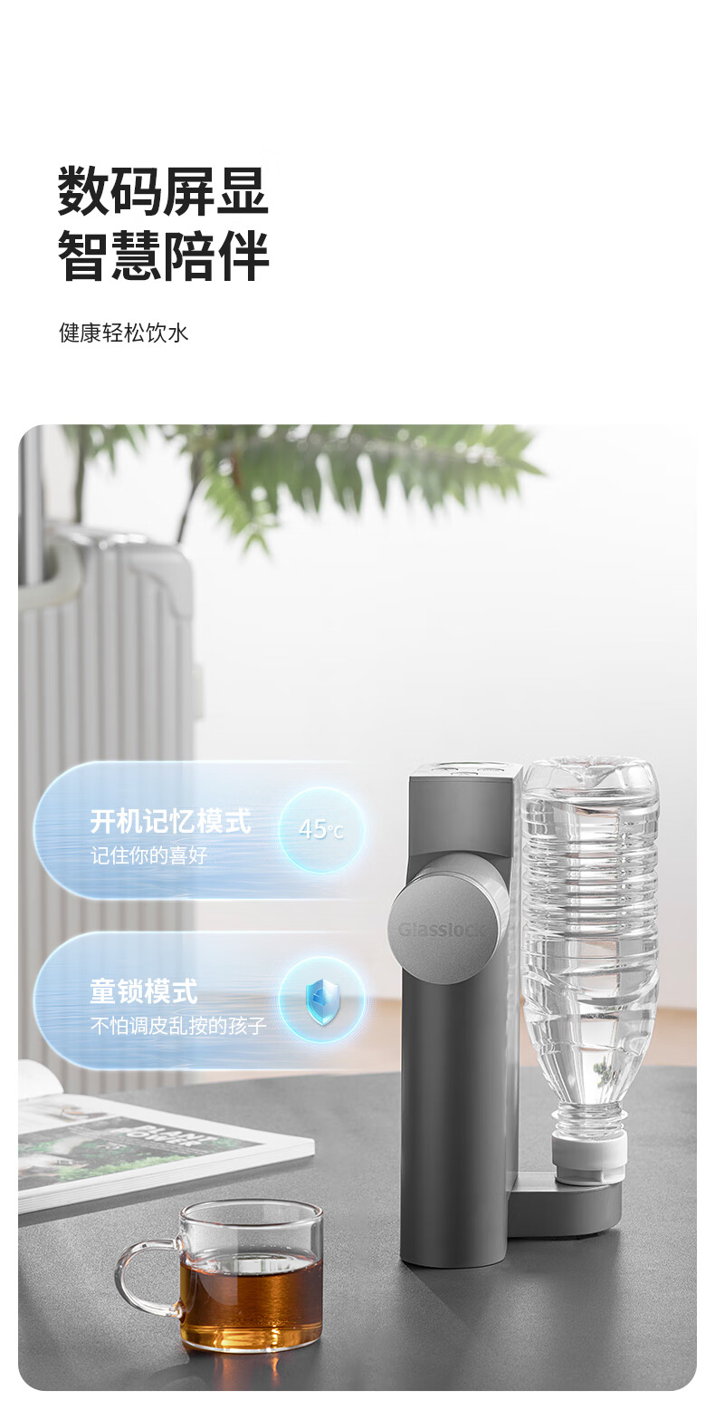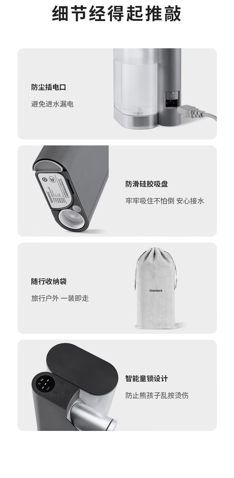 GLASSLOCK即热式饮水机便携台式小型迷你可折叠收纳矿泉水加热器 0.3L 雅黑-多档即热饮水机