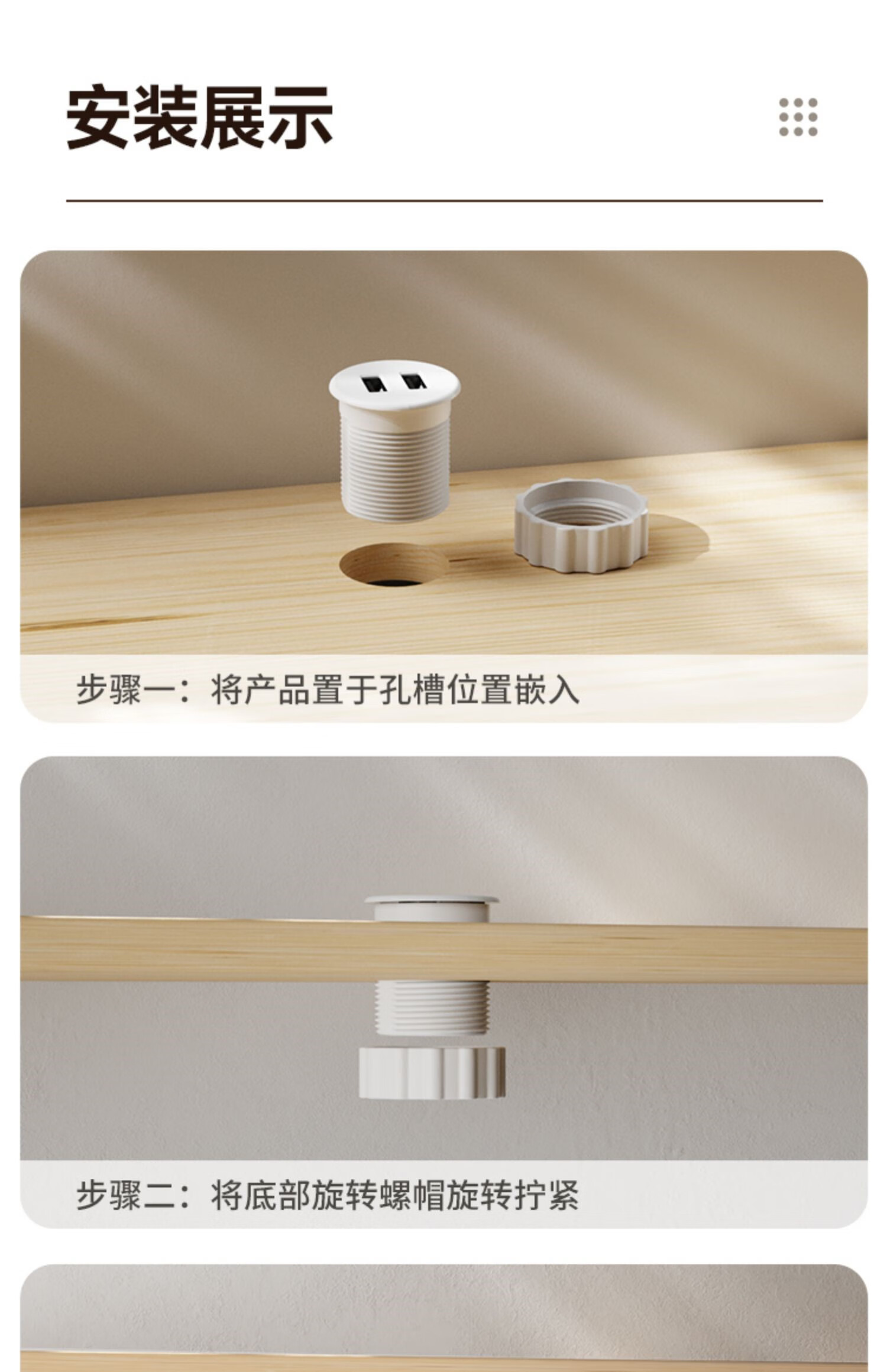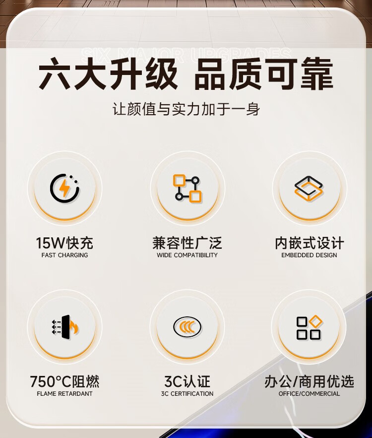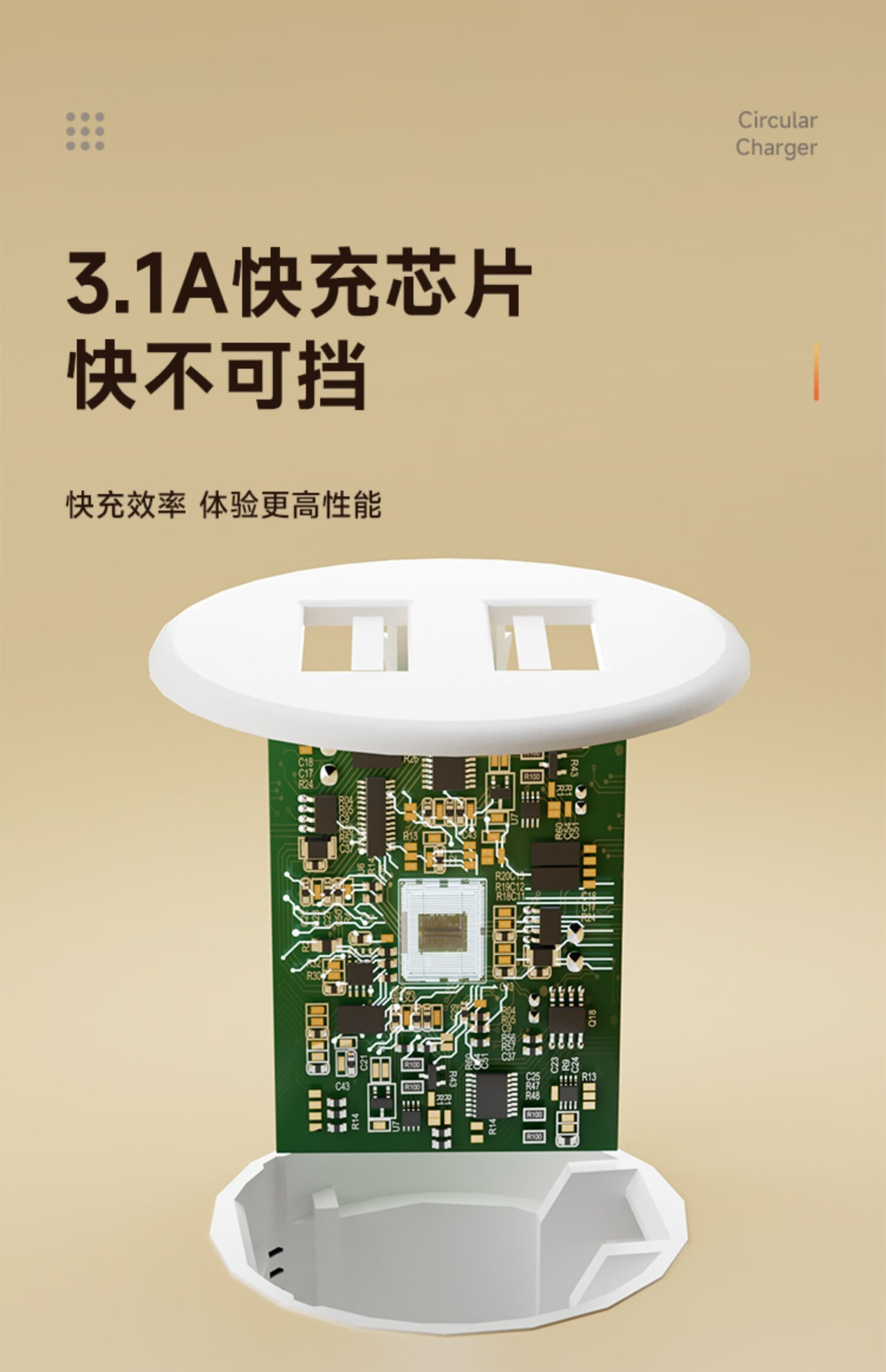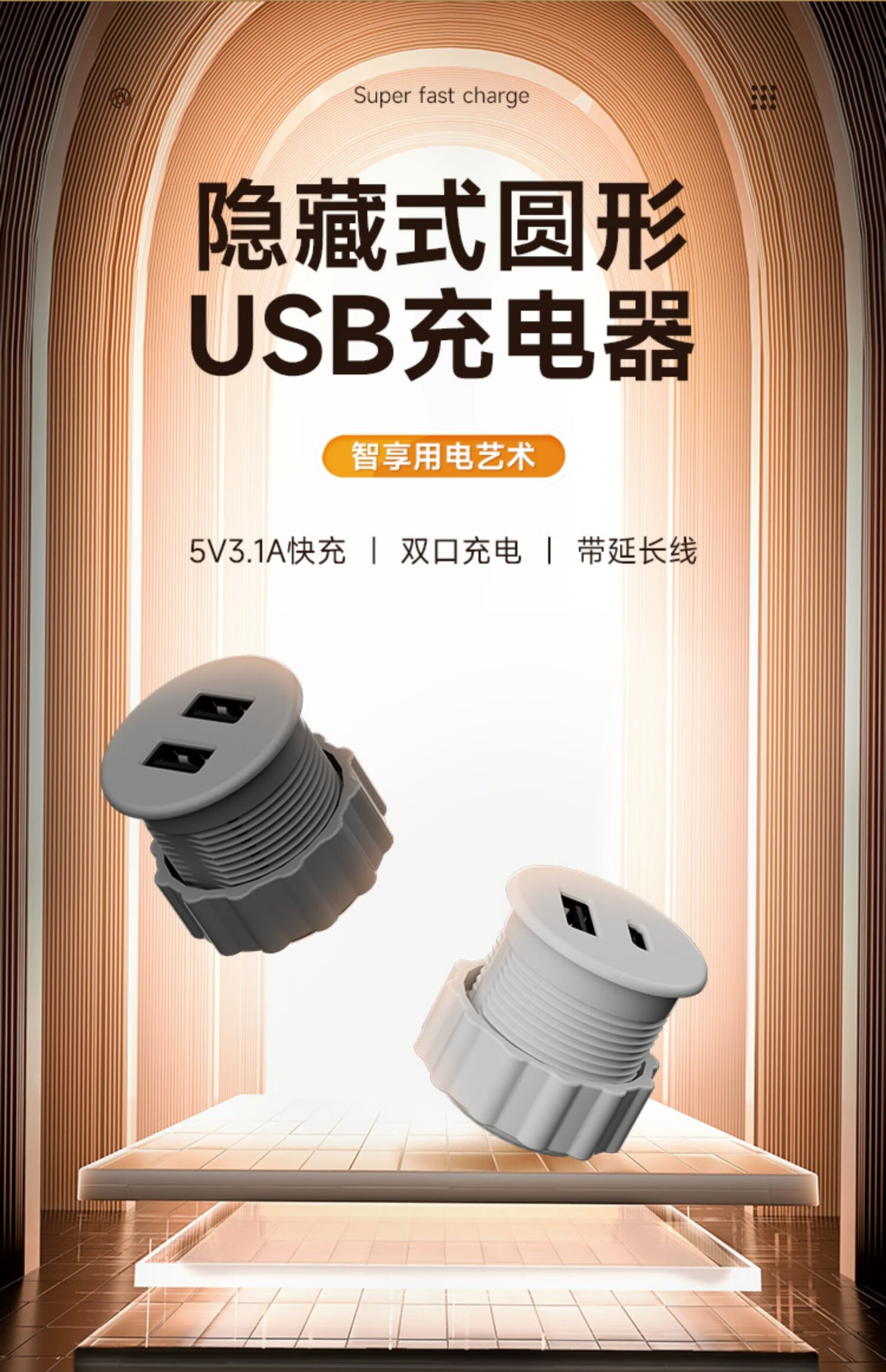 公牛王圆形嵌入式USB插座带TypeC口15W快充手机充电器家用沙发茶几办公 15W快充黑色套装1A1C+1.5米线+ 1