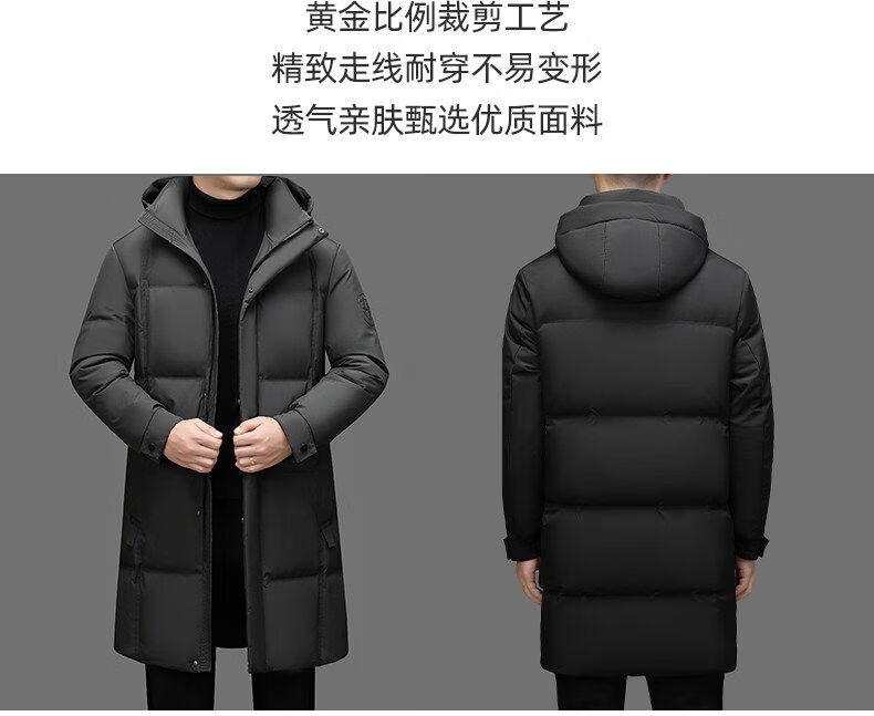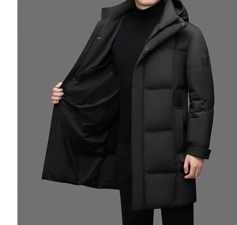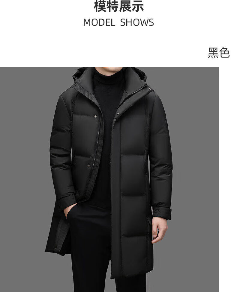 LILANG利郎冬季长款羽绒服男加厚保暖外套防寒鸭绒服防风爸爸冬装 黑色 L 175 110-130斤