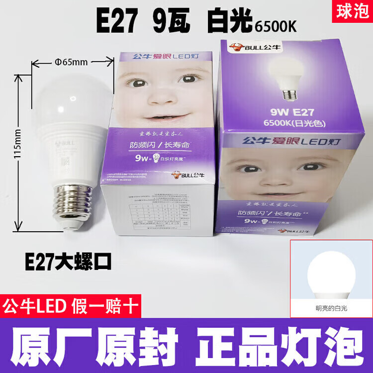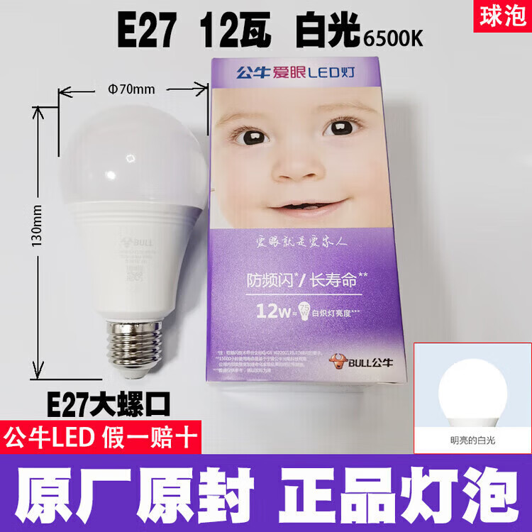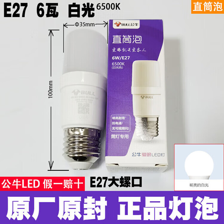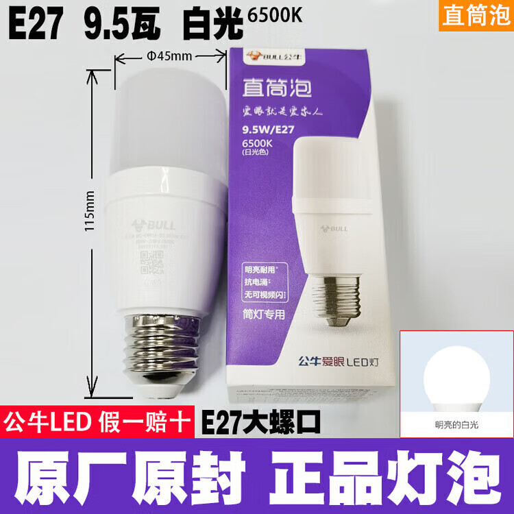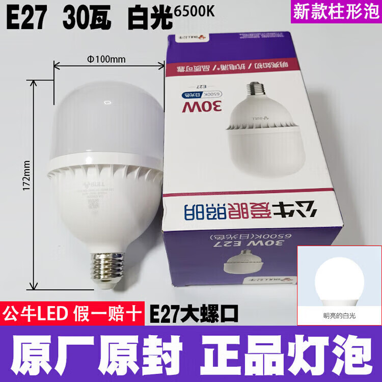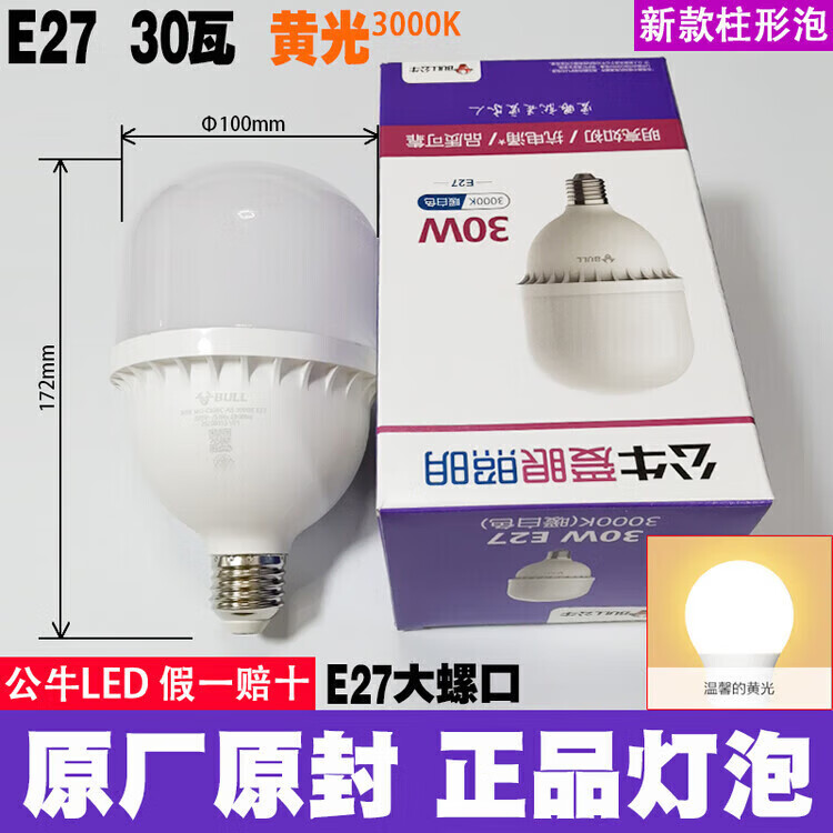 公牛led灯泡节能省电护眼超亮家用卧室客厅工厂e27大螺口照明柱形灯泡 公牛68w灯泡 白光 公牛LED灯泡—超亮节能护眼系列