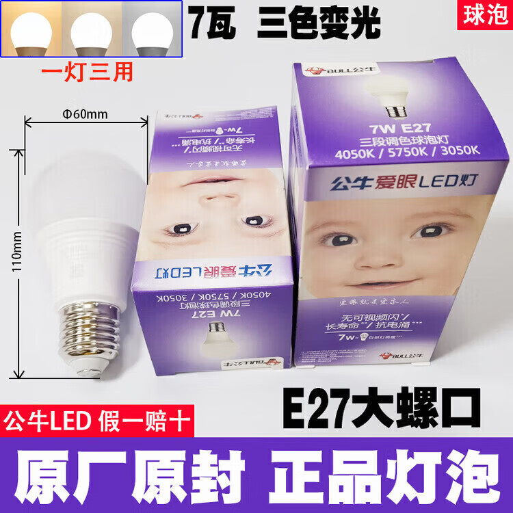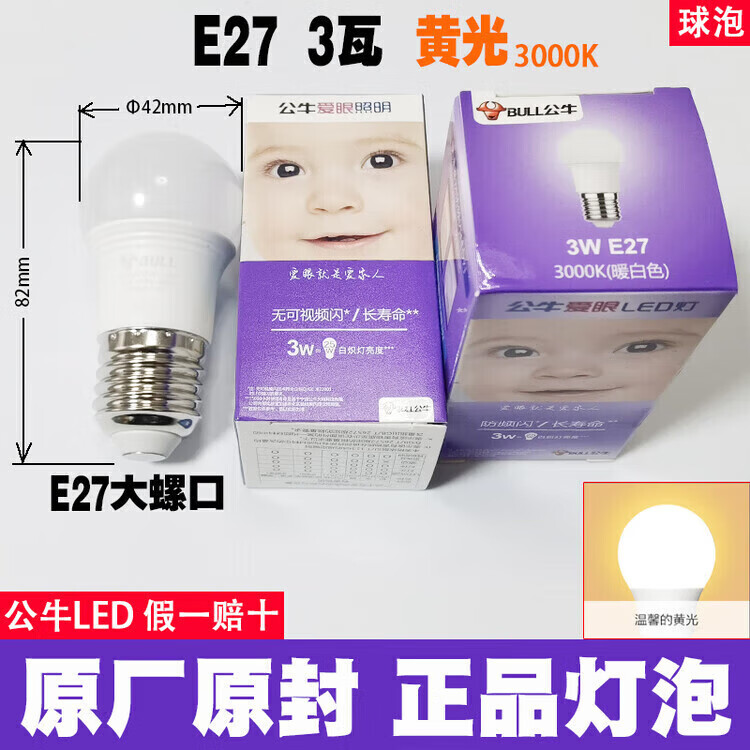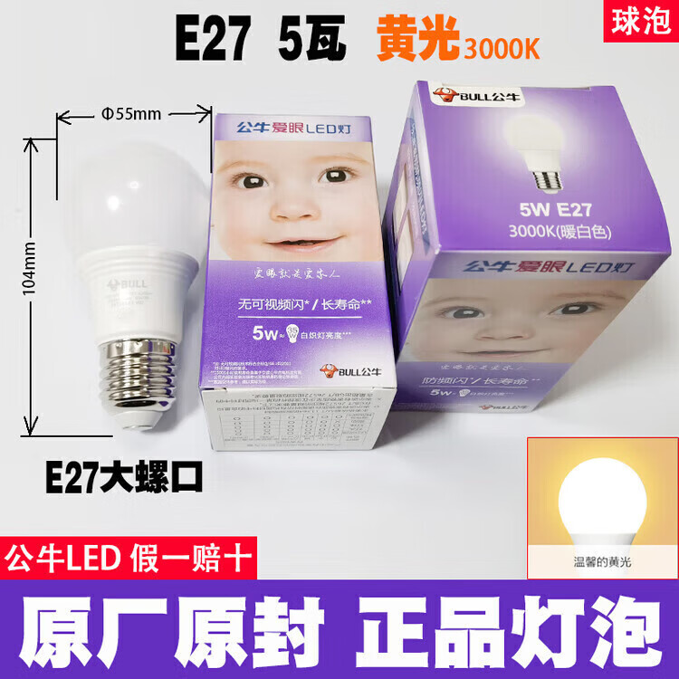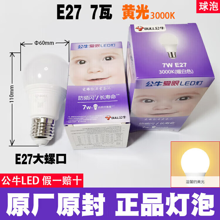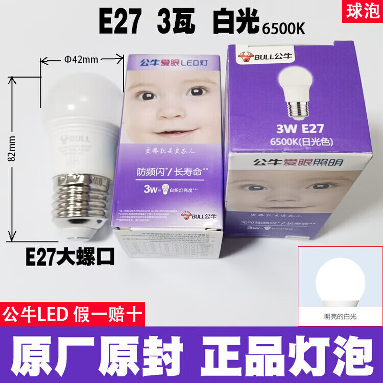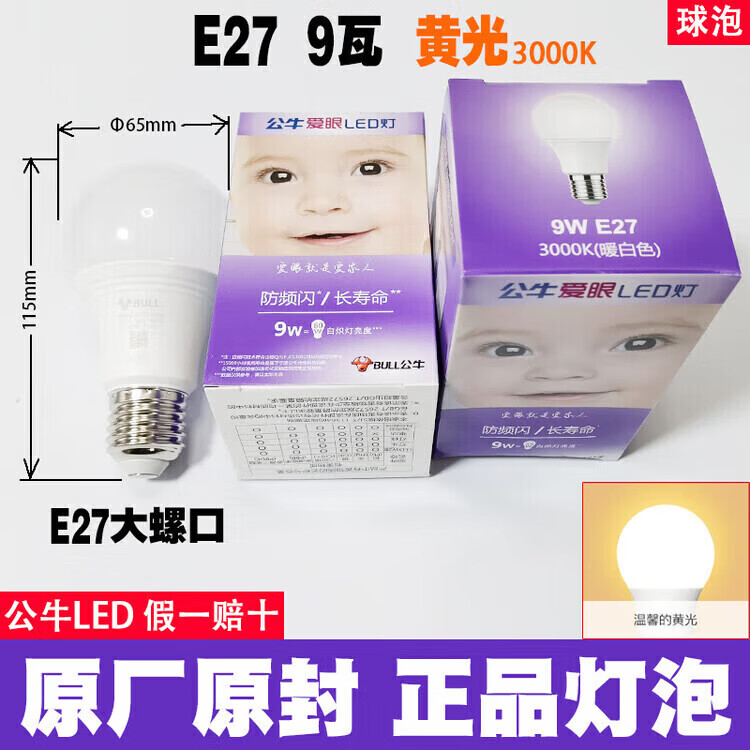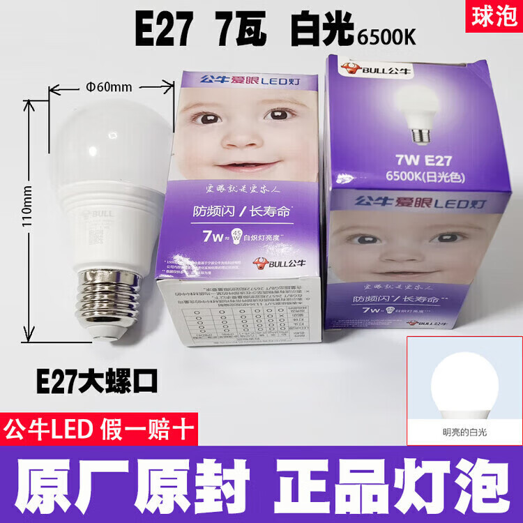 公牛led灯泡节能省电护眼超亮家用卧室客厅工厂e27大螺口照明柱形灯泡 公牛68w灯泡 白光 公牛LED灯泡—超亮节能护眼系列