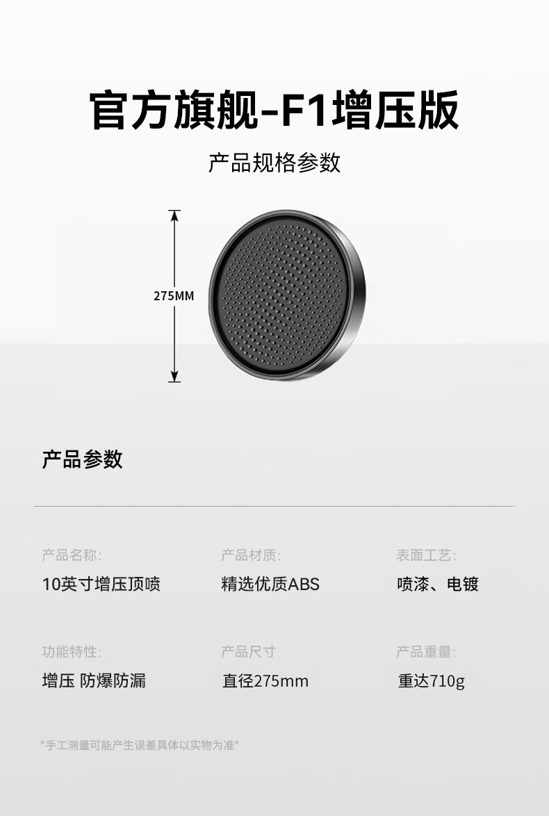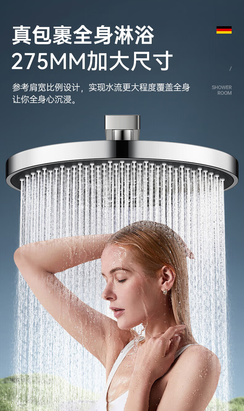 GuGuGo【德国】花洒顶喷增压花洒喷头淋浴喷头大花洒浴室洗澡顶喷花洒头 【星空银】27CM大顶喷增压花洒 AIR空气增压丨享受全身雨淋般体验