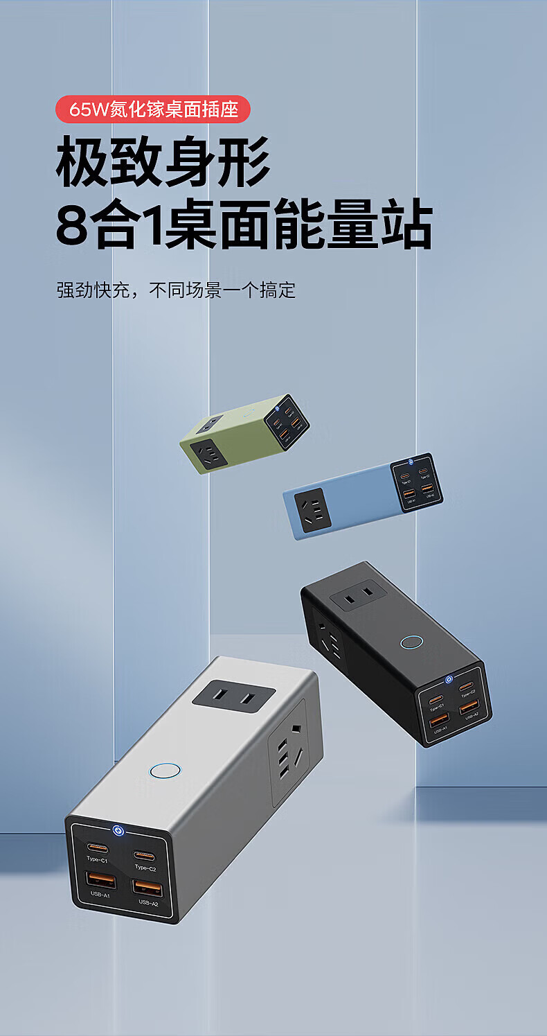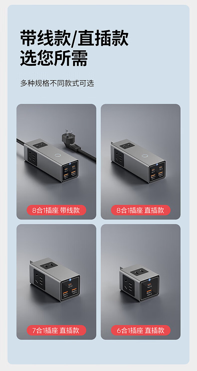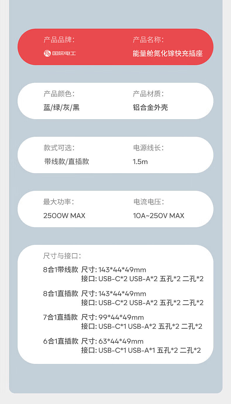国际电工65W氮化镓快充插座转换器20W直插桌面插线板usb小电舱排插接线板 直插款14孔插座【灰色】