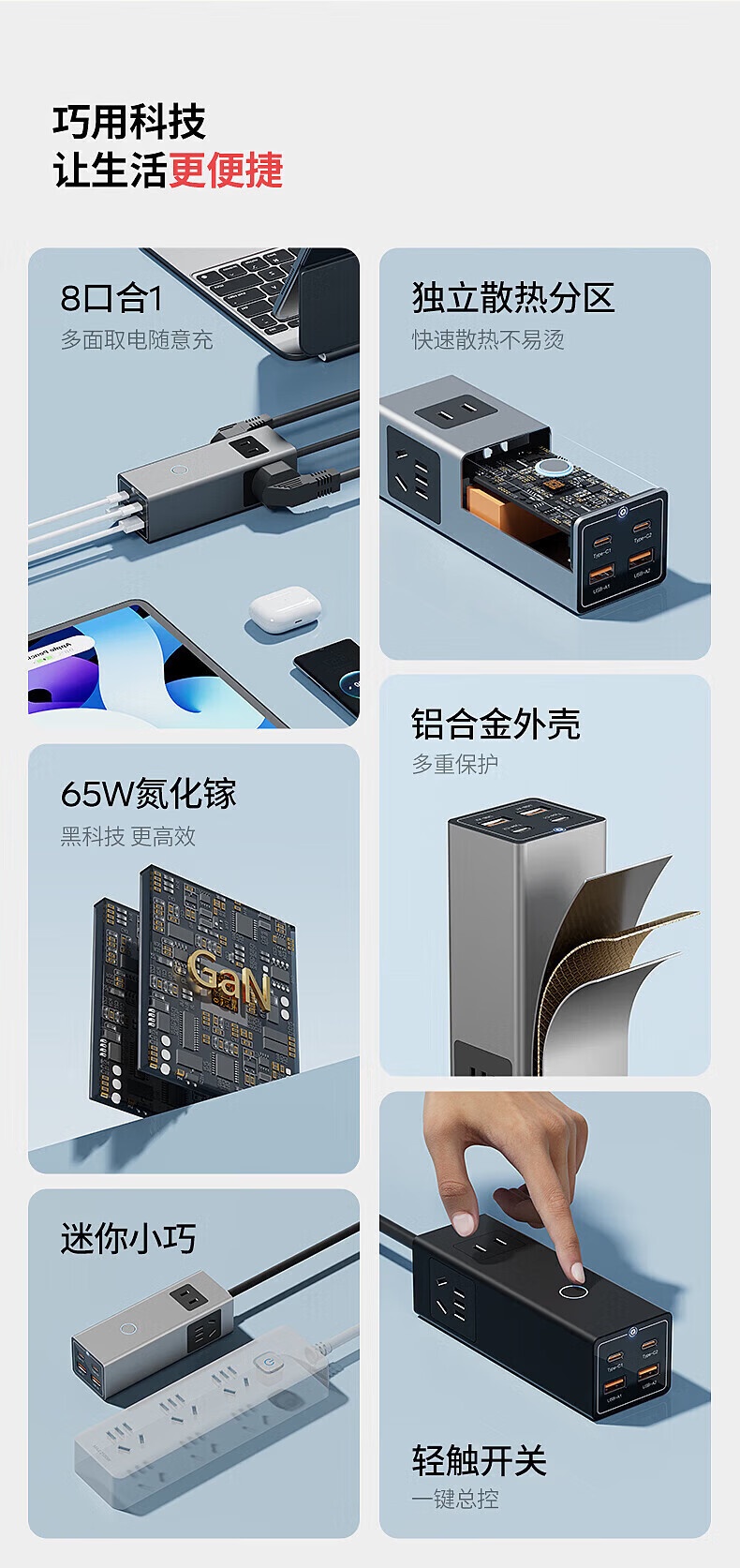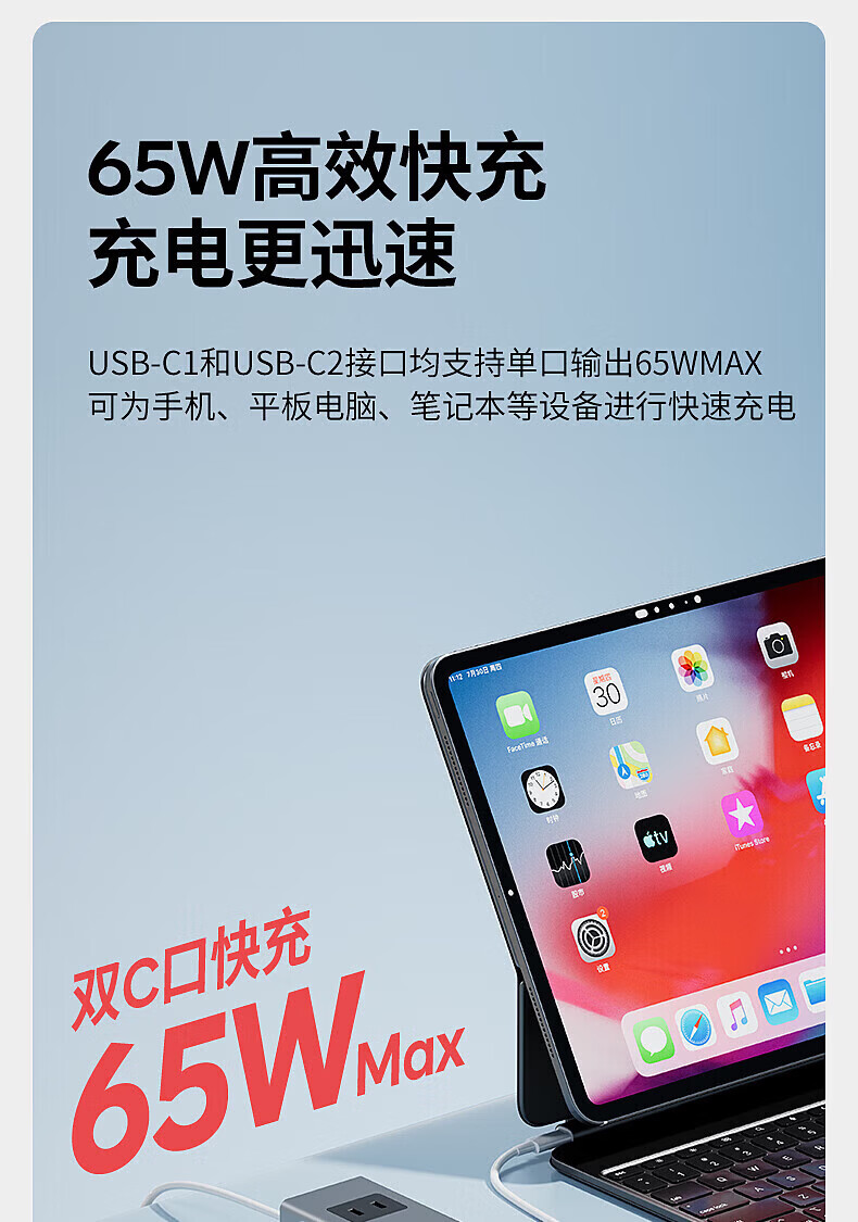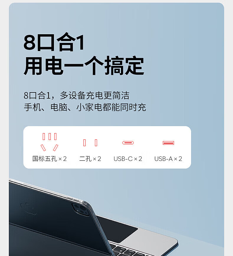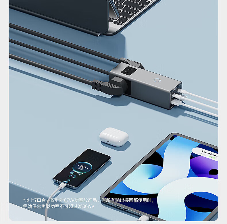 国际电工65W氮化镓快充插座转换器20W直插桌面插线板usb小电舱排插接线板 直插款14孔插座【灰色】