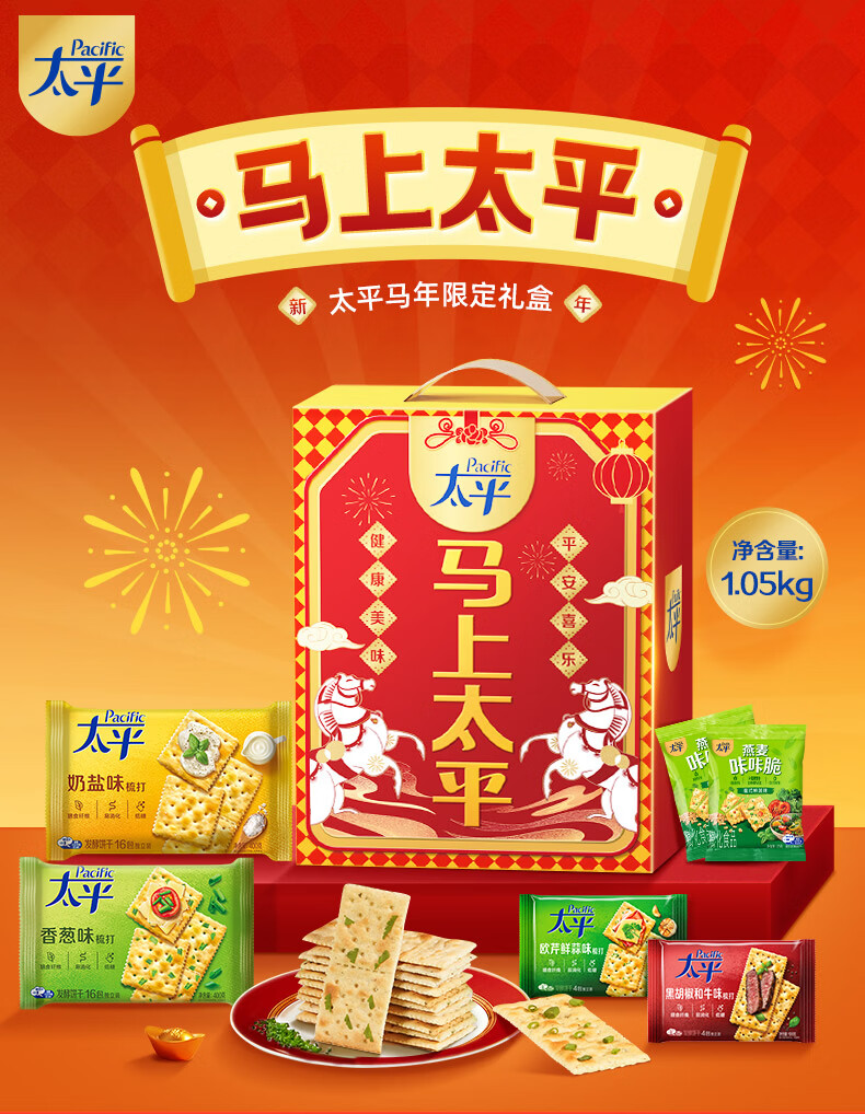 太平马年岁岁平安饼干礼盒1050g含6件休闲零食饼干年货团购送礼伴手礼