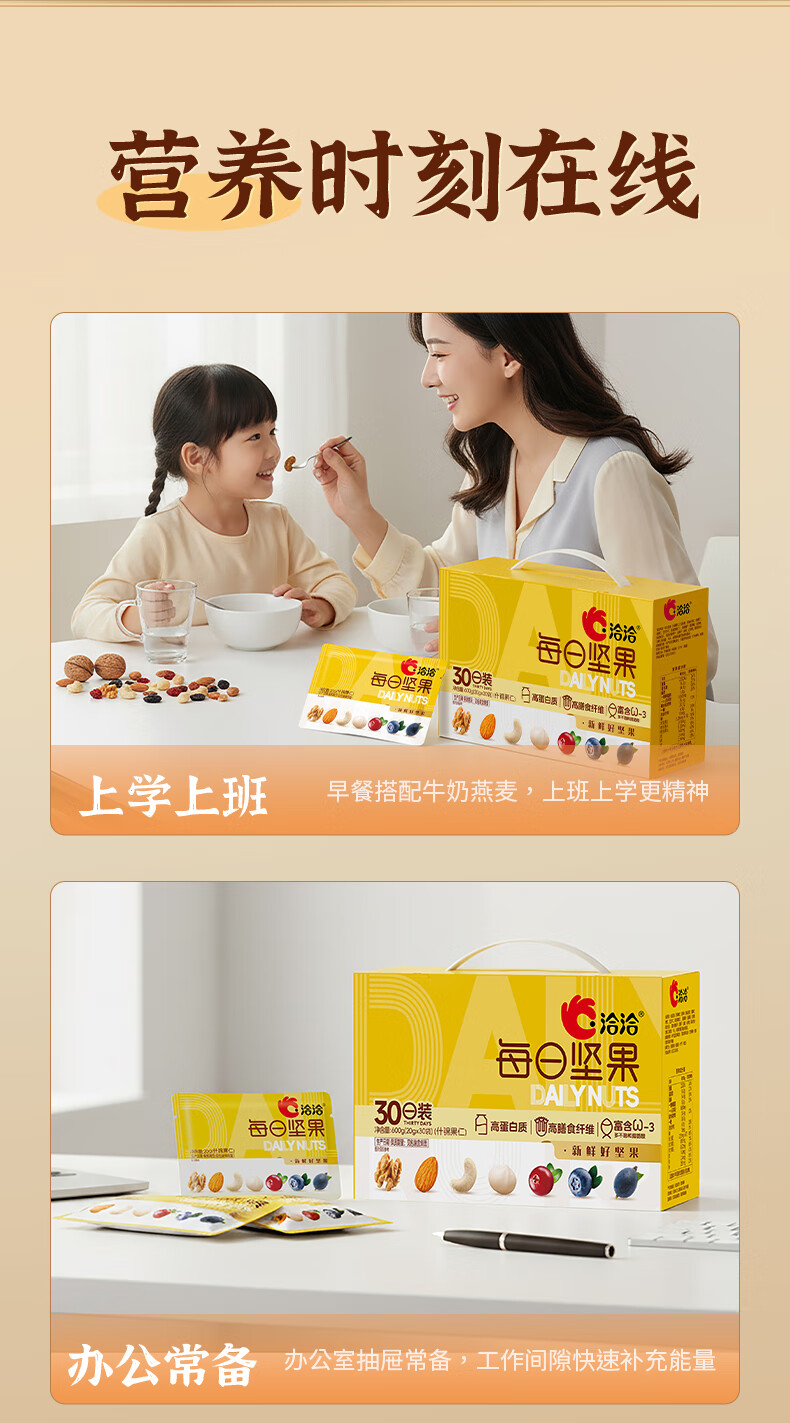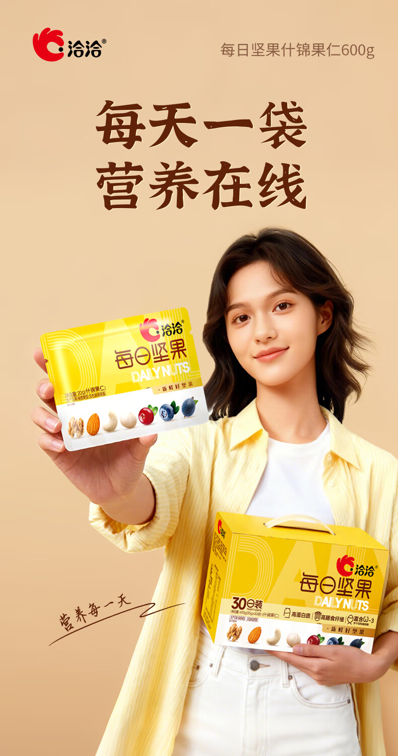 洽洽每日坚果小黄袋600g/30袋混合干果小包装零食坚果礼盒腰果年货
