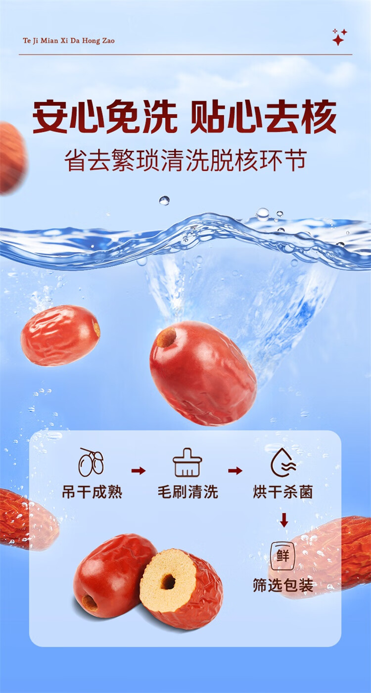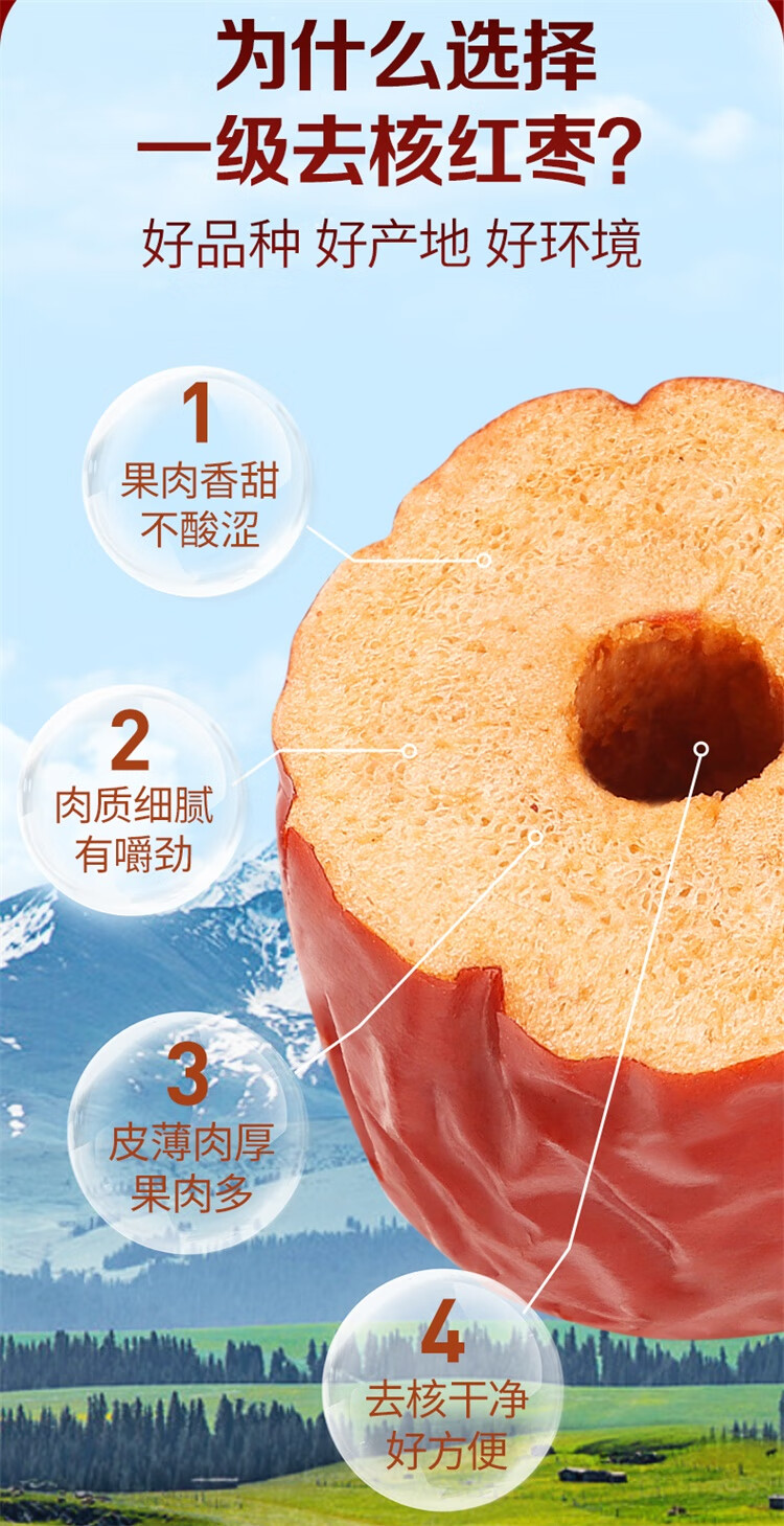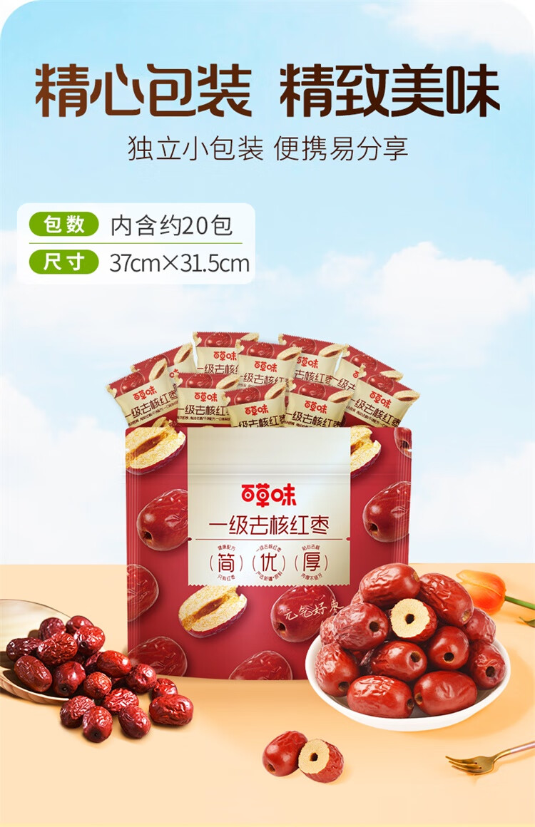 百草味一级去核大红枣500g 无核新疆特产免洗即食休闲零食孕妇煲汤煮粥