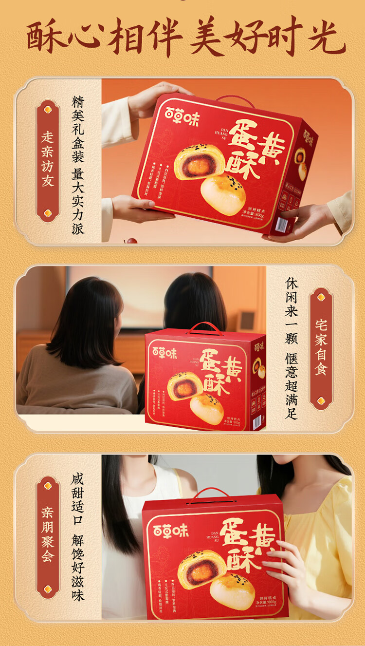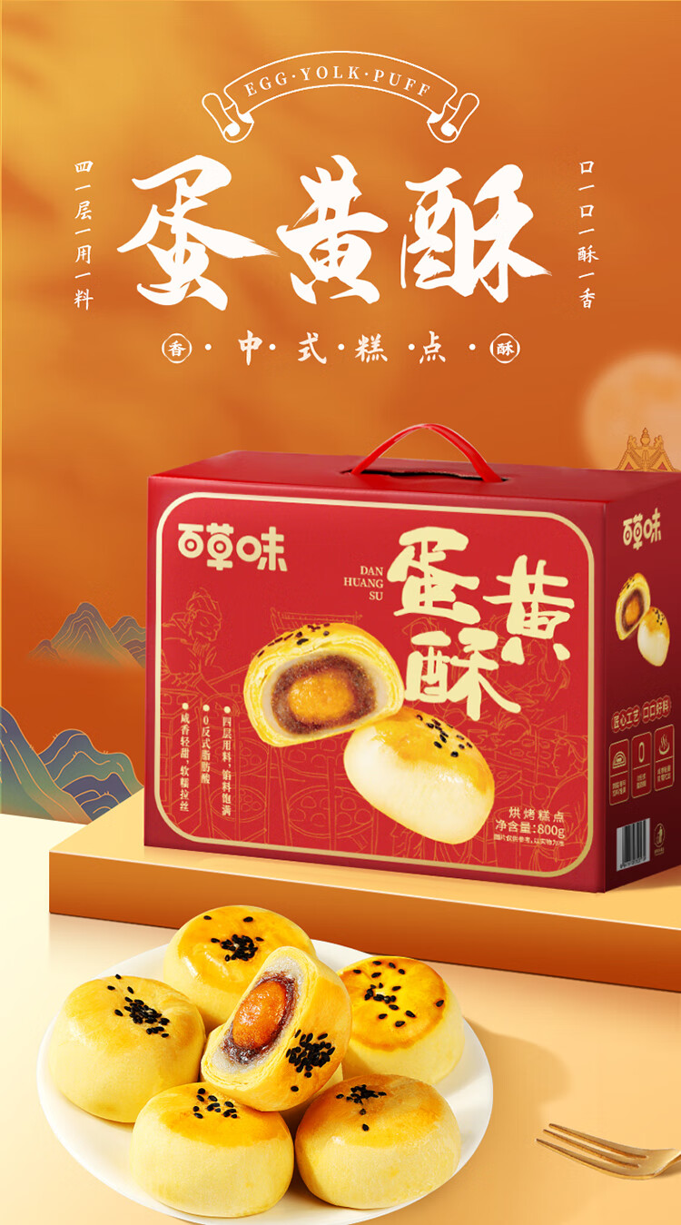 百草味蛋黄酥800g 早餐传统糕点礼盒点心休闲零食礼包年货送礼企业团购