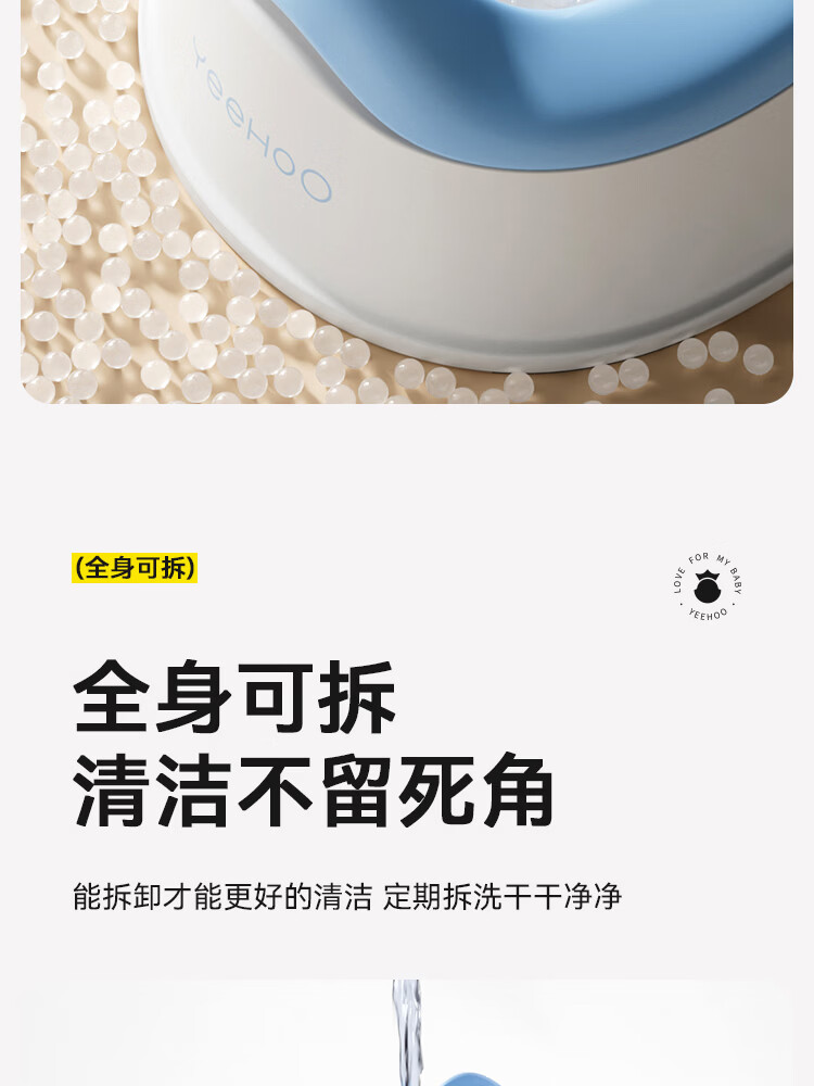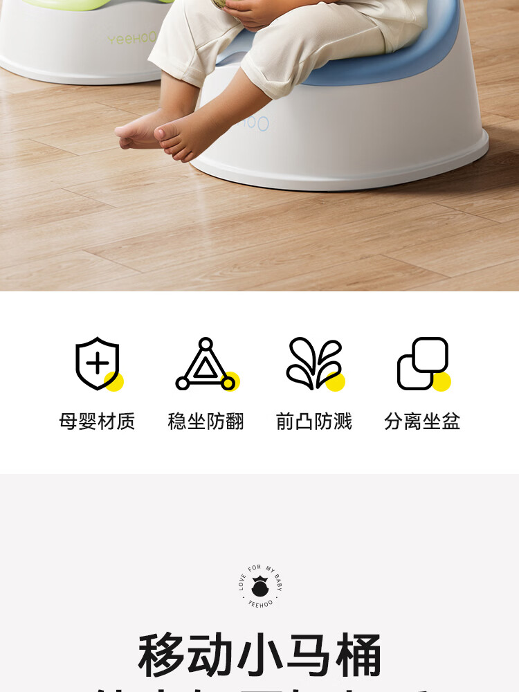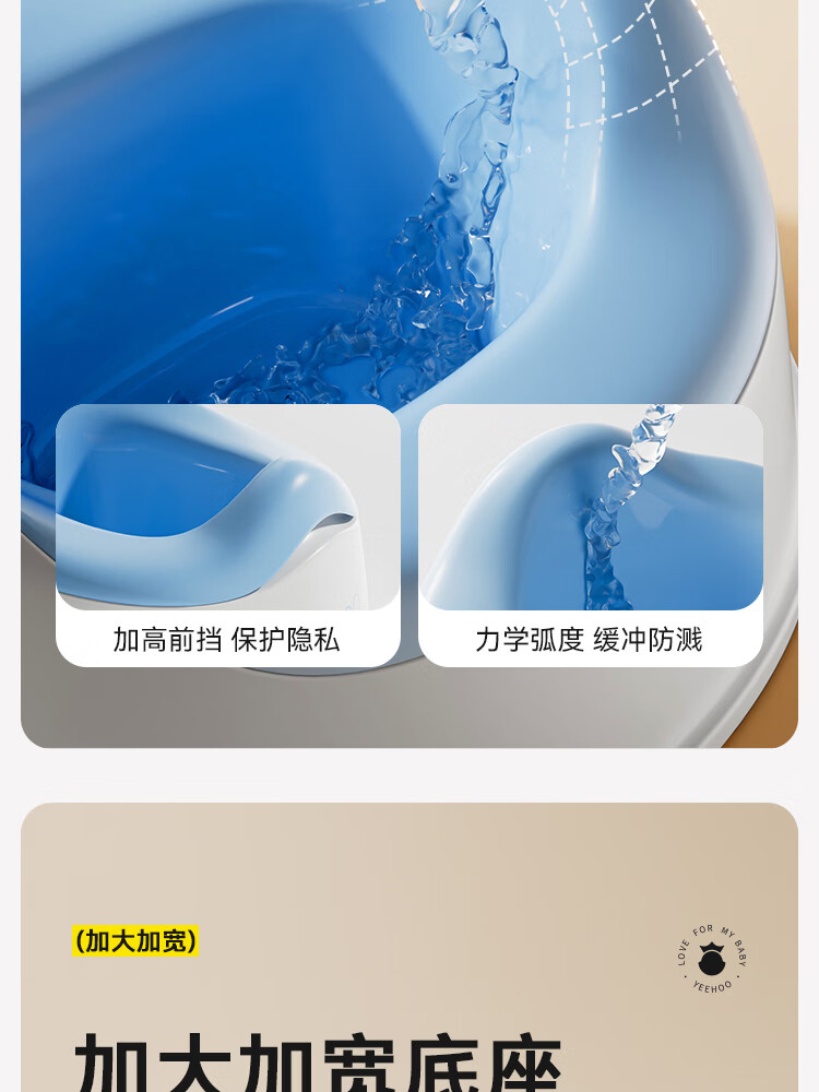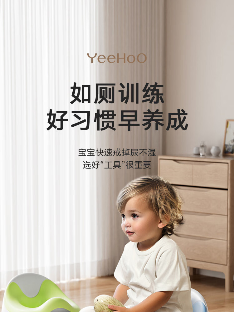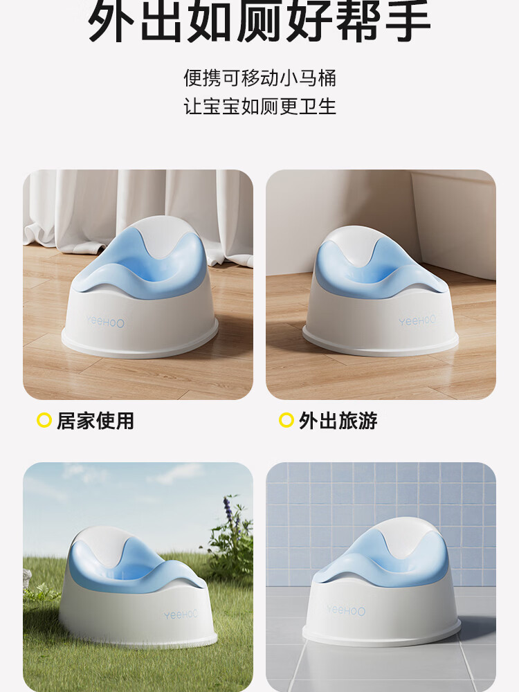 英氏(YEEHOO)宝宝马桶儿童坐便器学如厕训练日常护理上厕所宝宝便盆 宝宝座便器 涧石蓝 自主训练