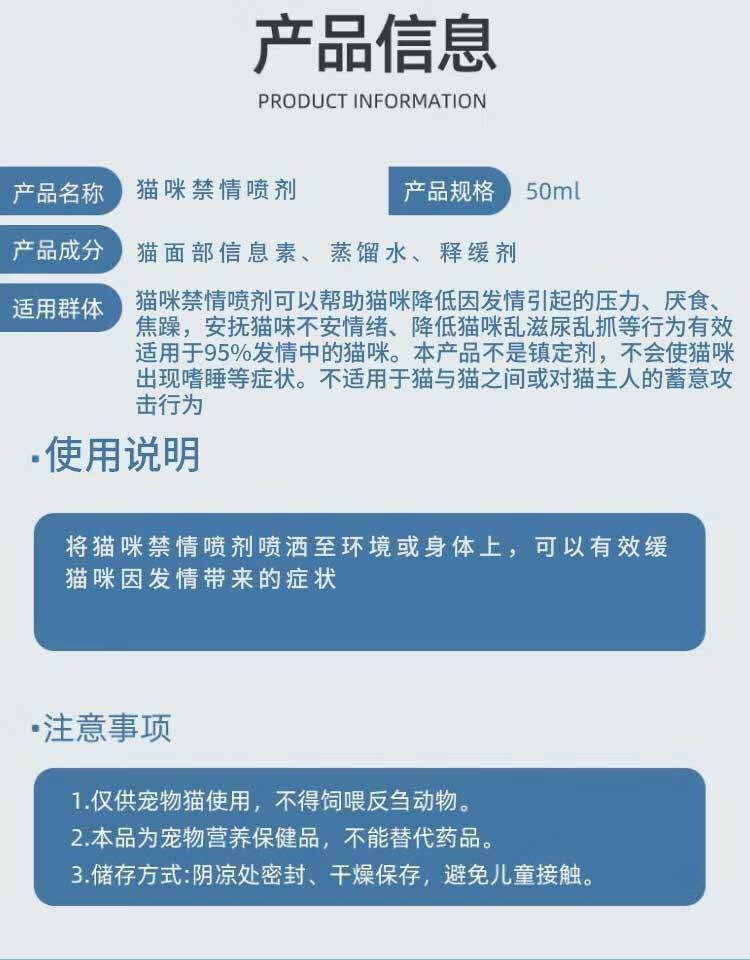 猫咪禁情喷雾抑制猫咪发情安抚猫咪应激发情情绪母猫公猫发情期防猫闹嚎叫喷剂 一瓶体验装