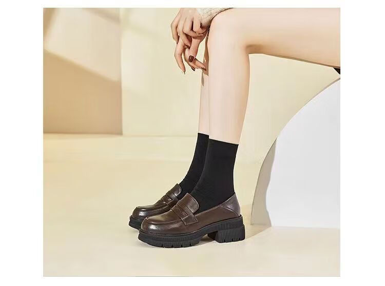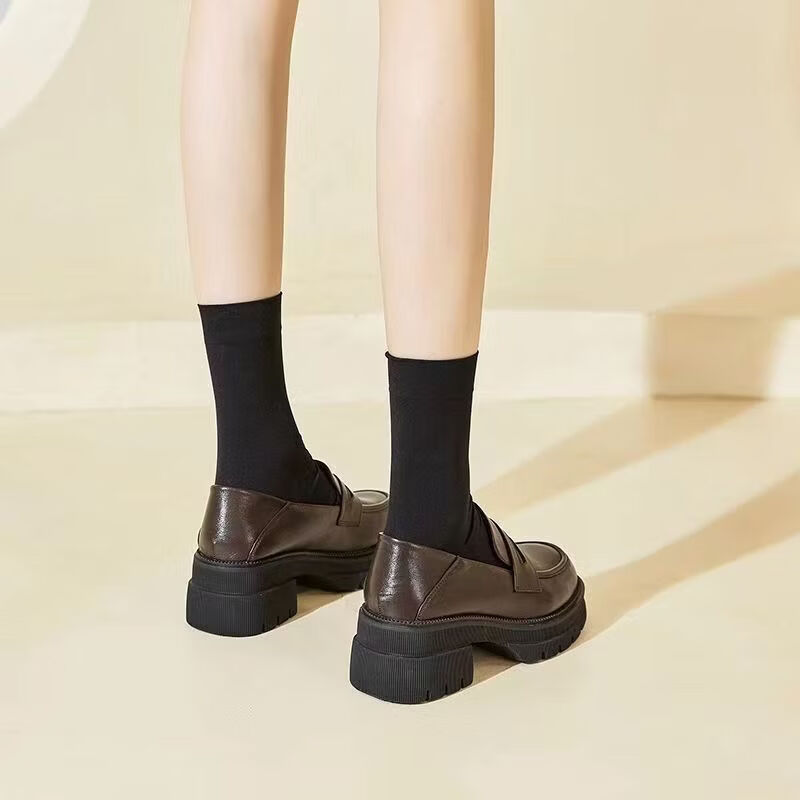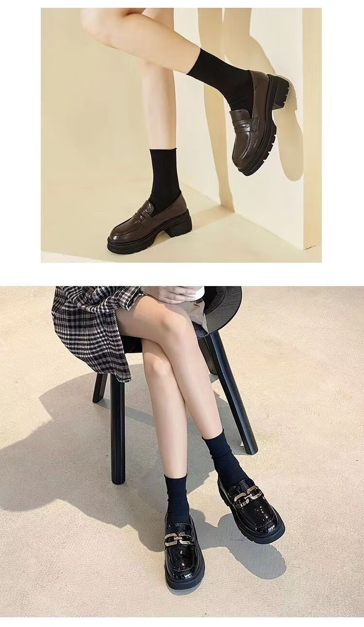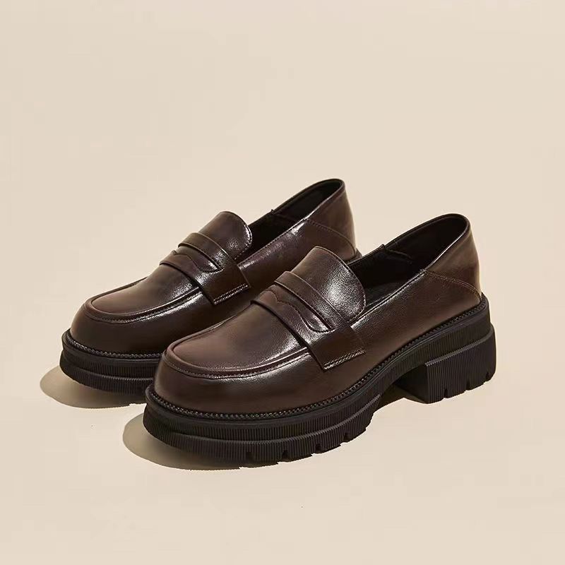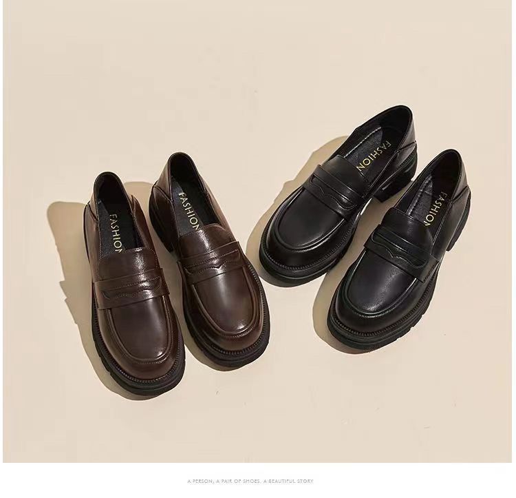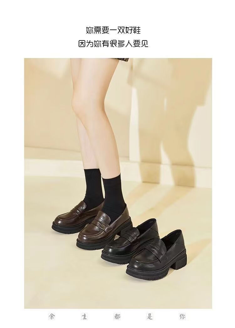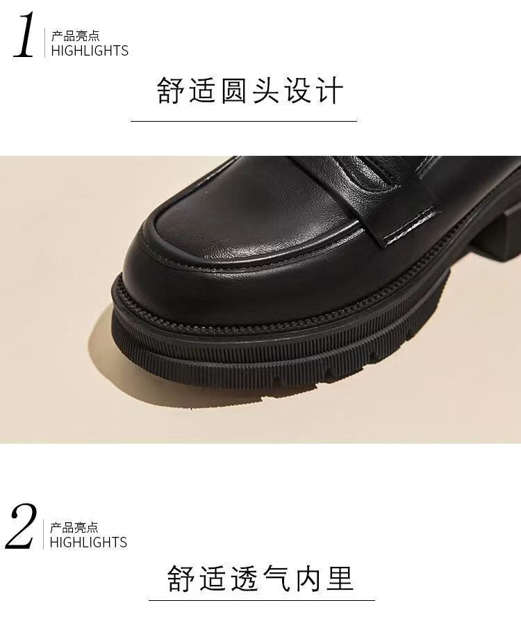 【严选】高跟鞋小皮鞋女2026新款春秋粗跟厚底一脚蹬乐福软底百搭 黑色 35 偏大脚瘦拍小一码