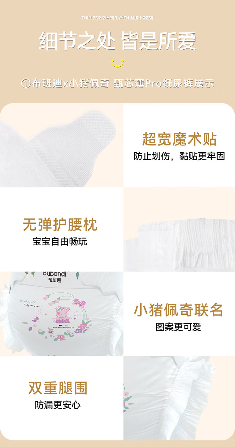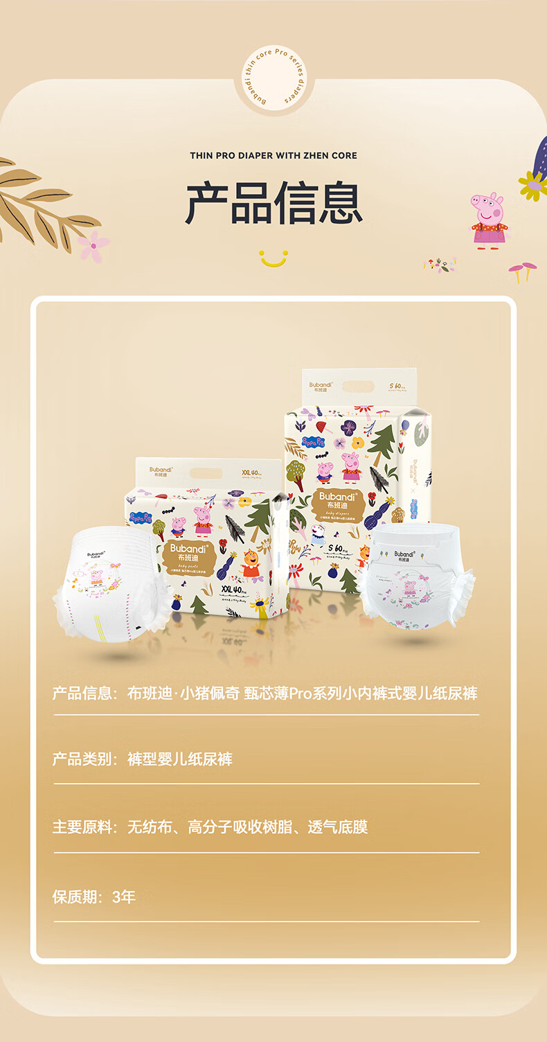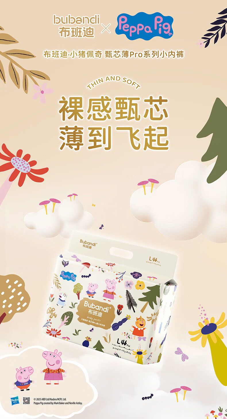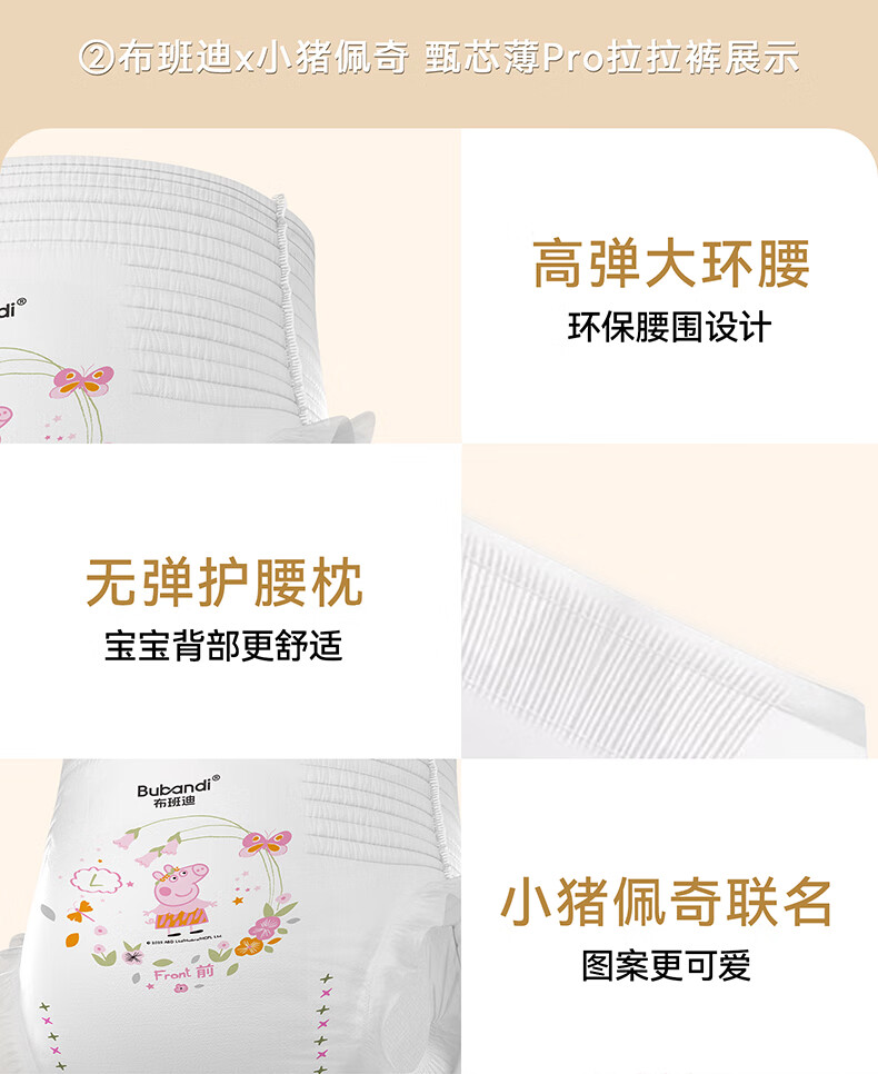 布班迪小猪佩奇甄芯薄拉拉裤医护级超薄透气纸尿裤男女宝宝婴儿尿不湿 【全包臀】拉拉裤L码92片