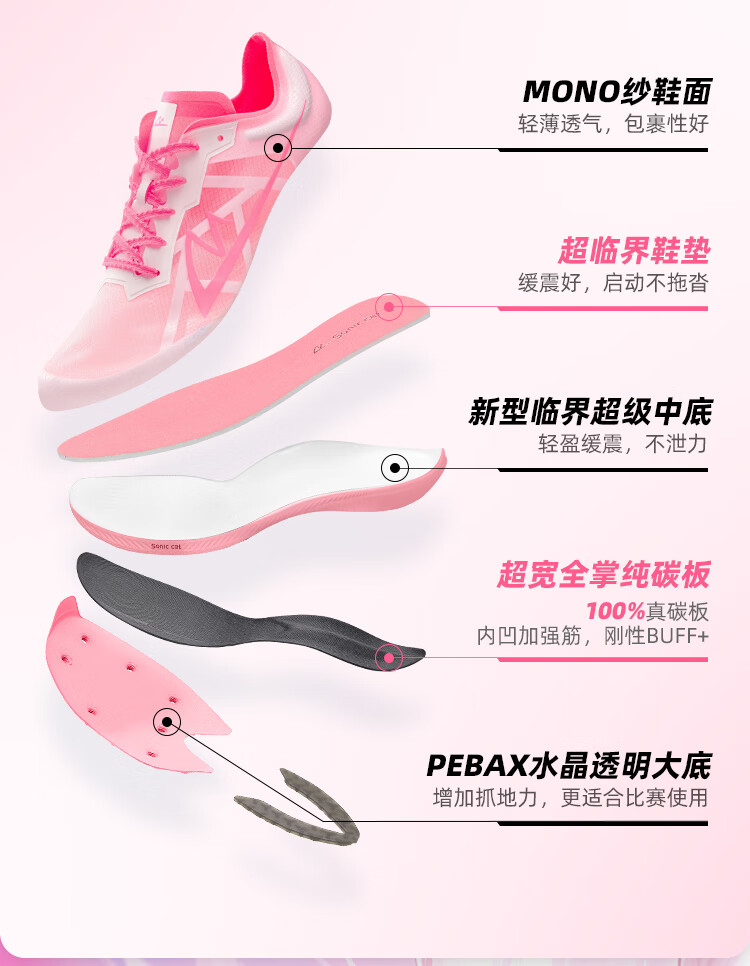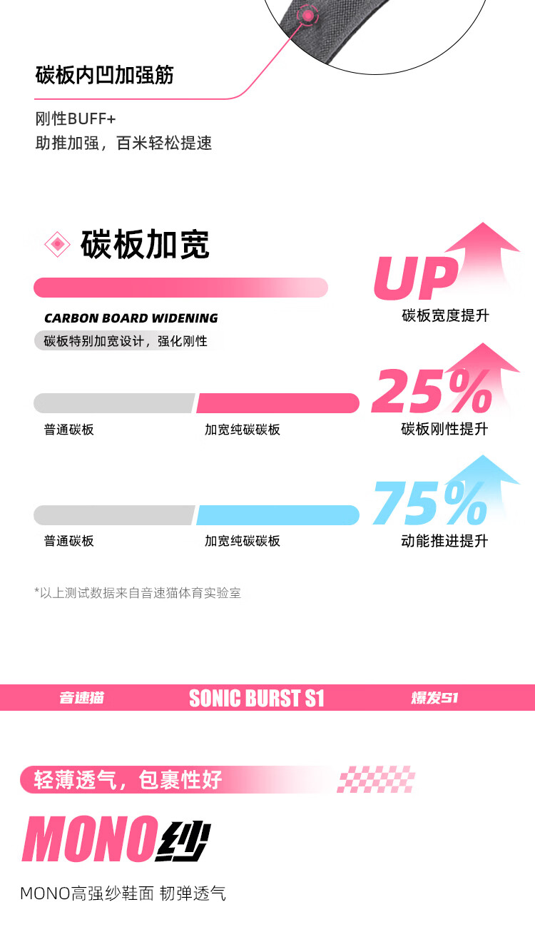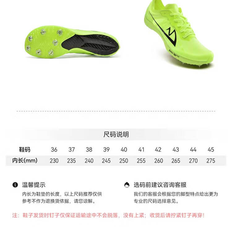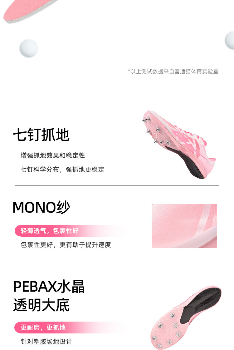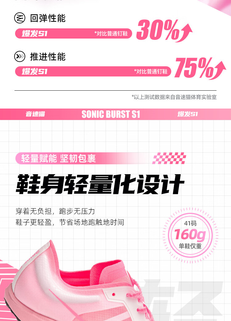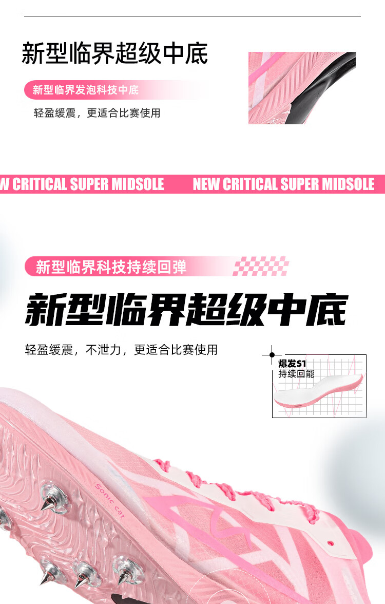 音速猫【北体共研】爆发S1全掌碳板钉鞋学生田径短跑提速体测训练鞋夏季 猛男粉 40