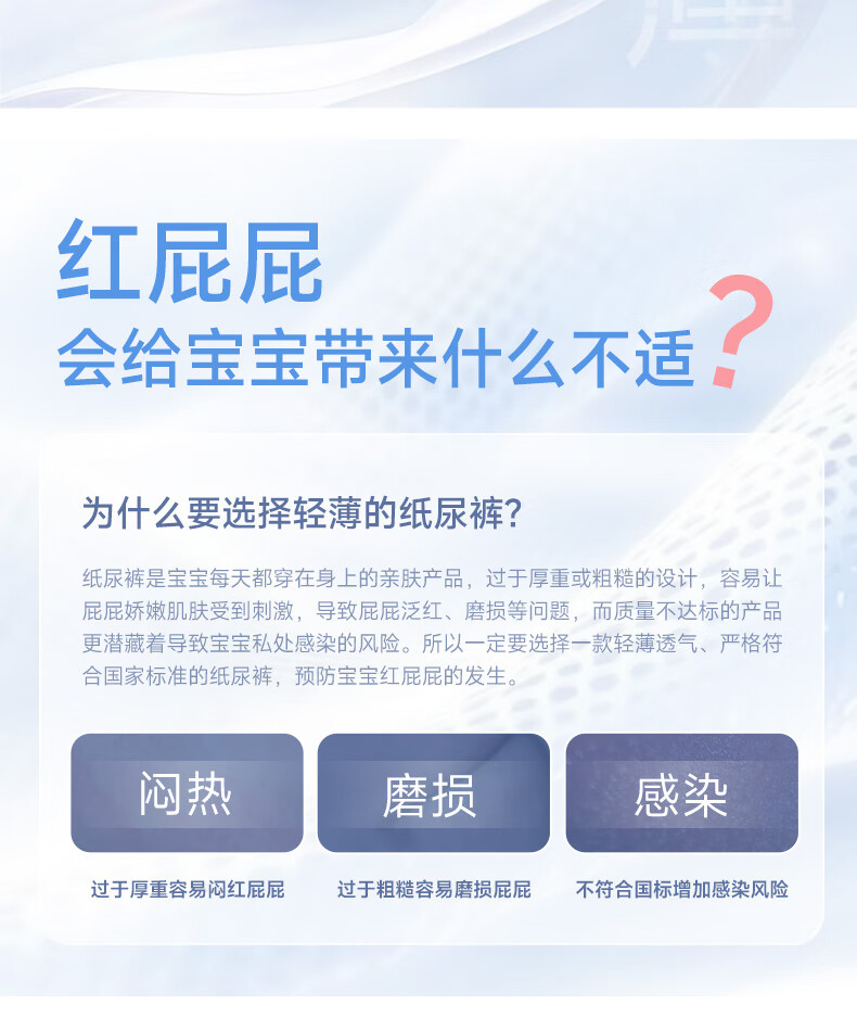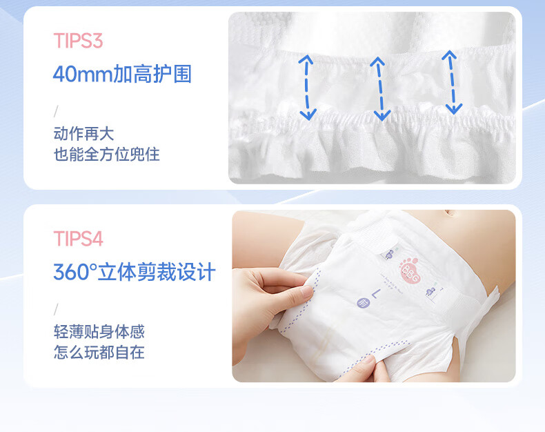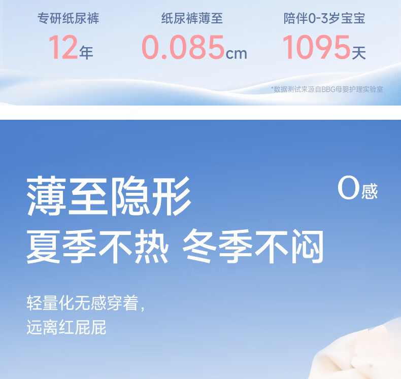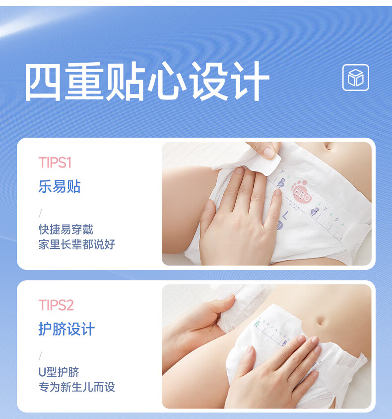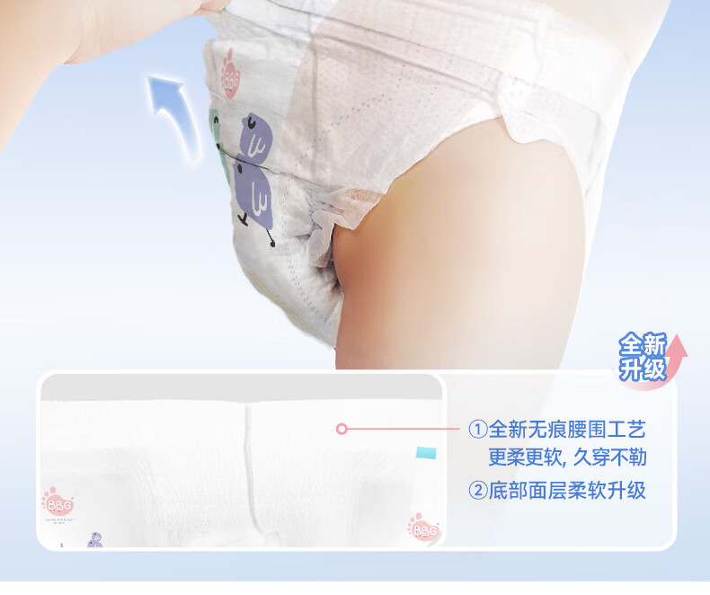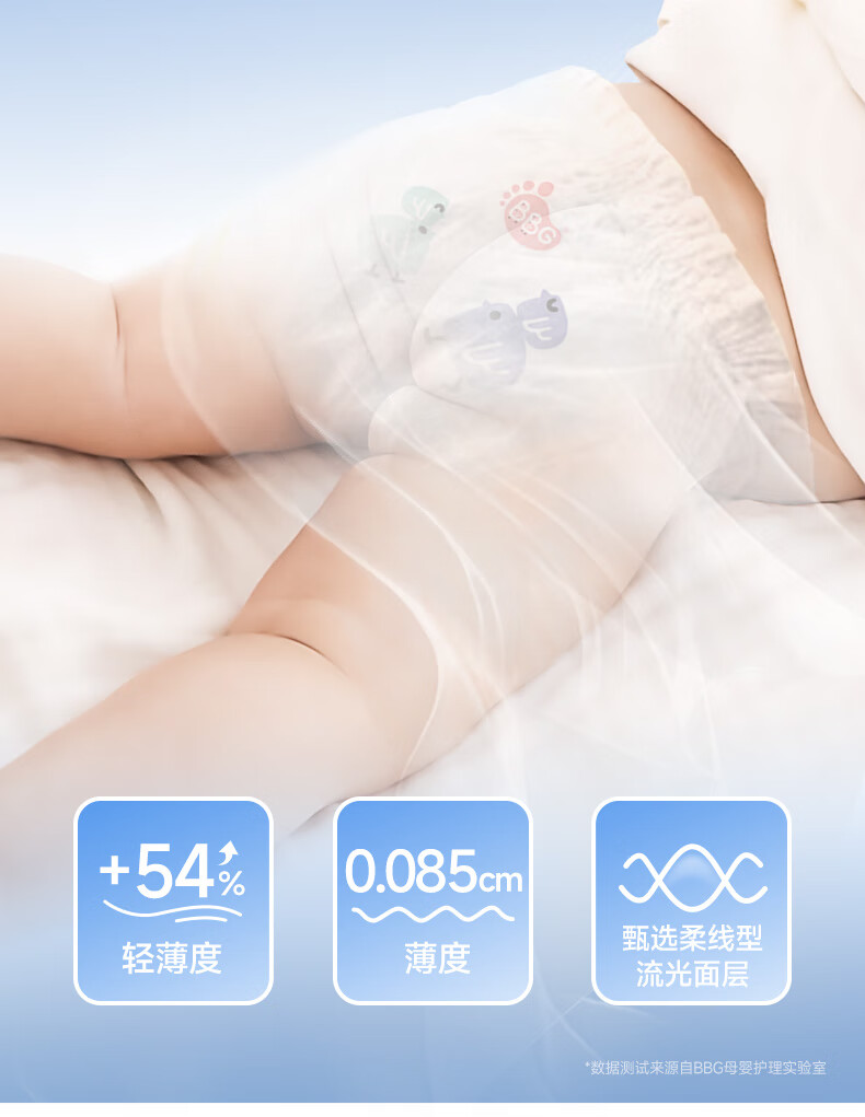 BBG蓝芯丝薄轻柔bbg纸尿裤M码46片(5-9kg)尿不湿超薄透气裸感亲肤