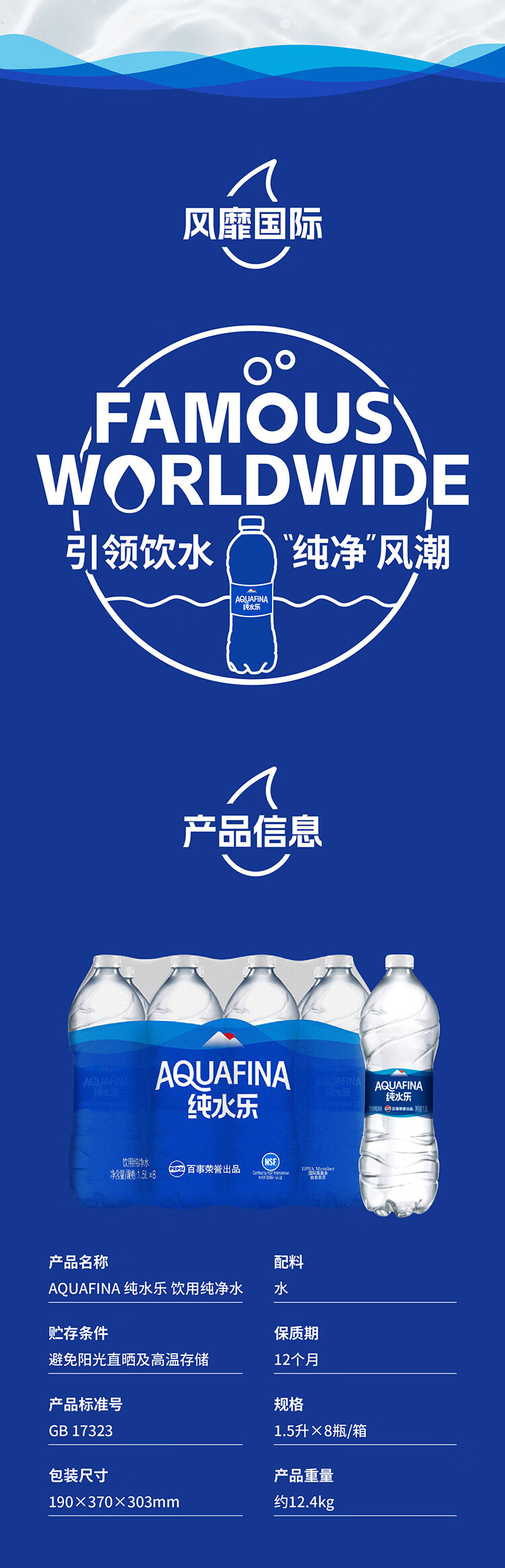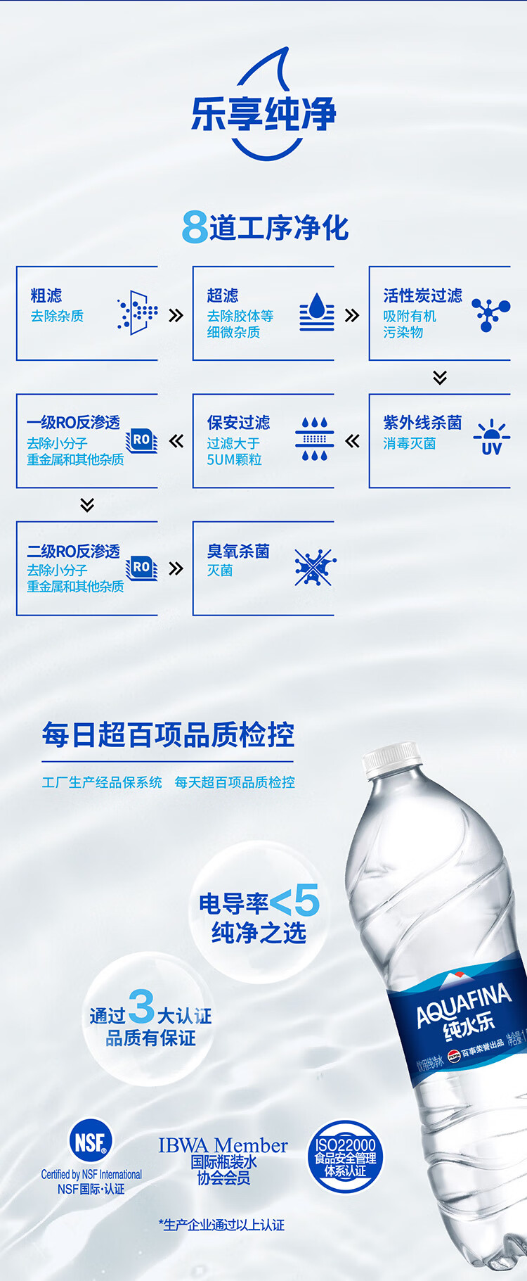 百事可乐【热门商品】纯水乐 纯净水 饮用水 1.5L*8大瓶装 家庭用水整箱装