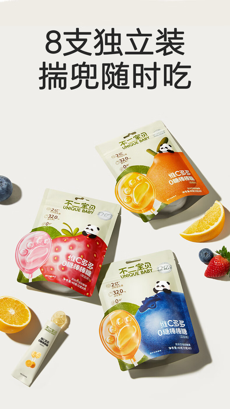 不二宝贝无糖棒棒糖果零食叶黄素酯无添加搭配婴幼儿童维c山楂棒 【0糖 维C】蓝莓味 棒棒糖*1袋