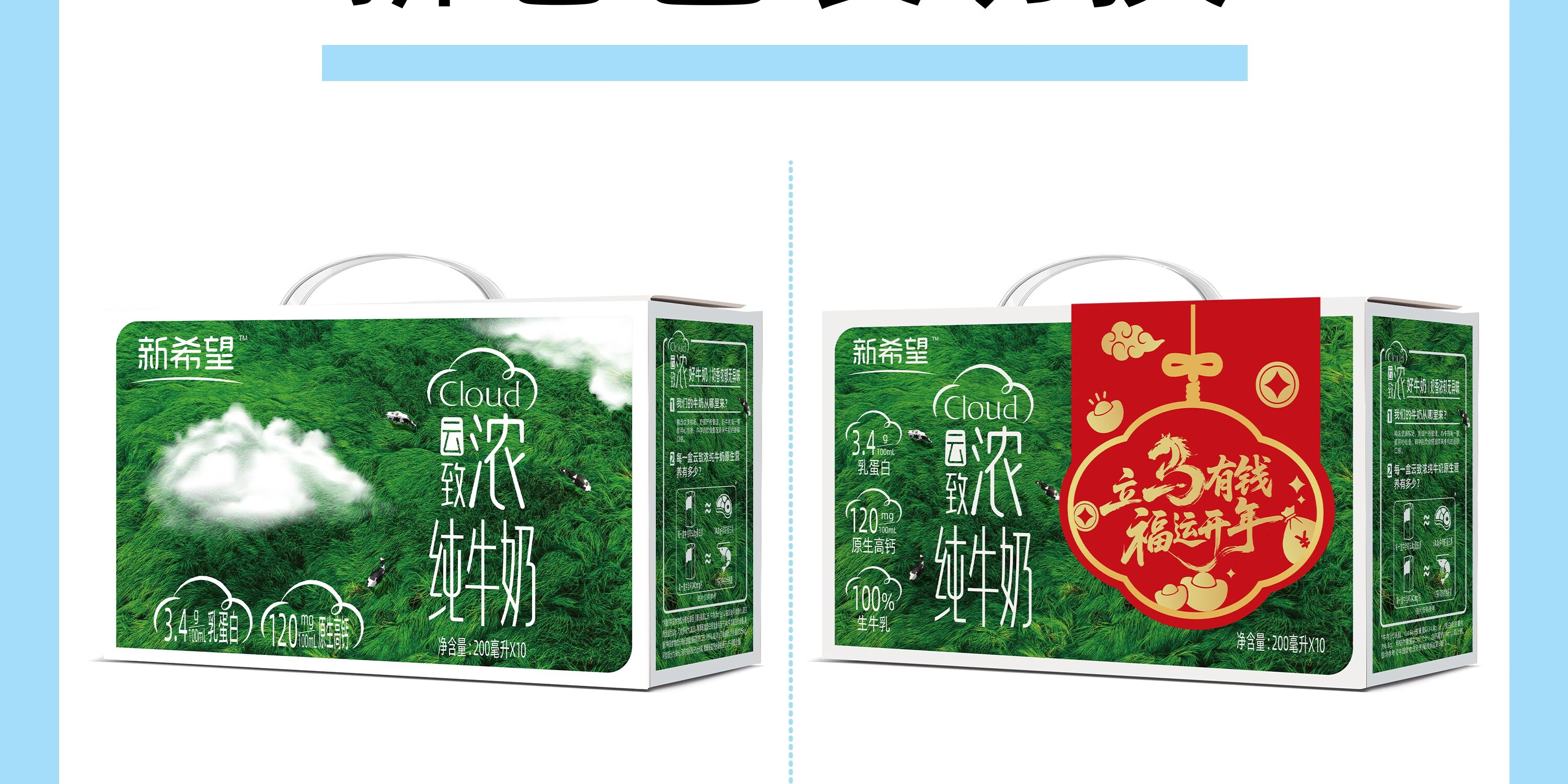 新希望云致浓高钙/云致轻0脂纯牛奶200ml/10盒12月中产生牛乳学生早餐奶 云致浓高钙纯牛奶10盒*5提