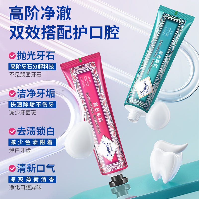 Coranet花香清新牙膏清洁牙齿护牙龈减少软垢清新口气巨留香成人口腔护理 花香清新牙膏 100g*3支 .