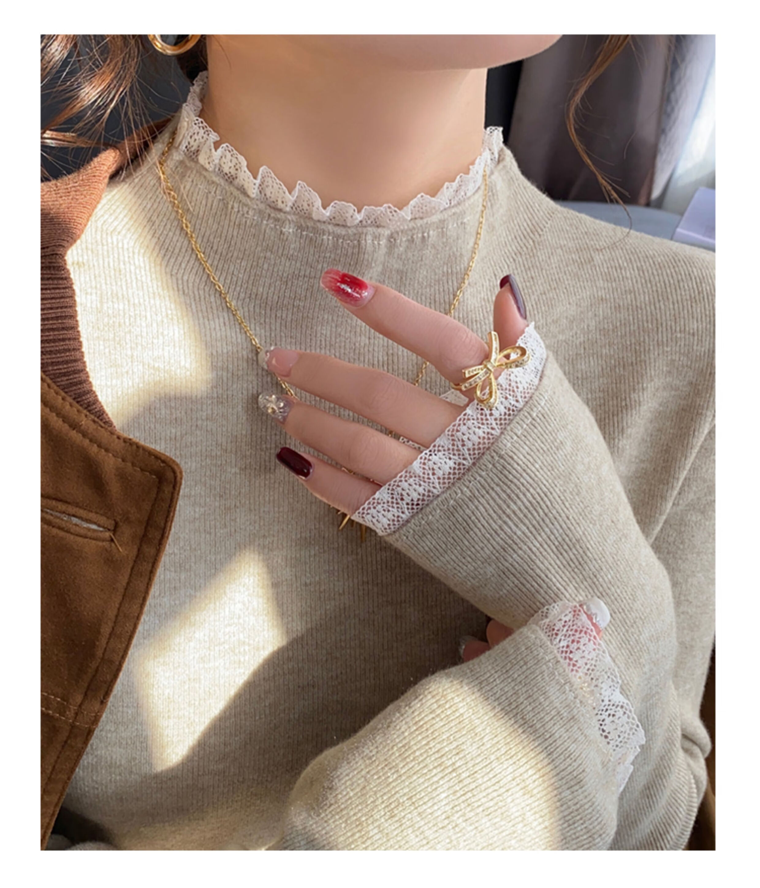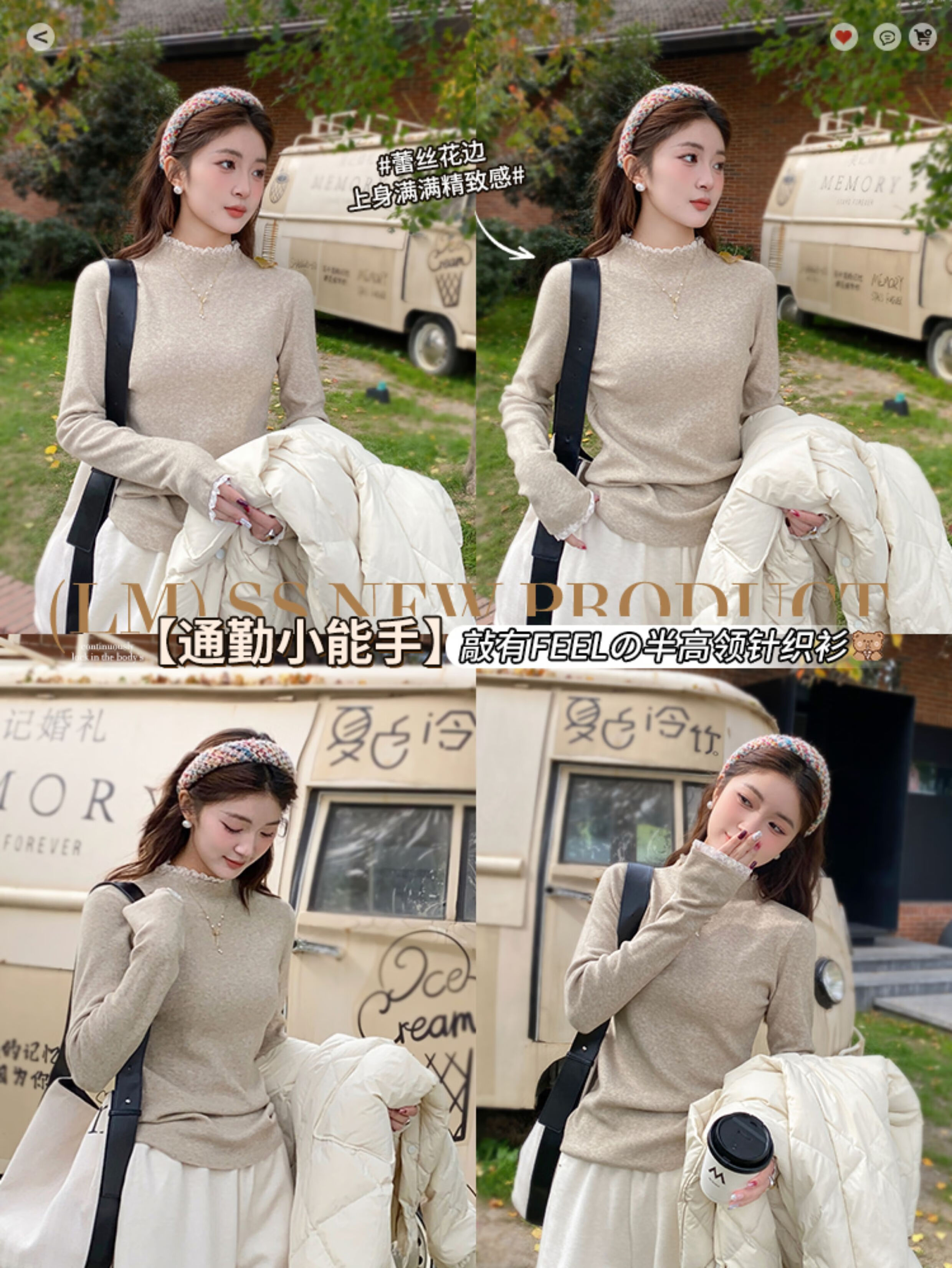 香影纯蕾丝半高领白色打底衫女内搭高级感2025秋冬新款毛衣外穿针织上衣 白色 S (建议95斤以内)