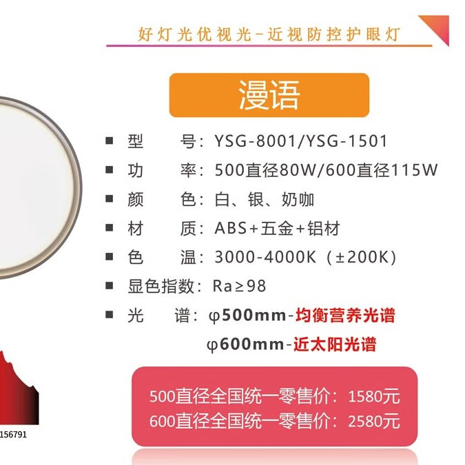 优视光 漫语 YSG-1501全营养光谱护眼吸顶灯系列 80W 卧室书房专用 80W 100㎡内适用 6000lm 无限接近太阳光光谱,补充光营养 600mm