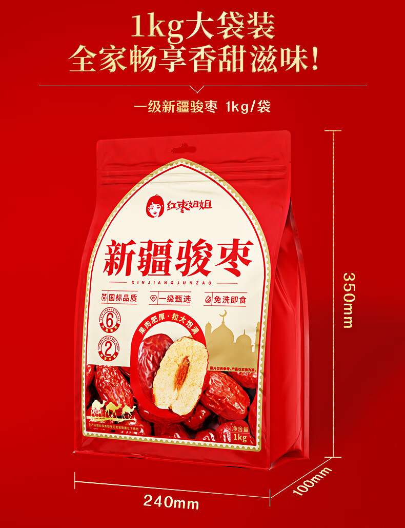 党鲜红枣 新疆和田大枣干袋装新枣子煮粥泡水喝专用即食 新疆和田肉枣【肉厚核小】 【净重】1000克