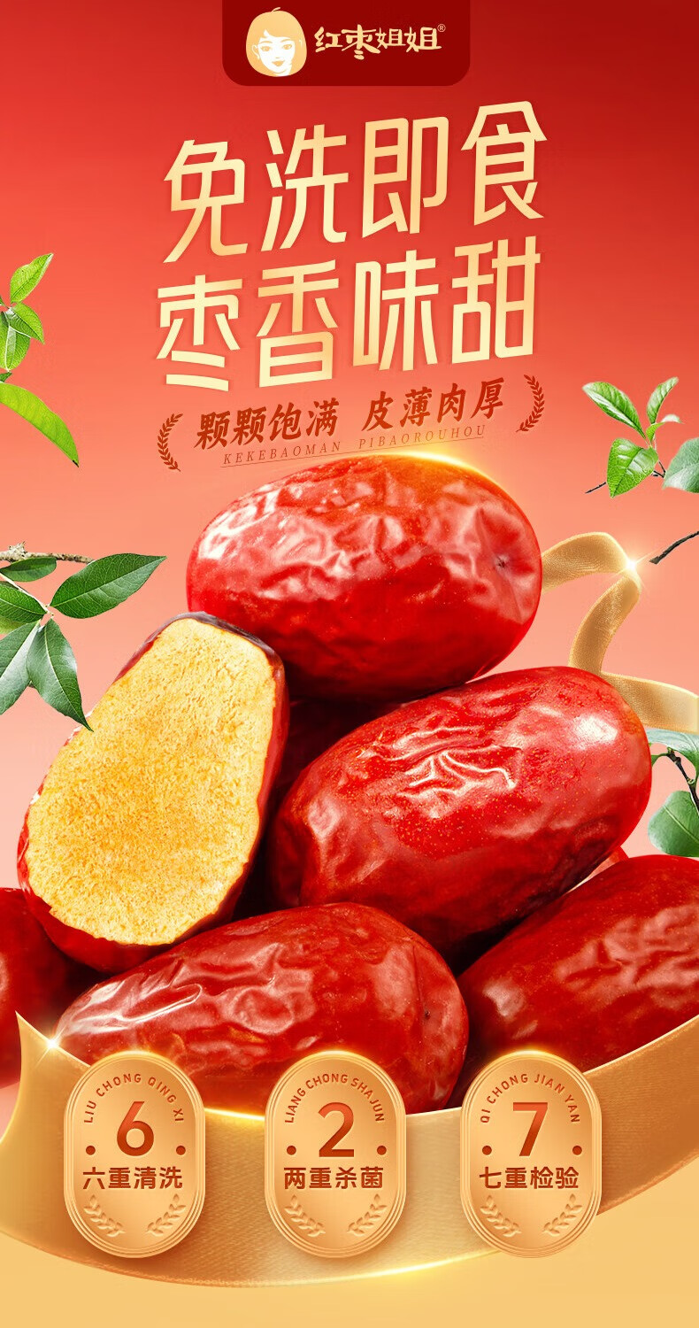 好想你_红枣姐姐 和田骏枣新疆特产大枣子免洗即食果干煮粥煲汤零食送礼 【约28袋】和田大红枣840g礼盒