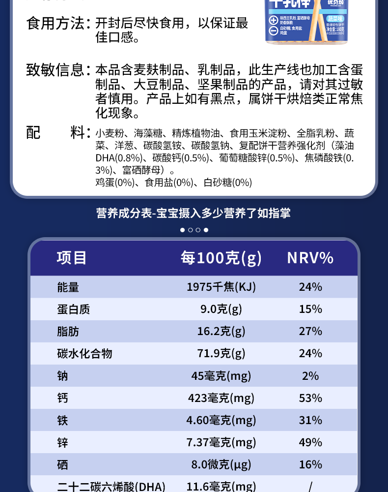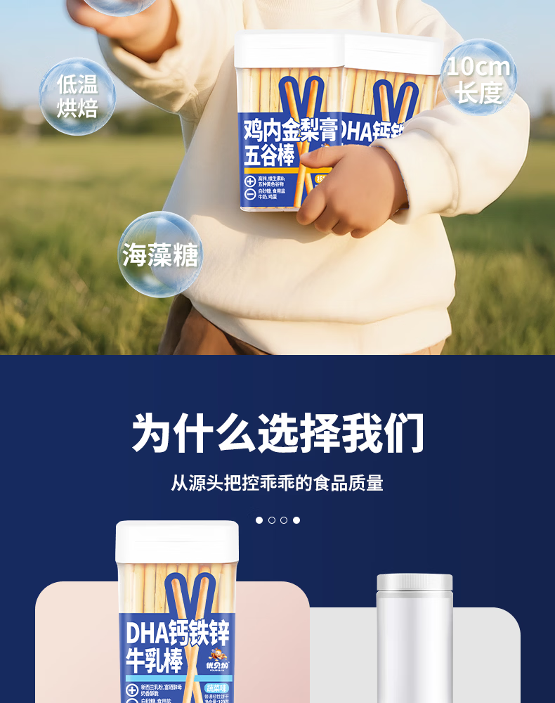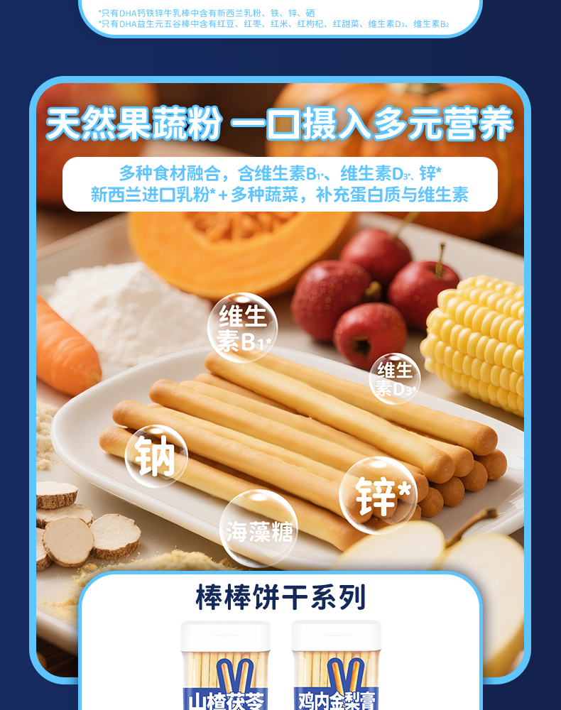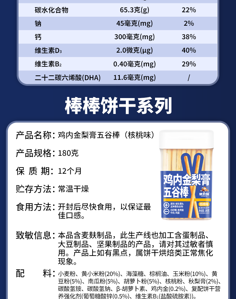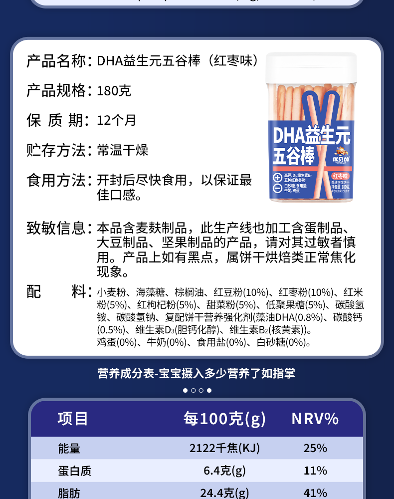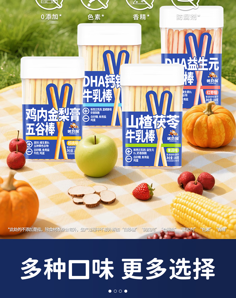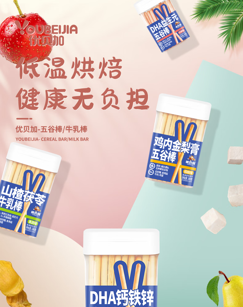 优贝加五谷棒含钙铁锌的牛乳棒手指饼干儿童饼干1-3岁无添加色素色素 优贝加牛乳棒(山楂茯苓果蔬味)180g*1罐