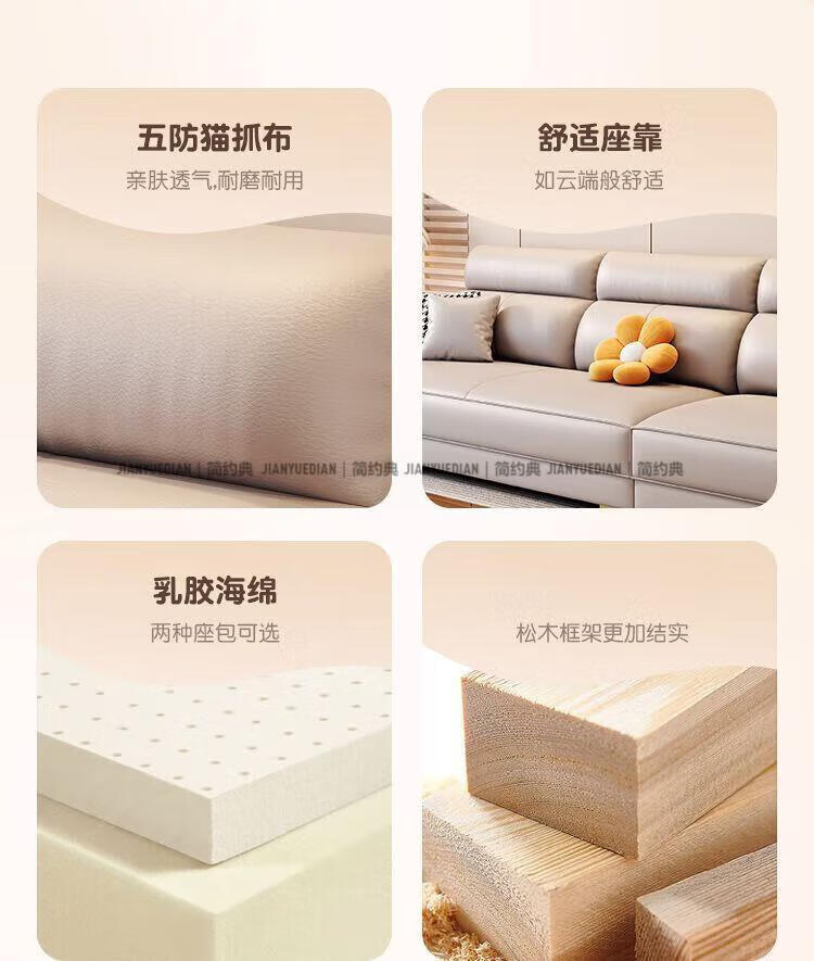 简约典2026新款沙发客厅大小户型棉麻沙发奶油风耐磨猫爪布直排沙发组合 一号色 四人位 2.7m -海绵款