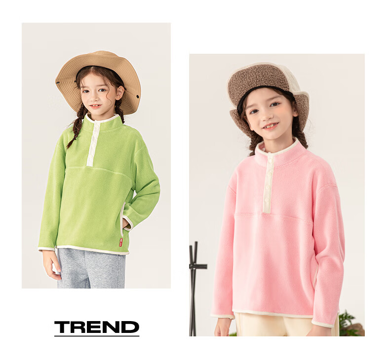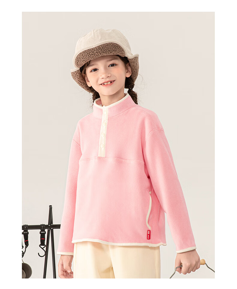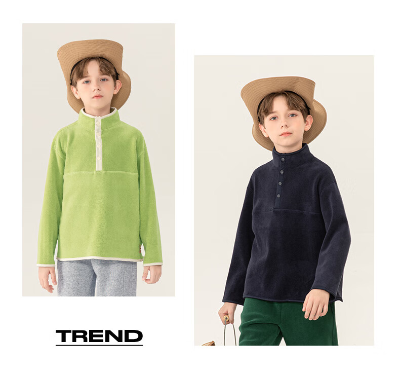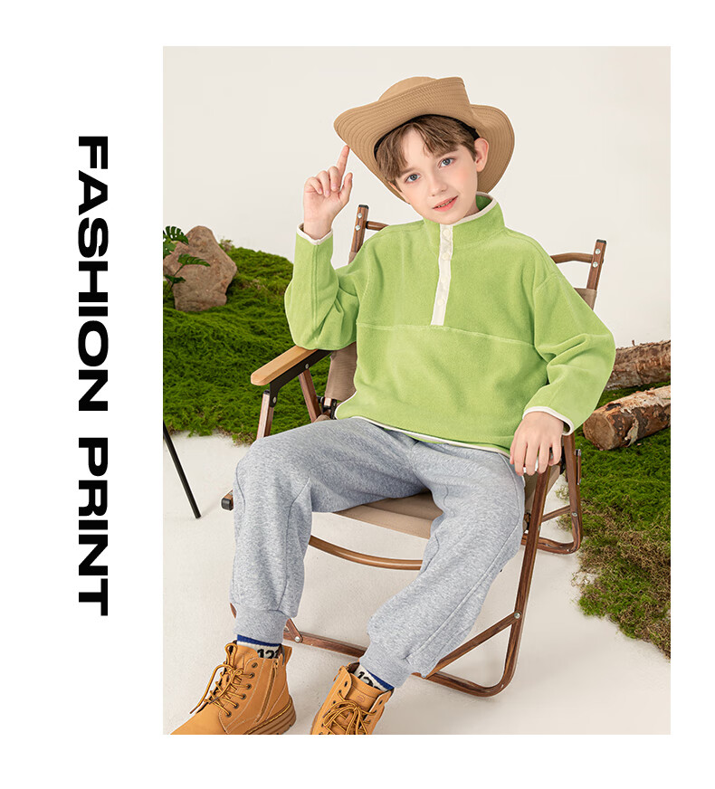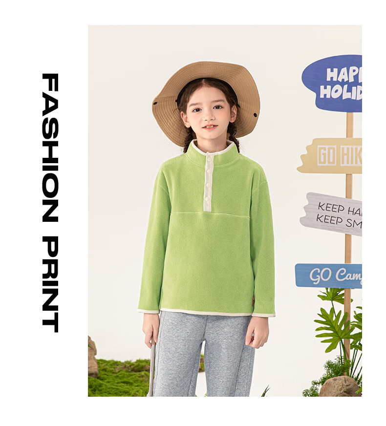 巴布豆儿童加绒卫衣秋冬女童摇粒绒半开领保暖上衣男童时尚设计感童装 果绿 110