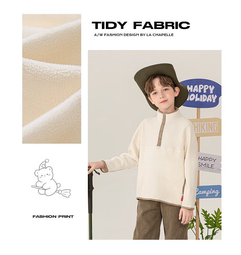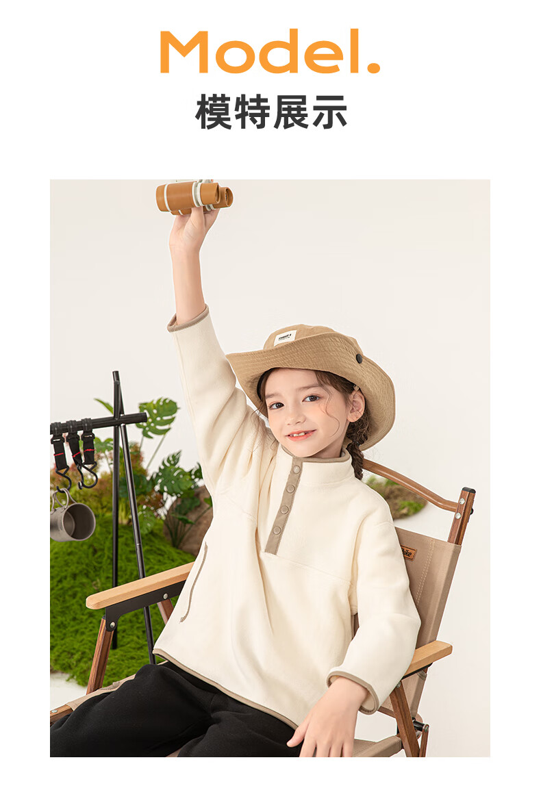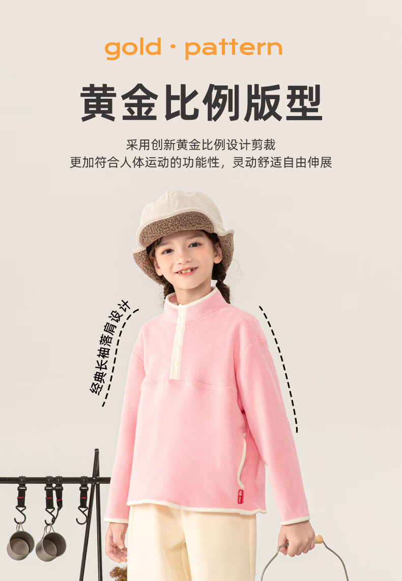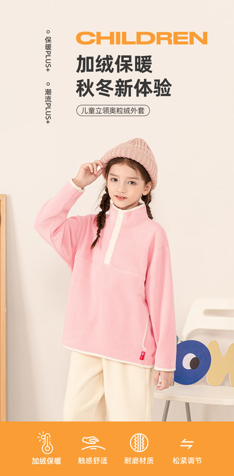 巴布豆儿童加绒卫衣秋冬女童摇粒绒半开领保暖上衣男童时尚设计感童装 果绿 110