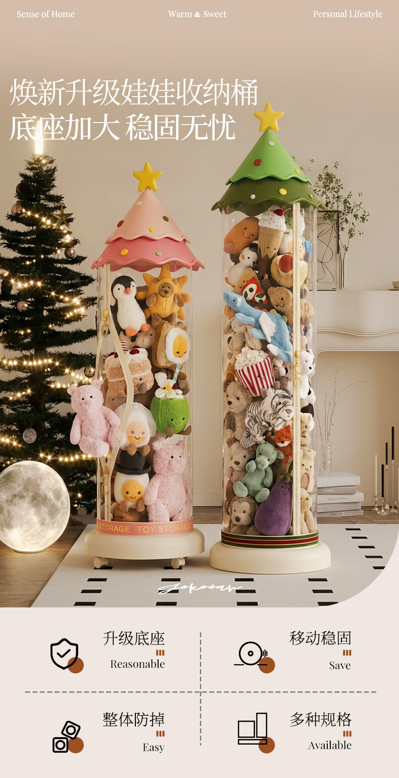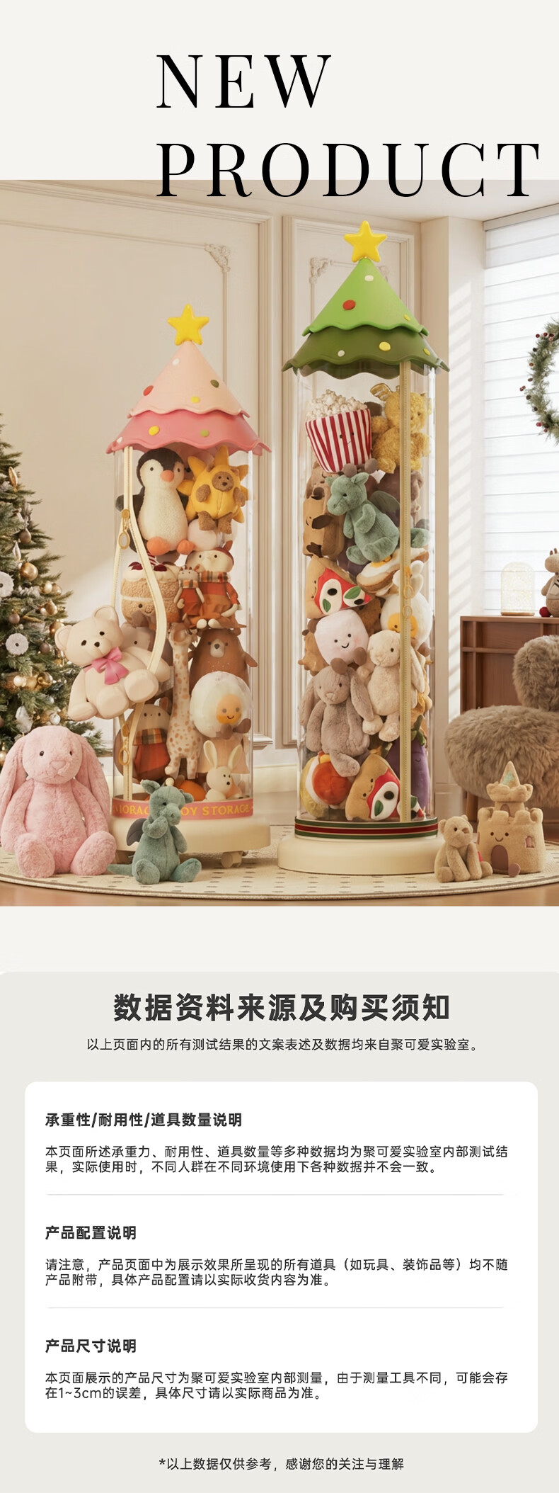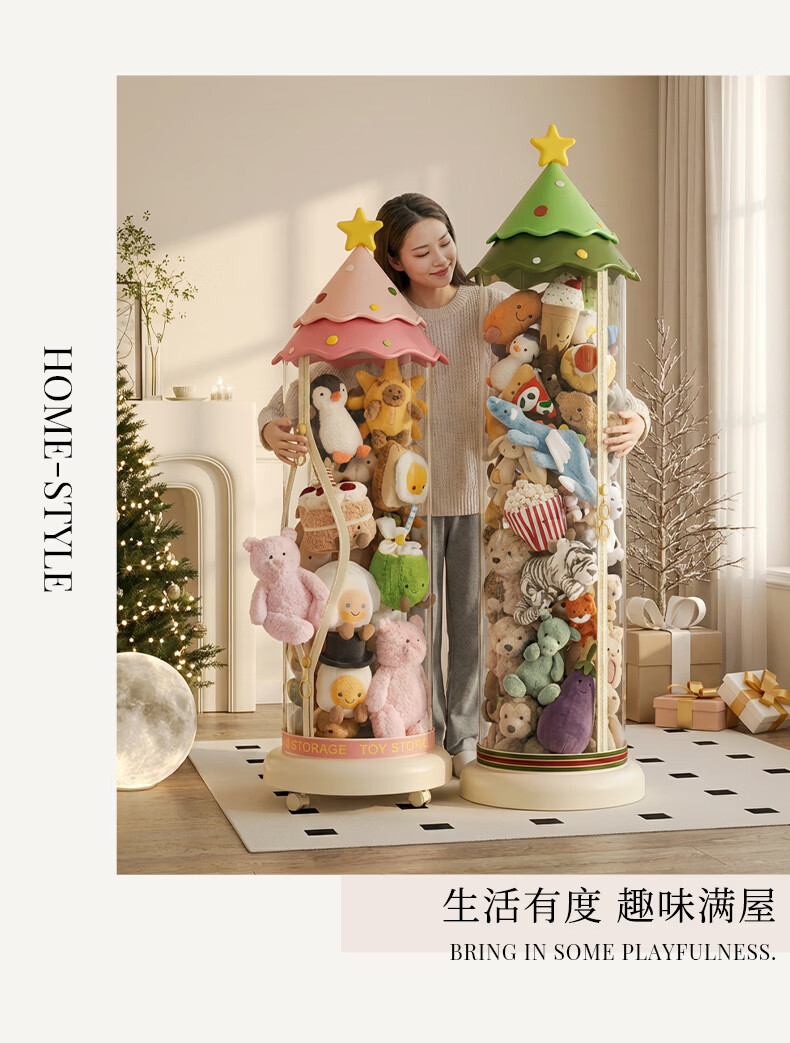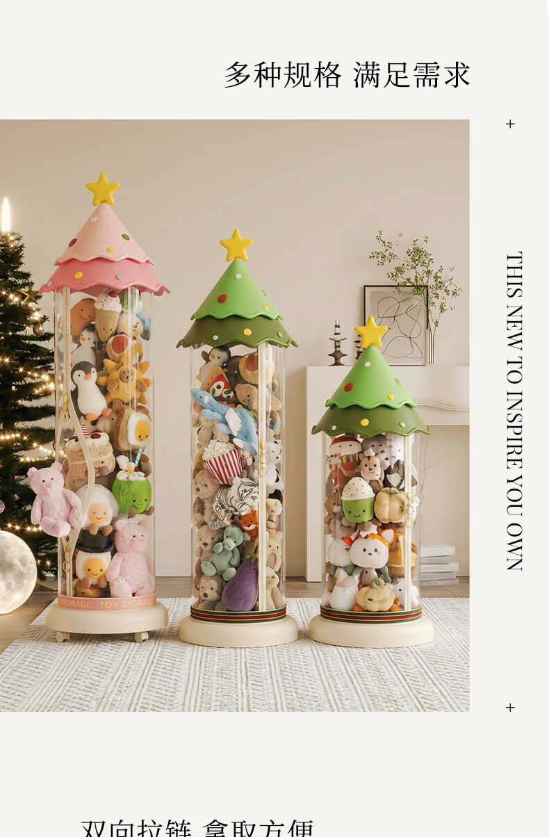 聚可爱娃娃收纳桶家用圣诞树造型装玩偶筒新升级大容量装毛绒玩具防尘筒 升级移动款霜松绿-181cm拉链款【加宽加大底座 】