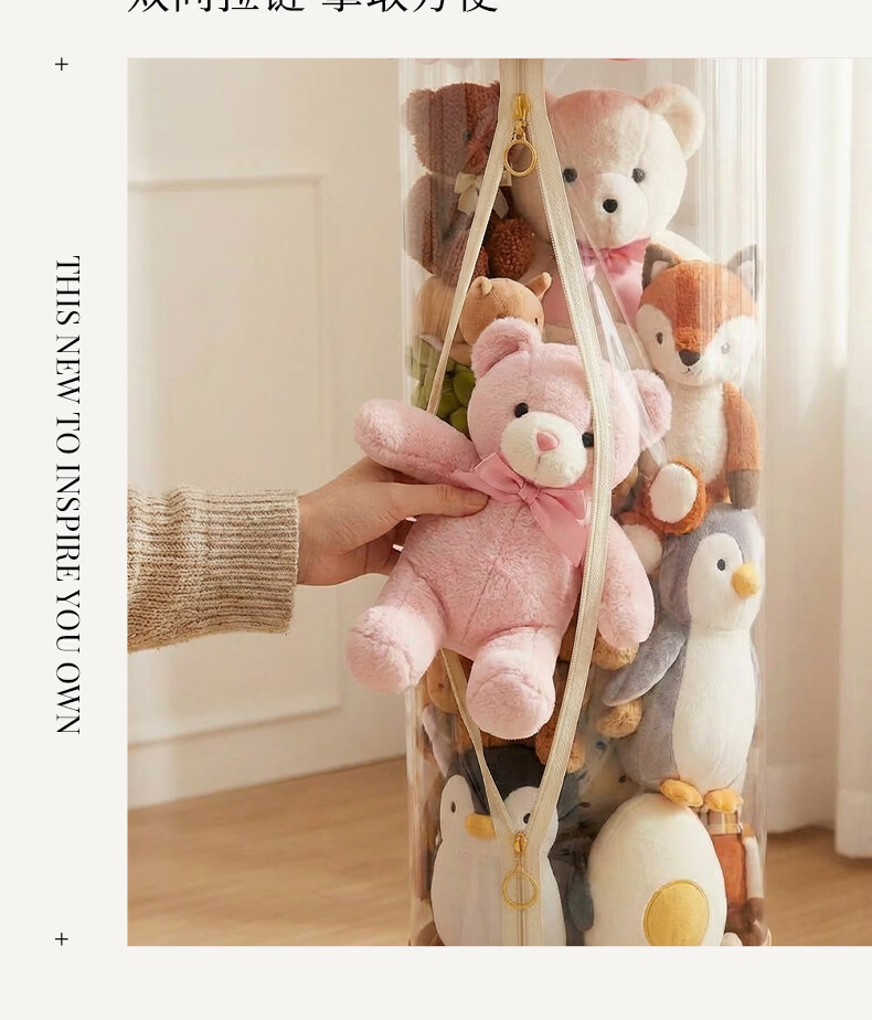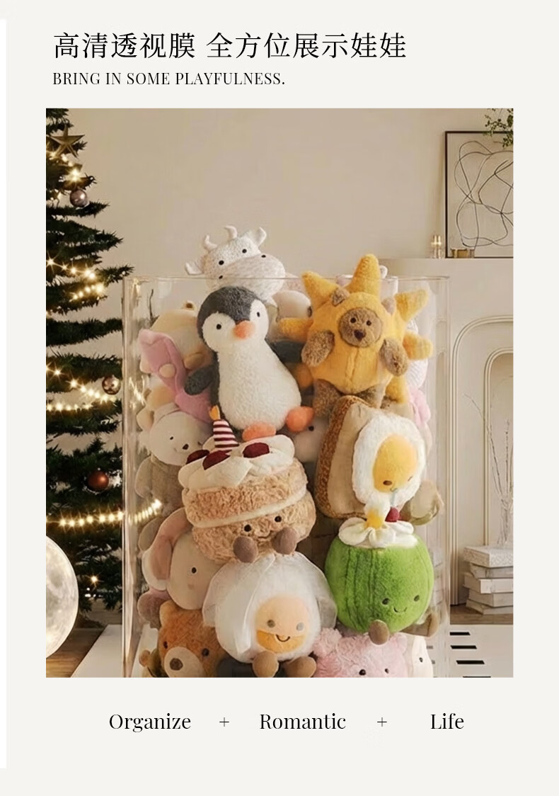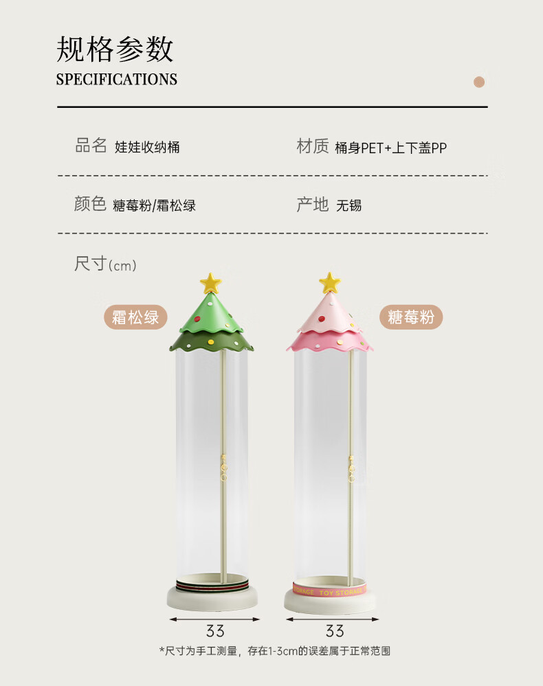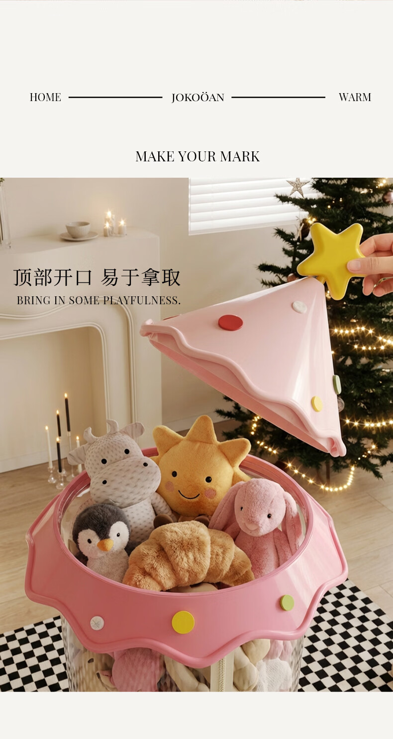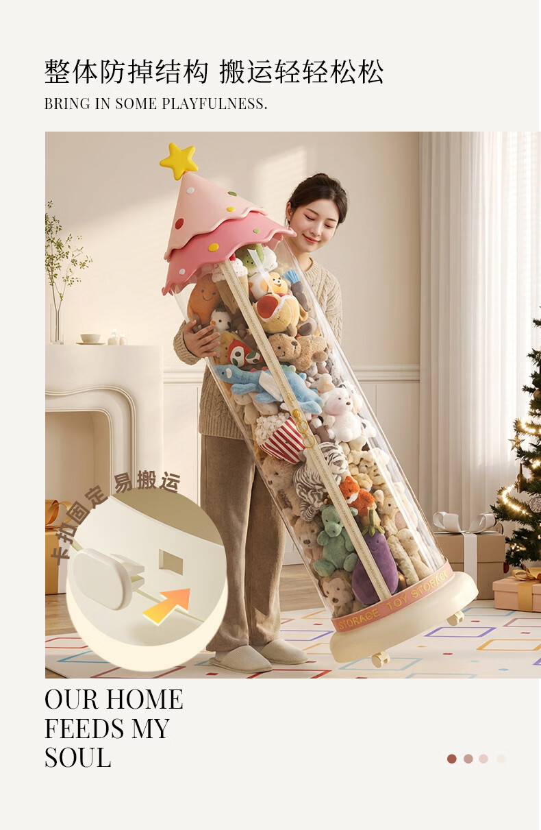 聚可爱娃娃收纳桶家用圣诞树造型装玩偶筒新升级大容量装毛绒玩具防尘筒 升级移动款霜松绿-181cm拉链款【加宽加大底座 】