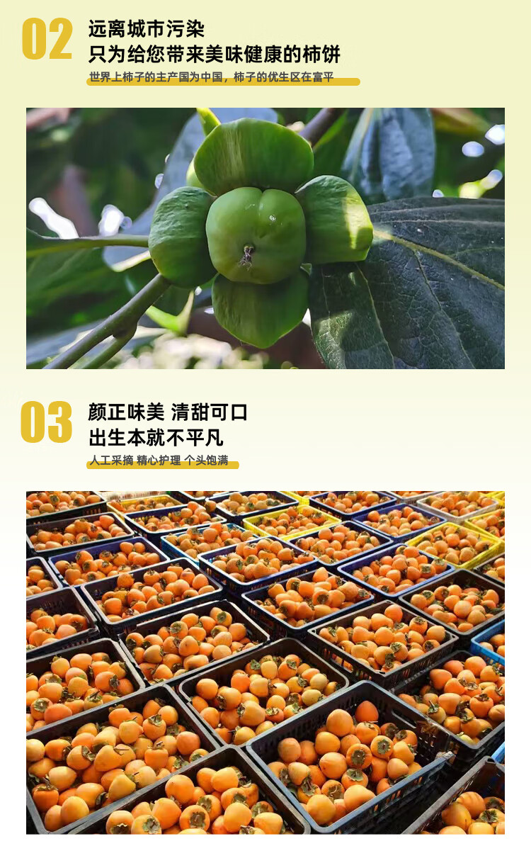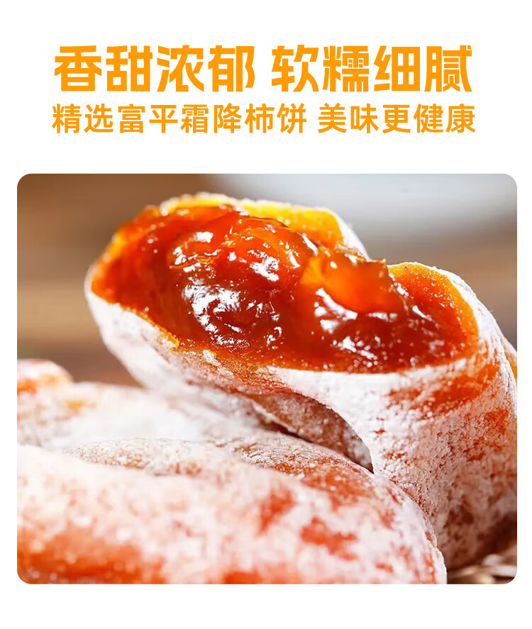 秦品堂陕西富平柿饼 吊柿饼流心柿饼独立包装特级头茬农家自制霜降柿饼 特大果礼盒2斤【JD配送】