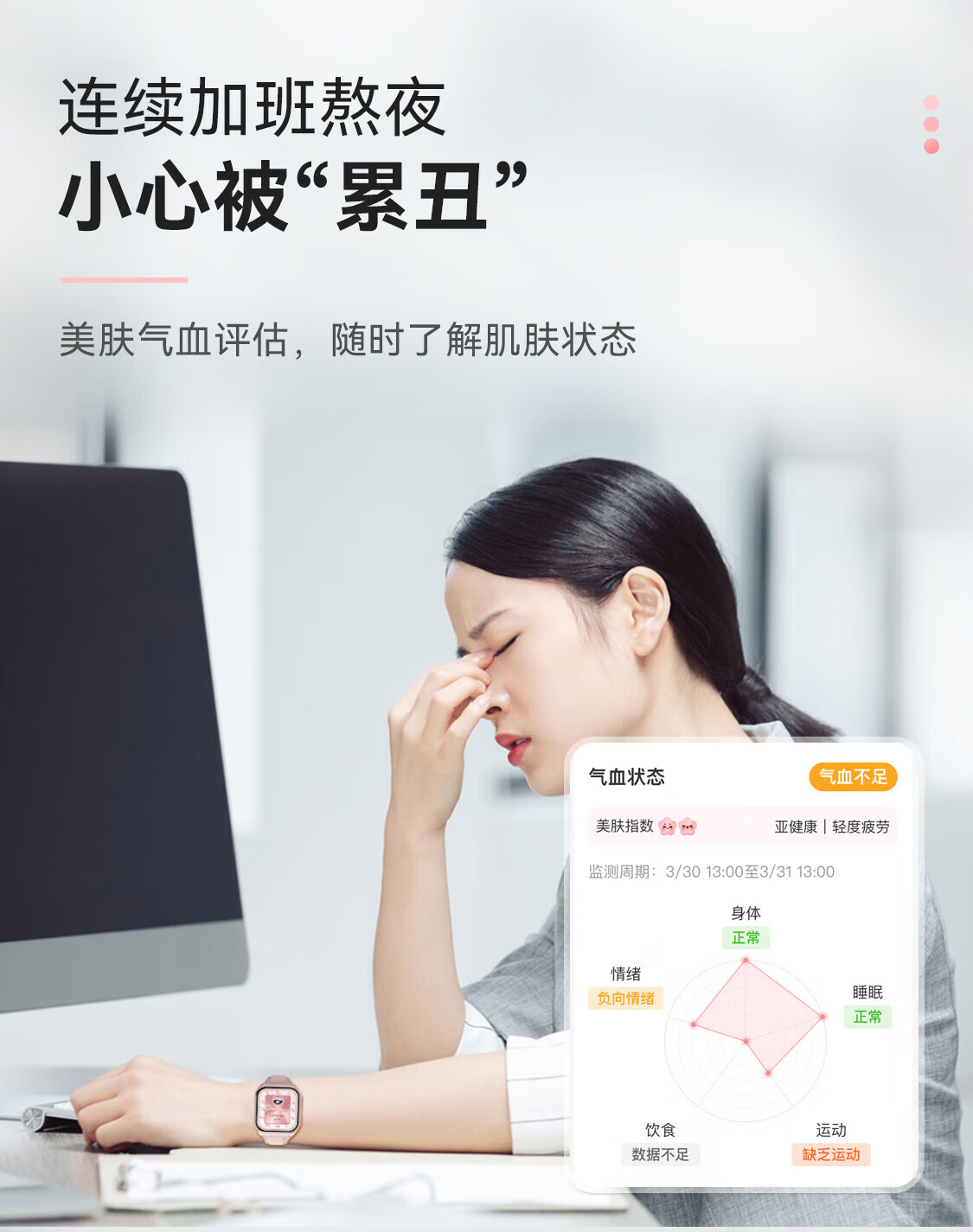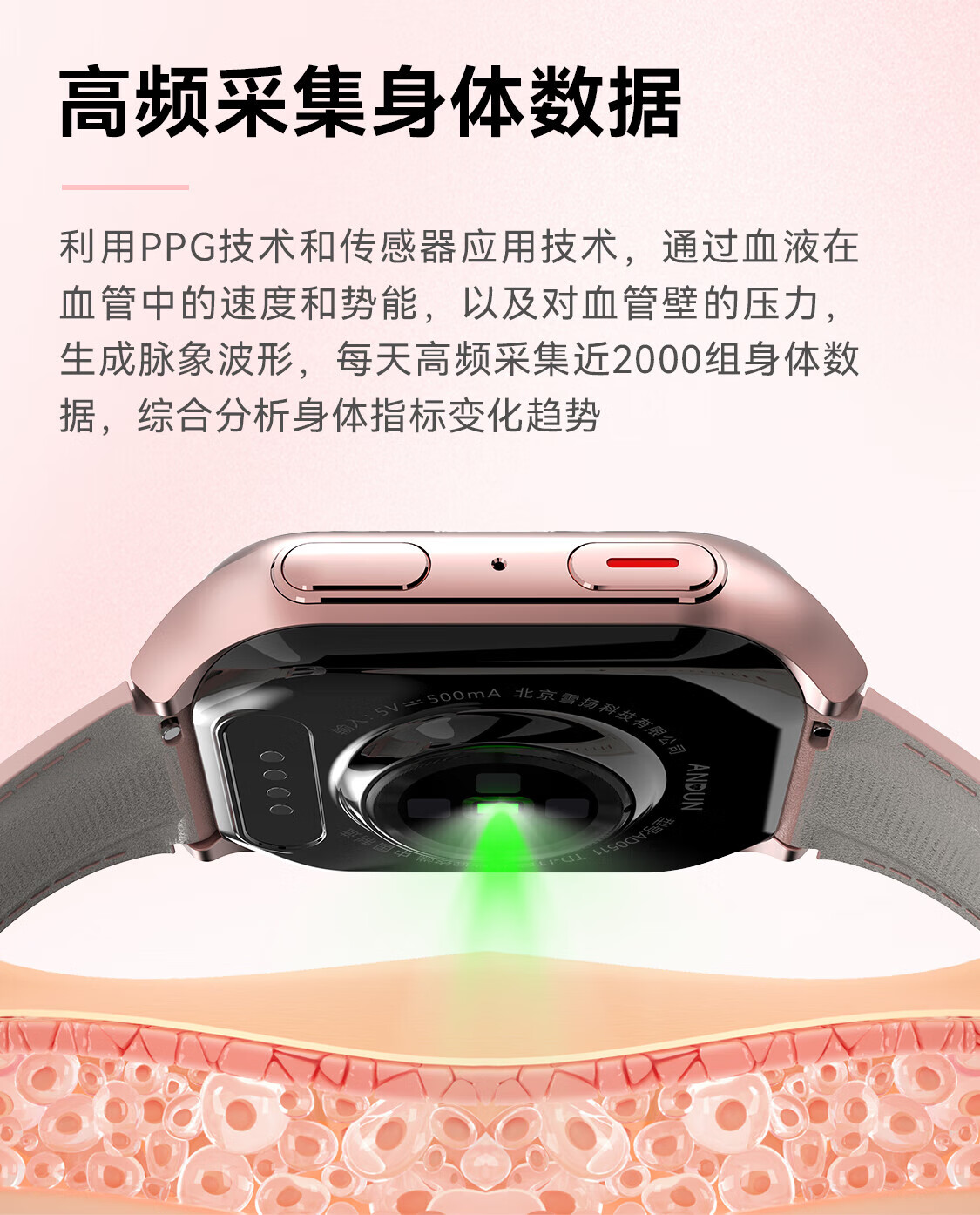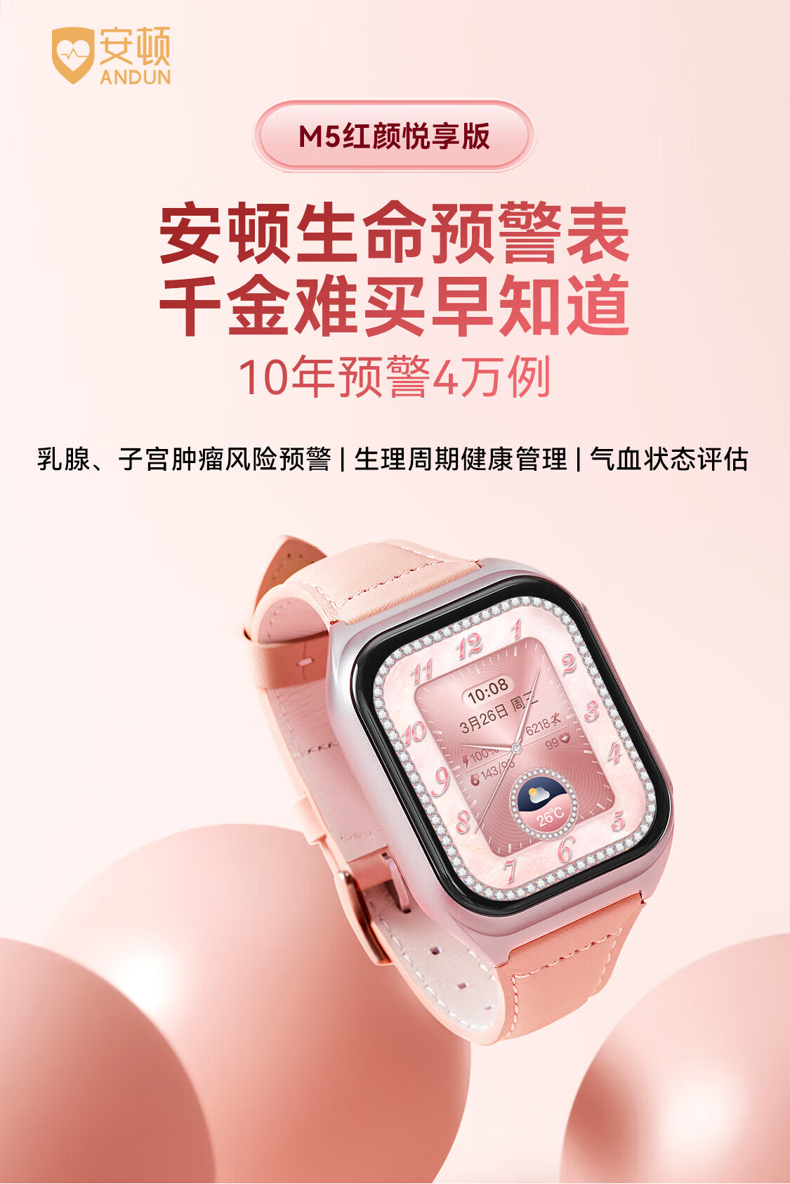安顿智能手表手环watch测血压测心率血氧血糖监测手表家用免扎针父母健康节日送礼M5红颜悦享版 胭脂粉