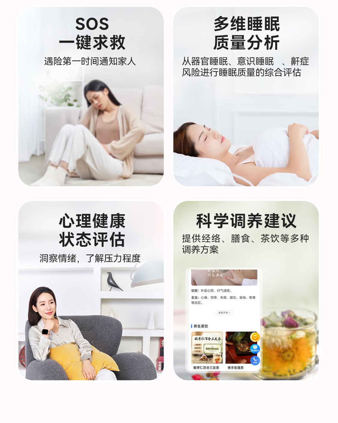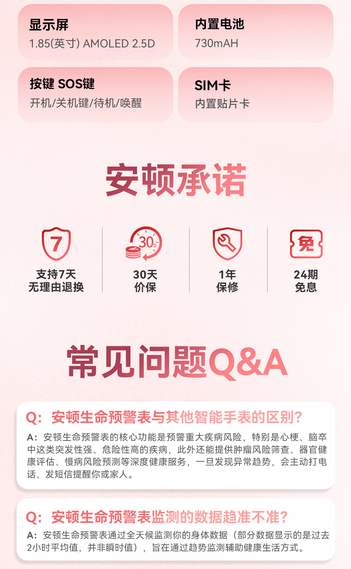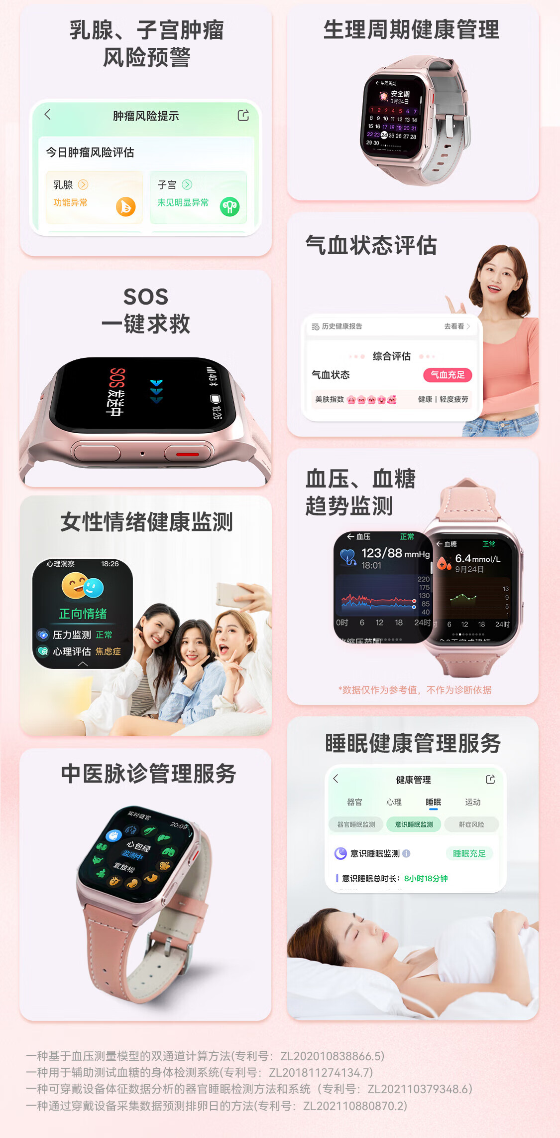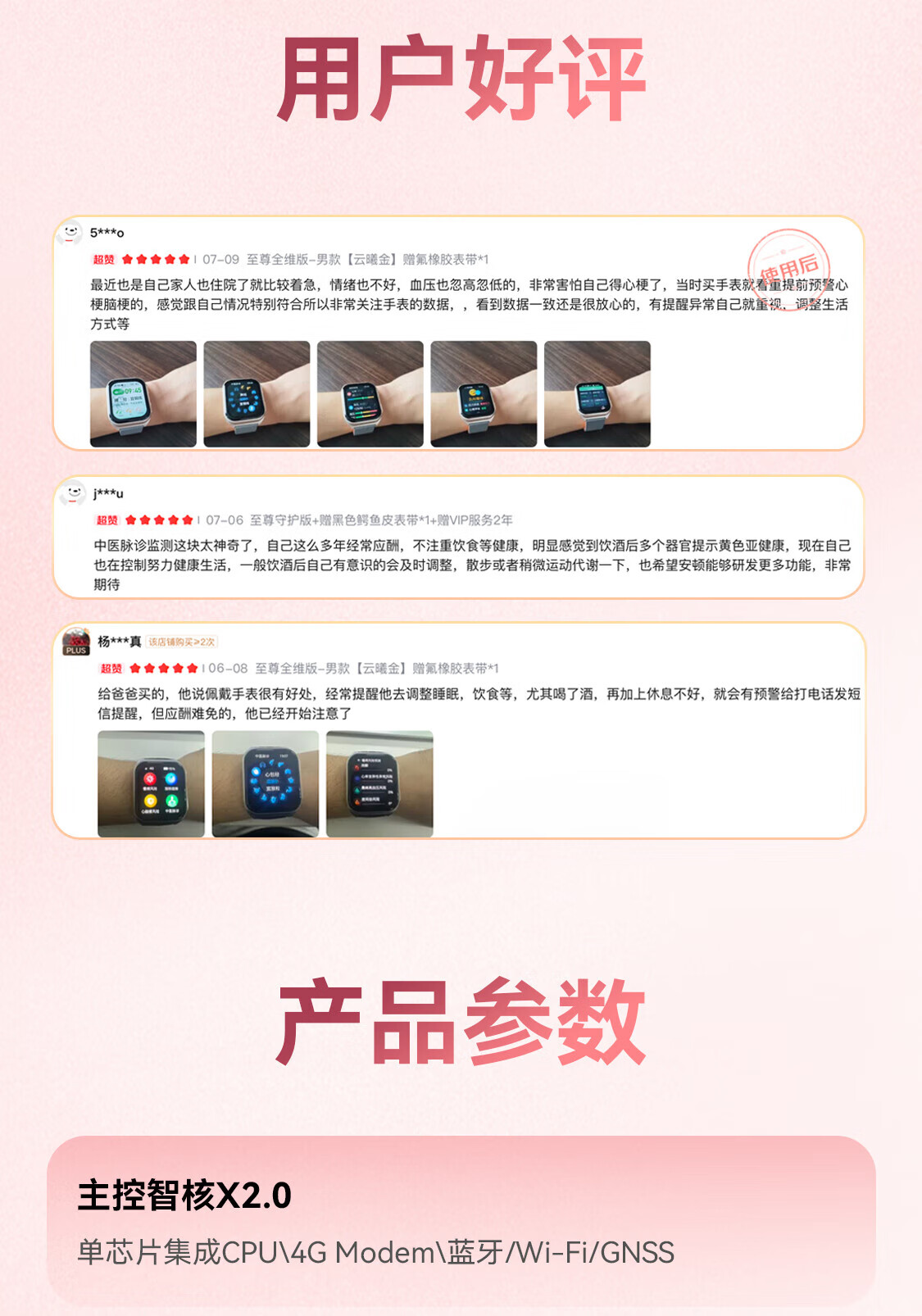 安顿智能手表手环watch测血压测心率血氧血糖监测手表家用免扎针父母健康节日送礼M5红颜悦享版 胭脂粉