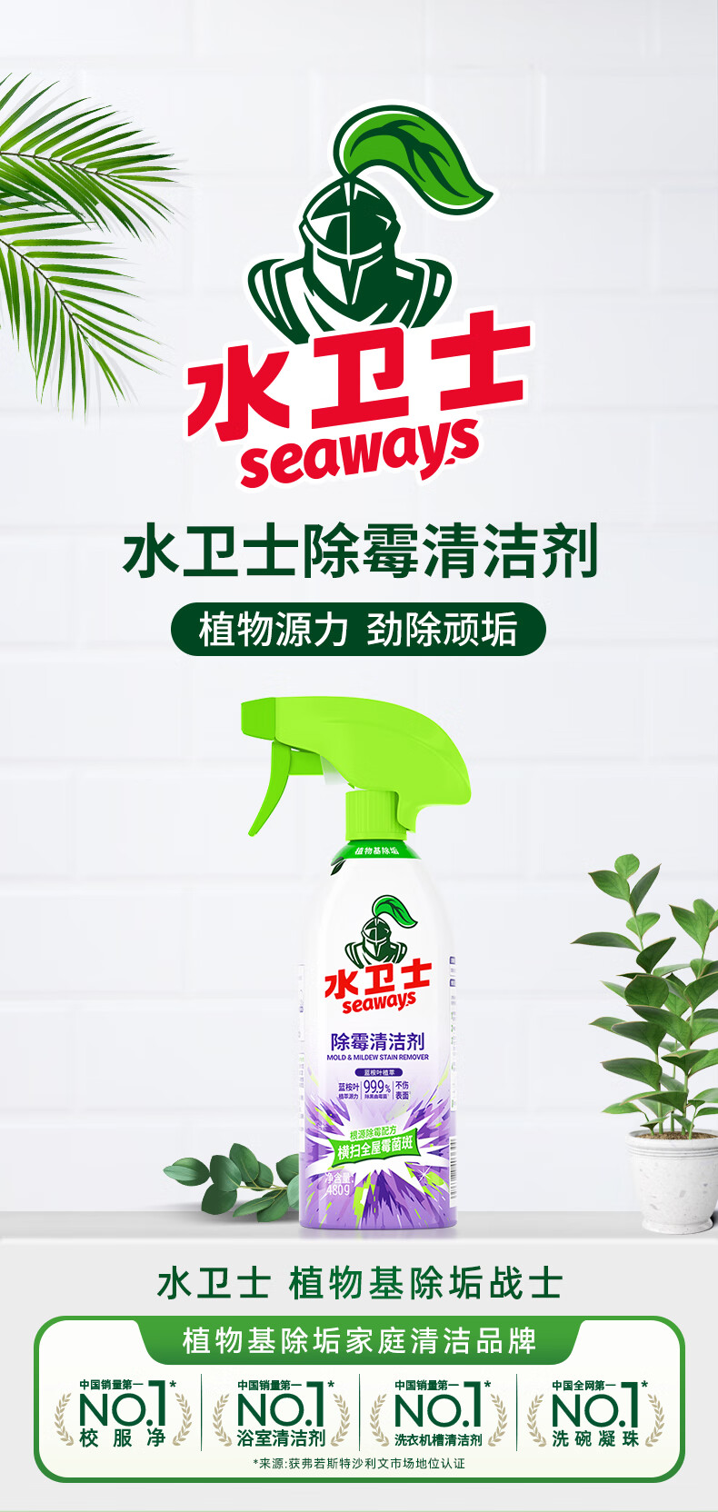 水卫士高效除霉剂480g 浴室墙面除霉喷雾啫喱瓷砖泡沫清洁清洗剂水卫仕 【实惠装】除霉清洁剂480g*3瓶