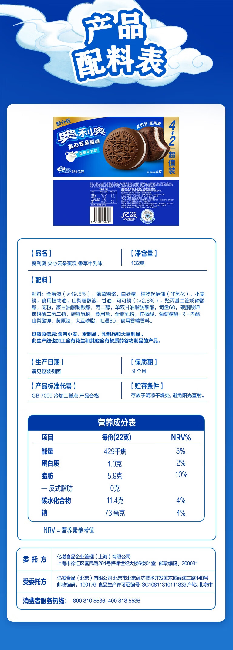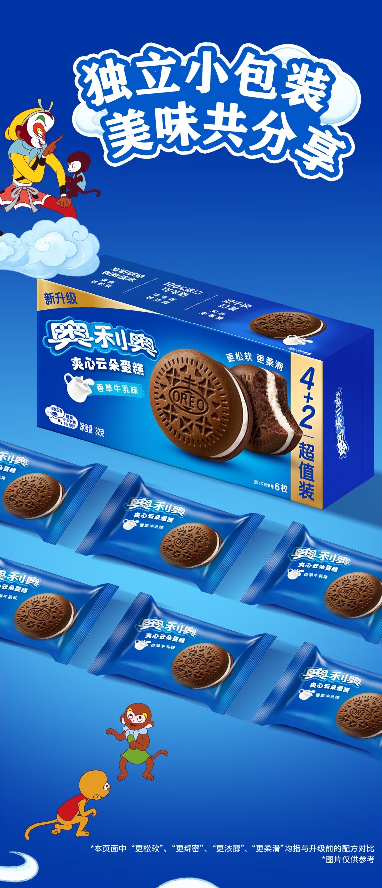 奥利奥(Oreo)夹心云朵蛋糕香草牛乳味6枚132g 糕点休闲零食 早餐下午茶