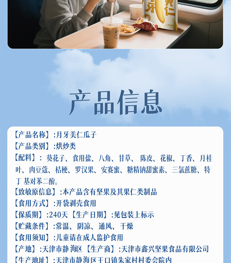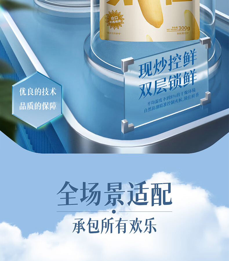 张笨仁月牙美仁多味瓜子300g五香大颗粒新疆牙签瓜子坚果葵花籽零食年货