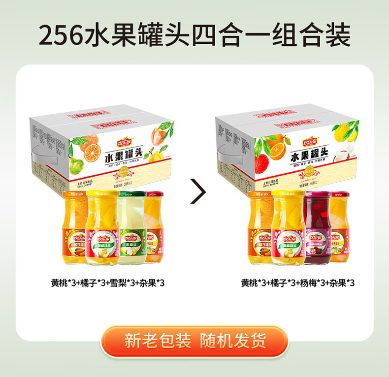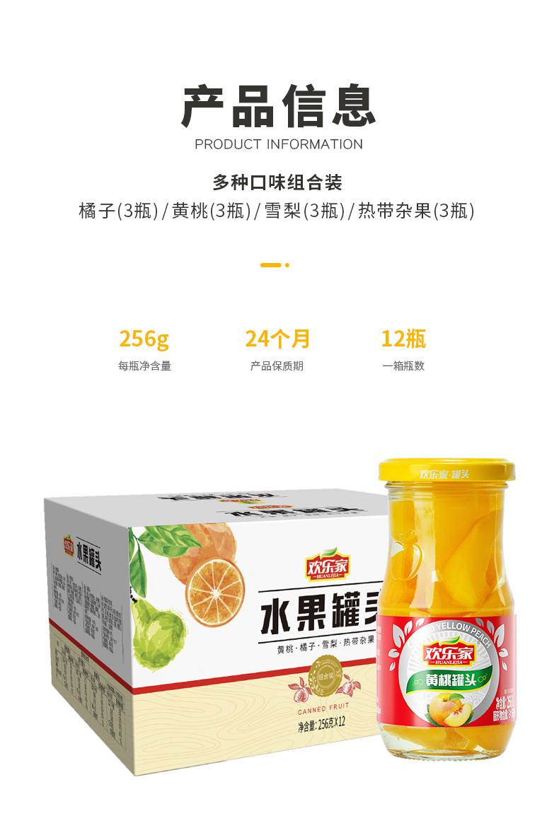 欢乐家混合水果罐头256*12瓶 多口味组合罐头 年货礼盒 送礼 休闲零食