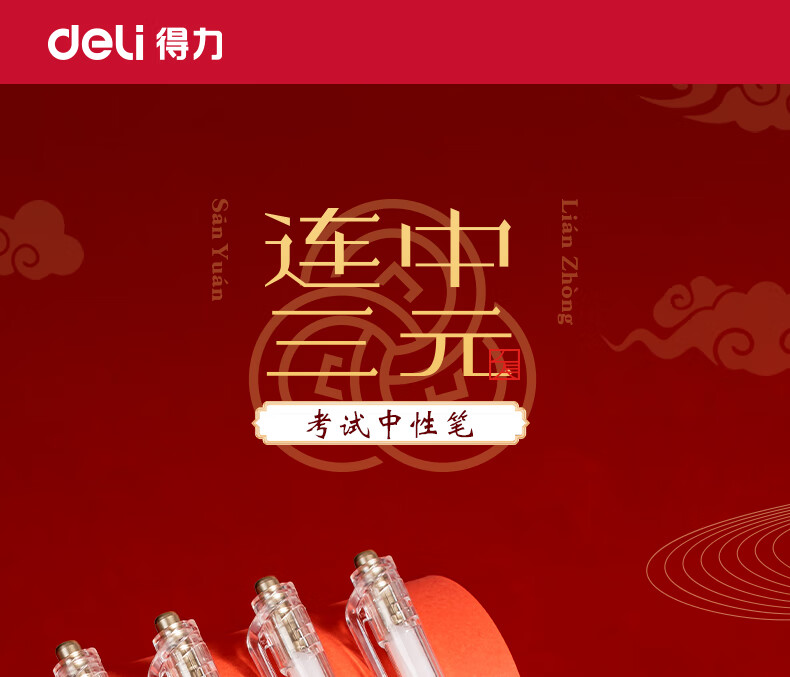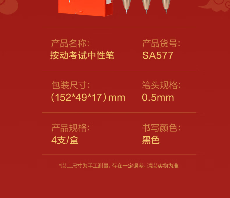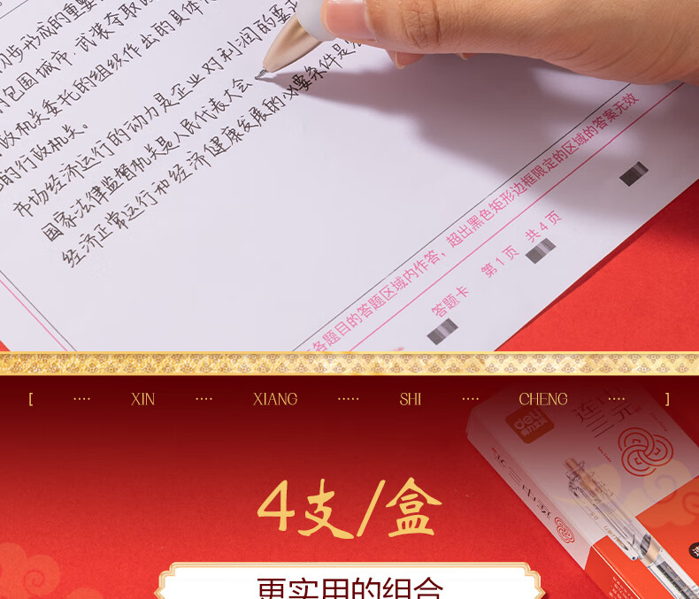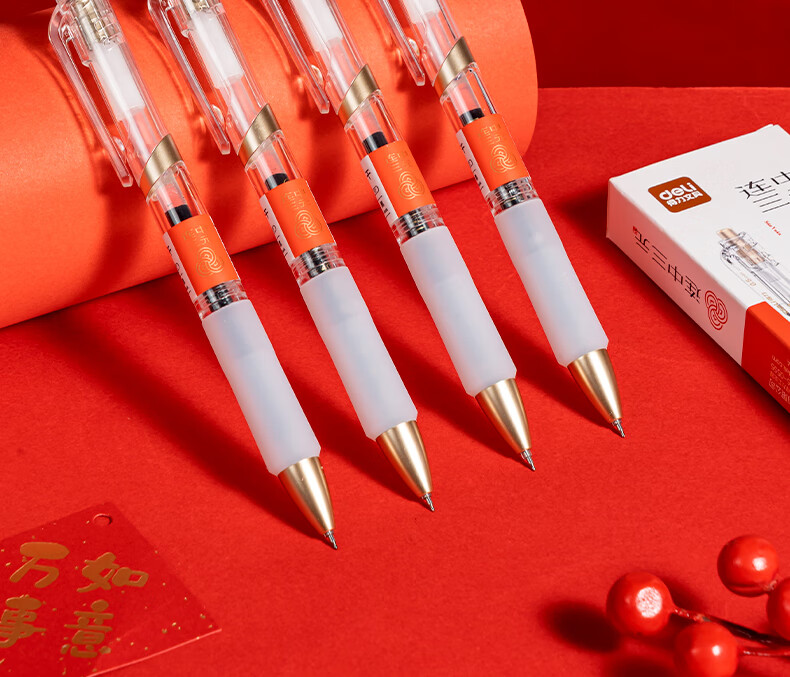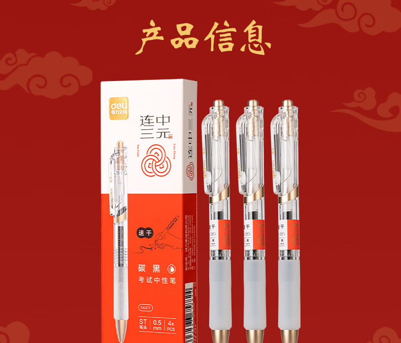 得力(deli)速干按动考试中性笔 0.5mmST笔头学生刷题笔考试笔 备考考试专用 黑色4支/盒SA577