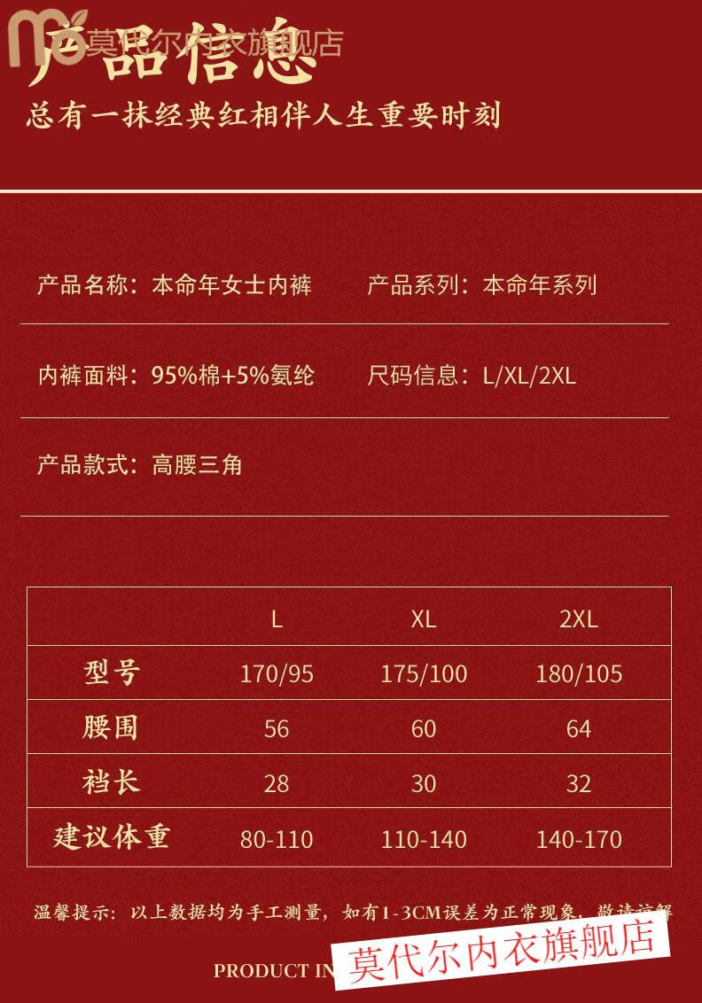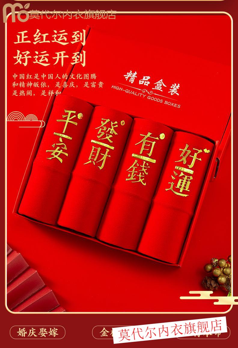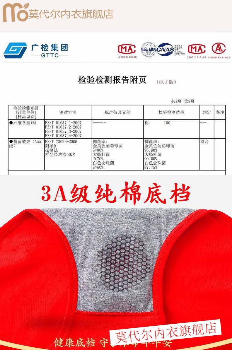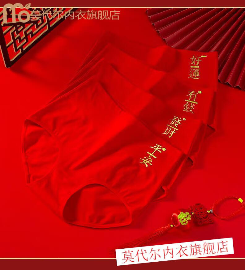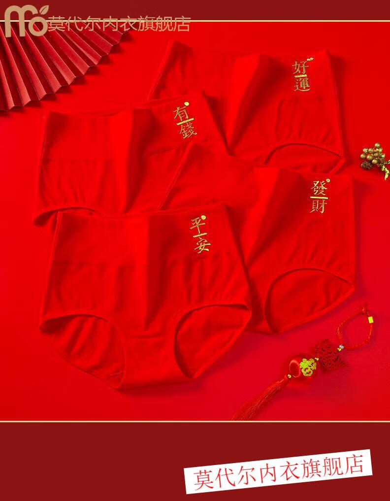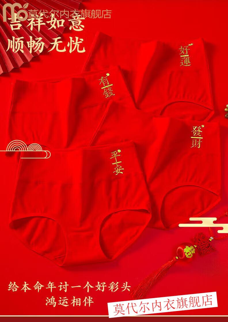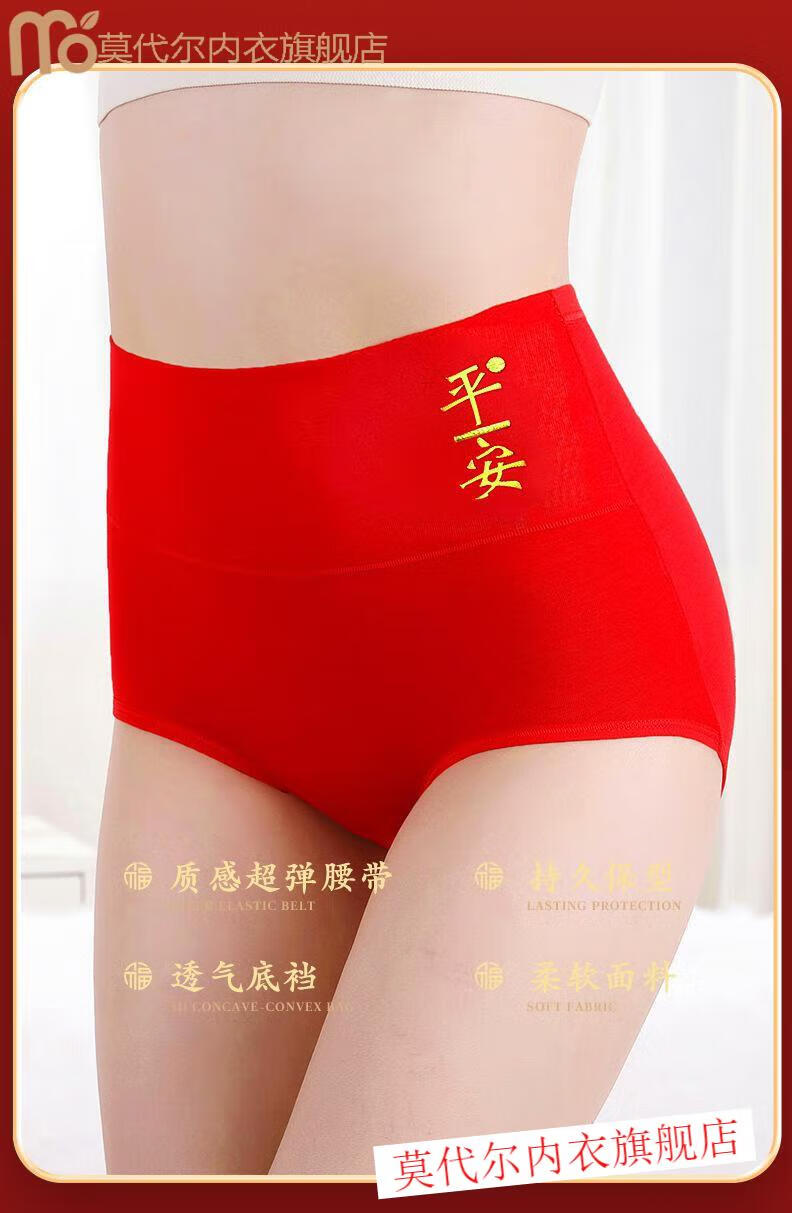 莫代尔女士内裤棉质高腰本命年大红色马年红内裤女款大码亲肤喜庆短裤 (平安+好运)2内裤+2袜子(礼 2条 XL (110-140)斤