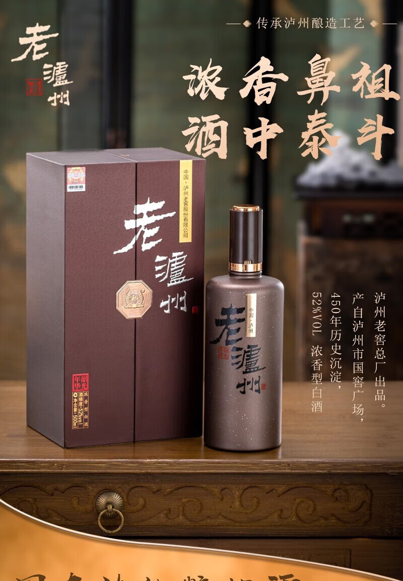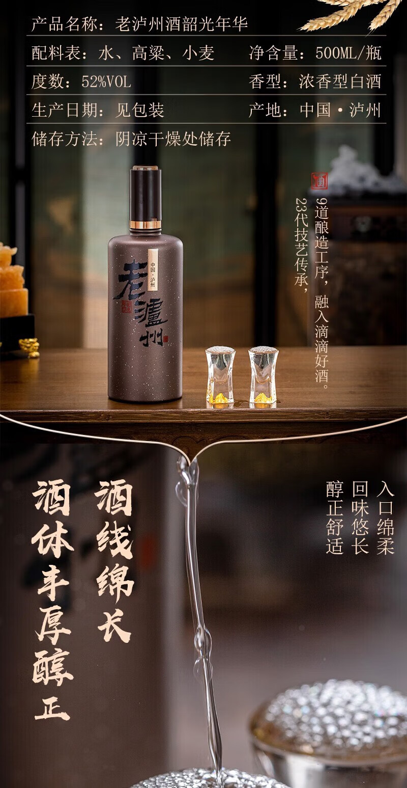 泸州老窖老泸州韶光年华52度浓香型白酒礼盒京东自营500ml*2瓶商务礼品